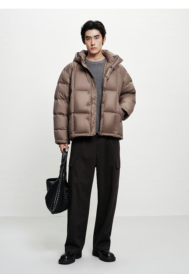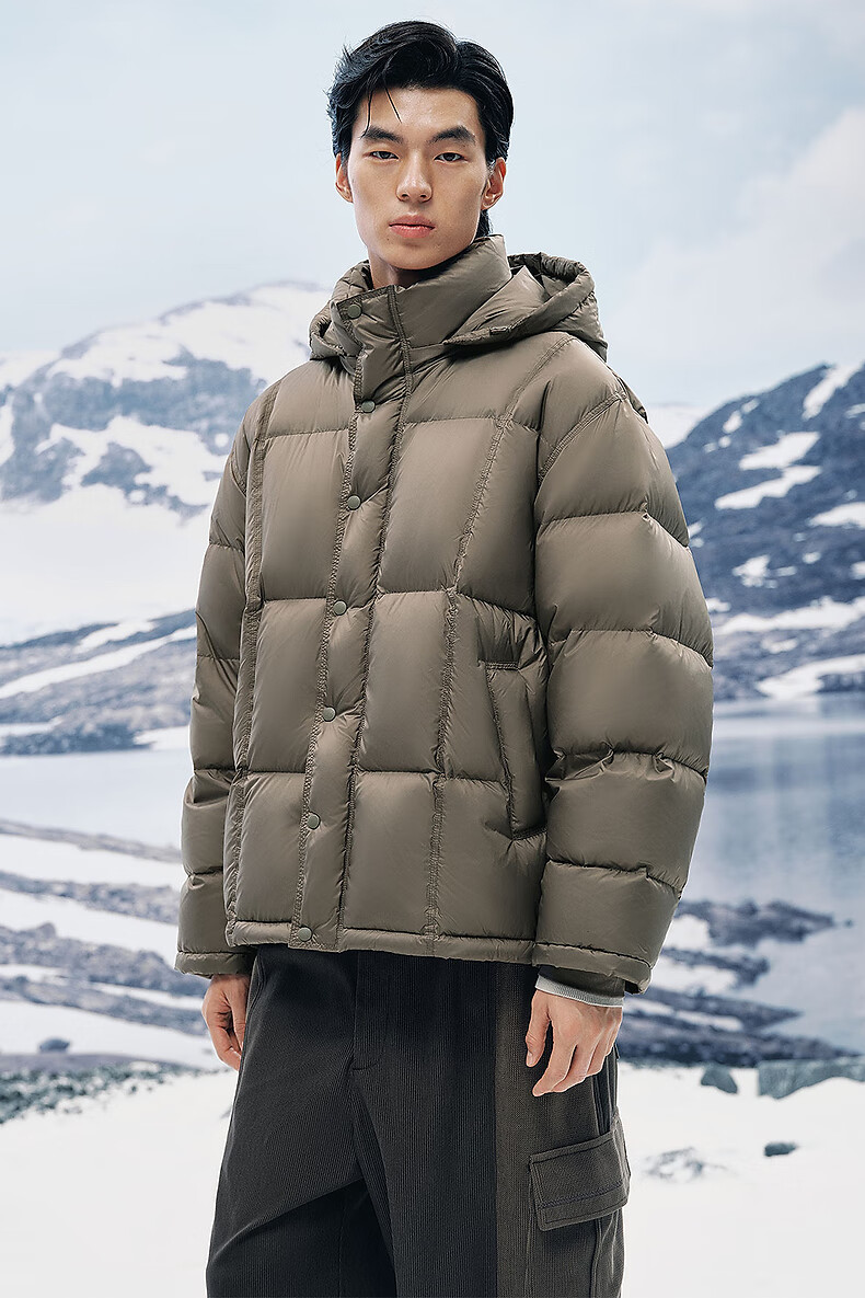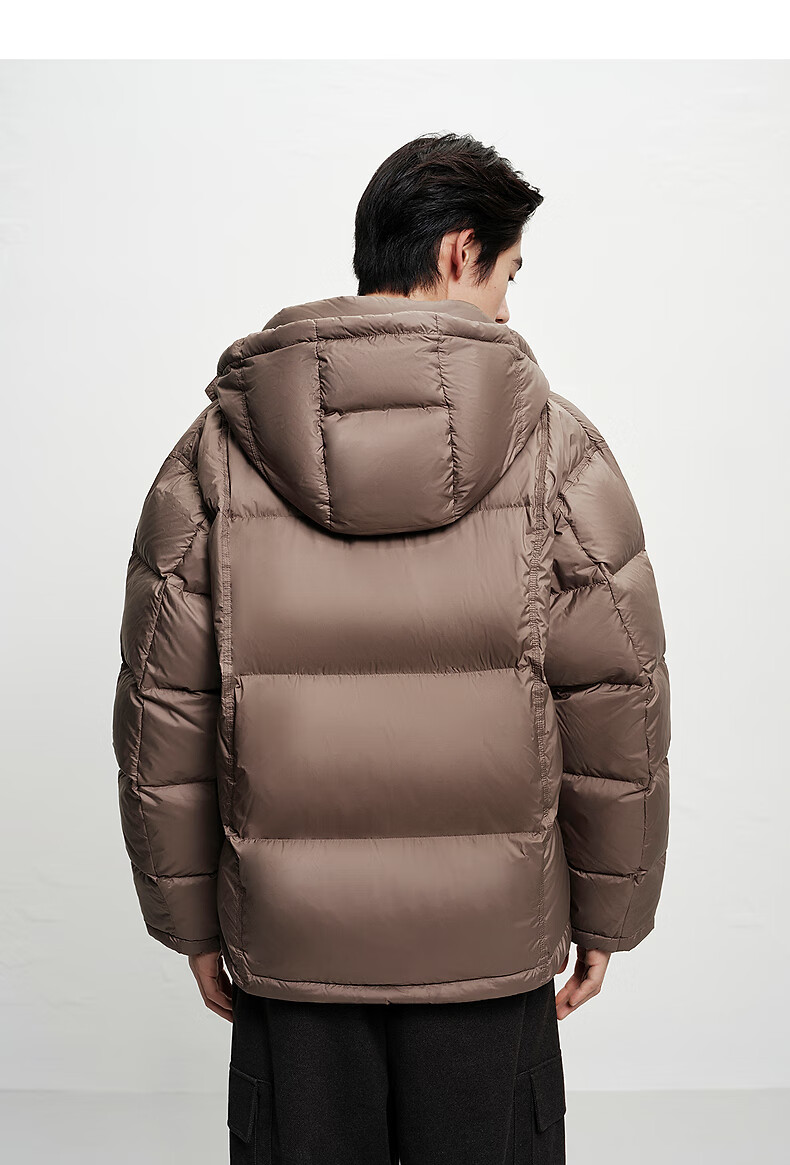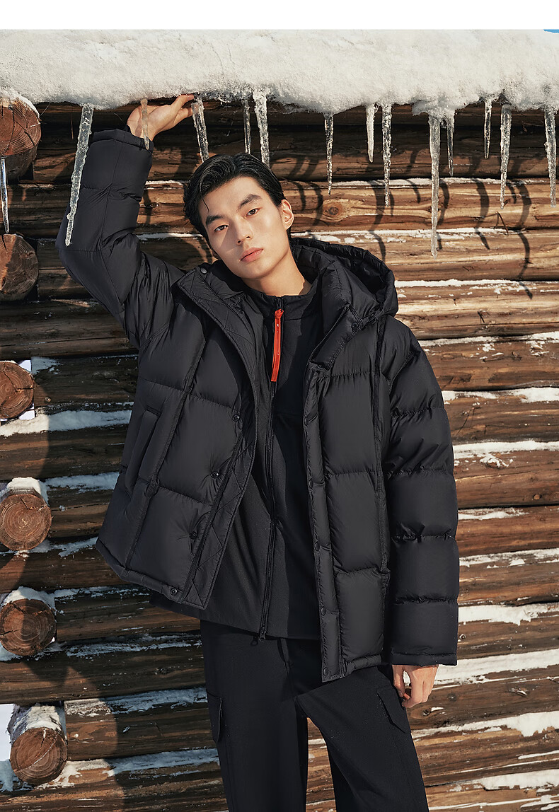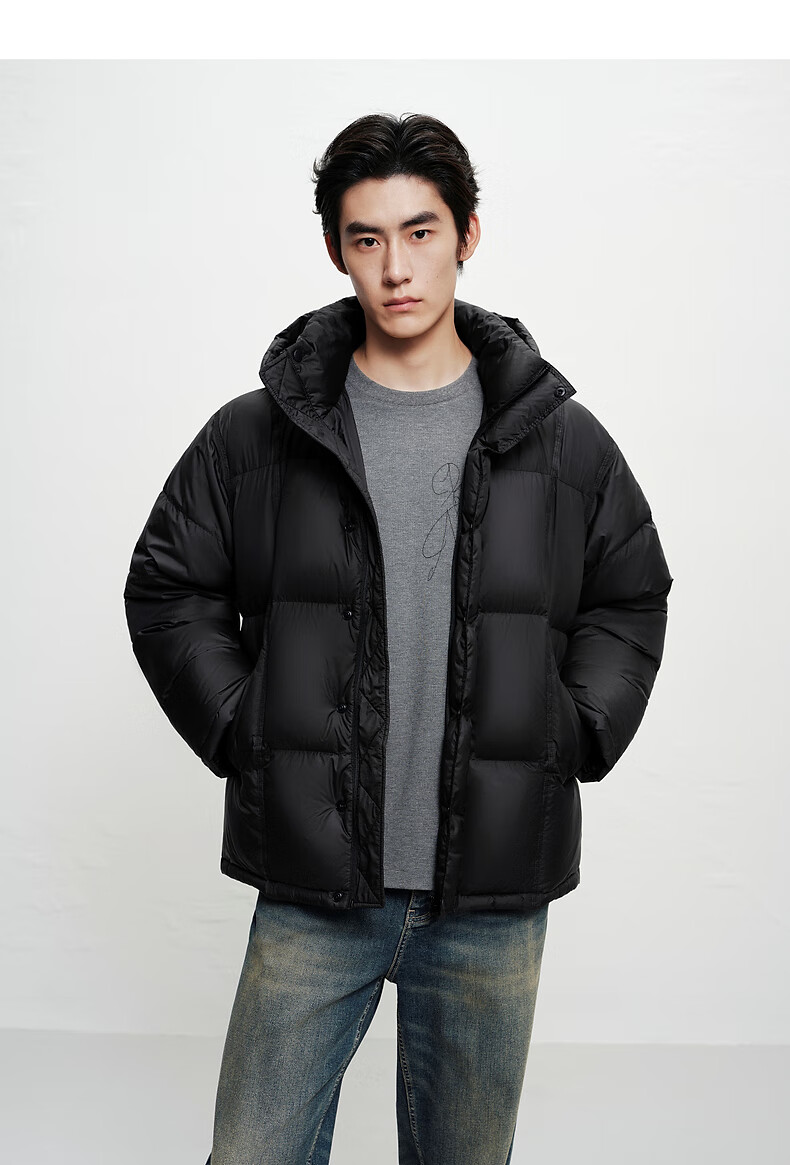 PEACEBIRD Herren 95 % importierte Entendaunen-Daunenjacke mit Kapuze, Winter-Brotjacke, kältebeständige kurze Rippenjacke, 15D Shadow Black (breiter Typ), dritte Charge, L