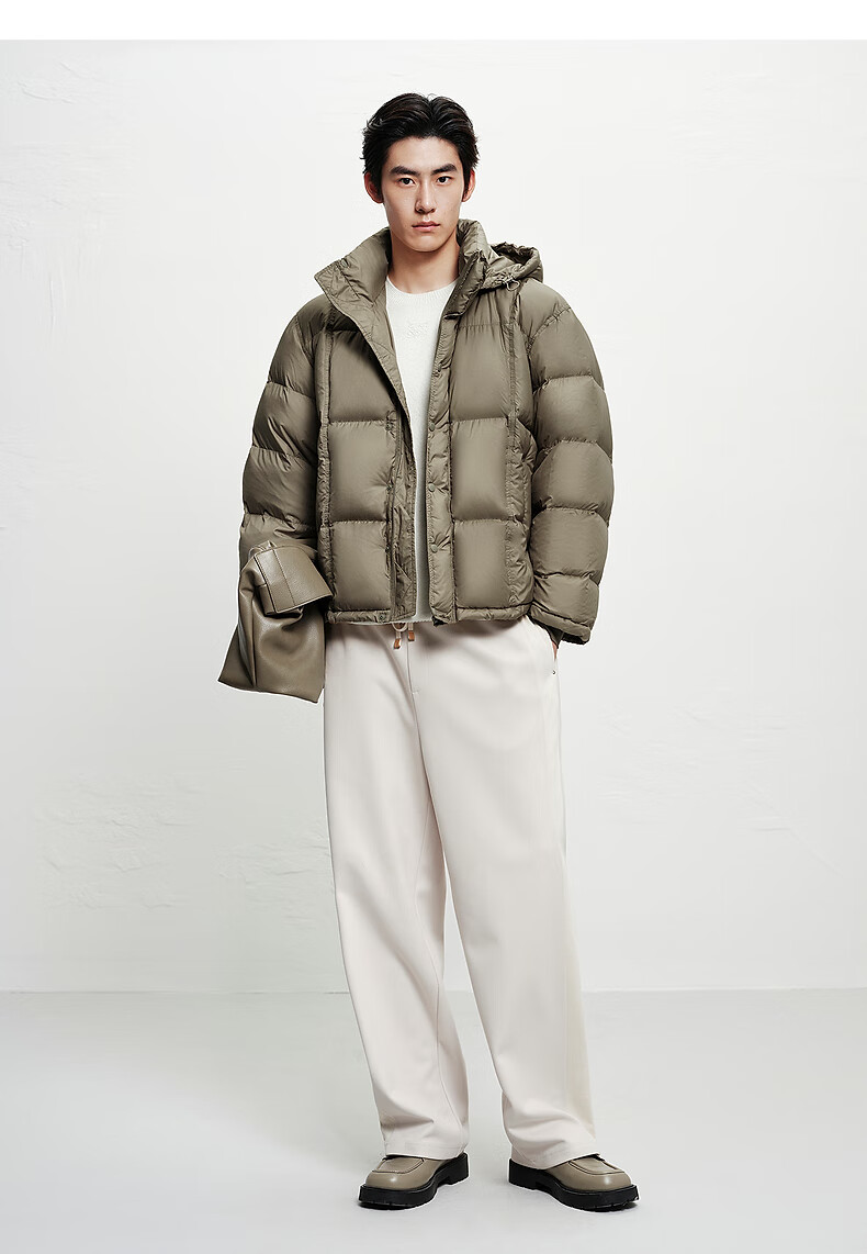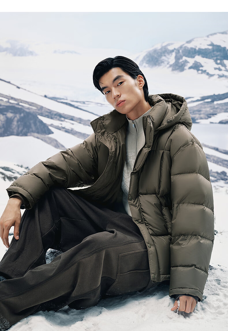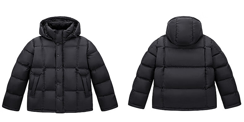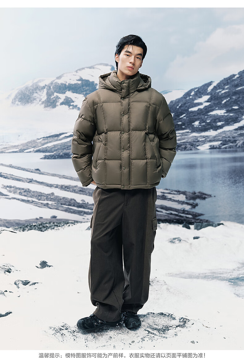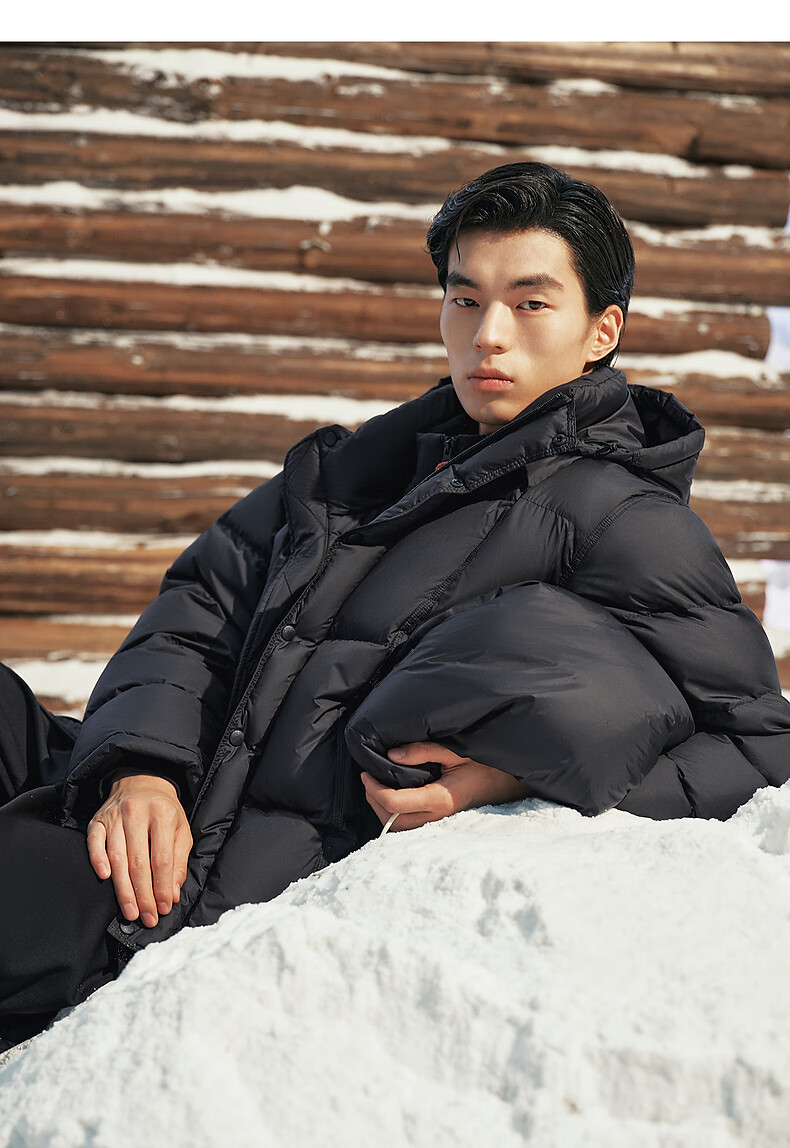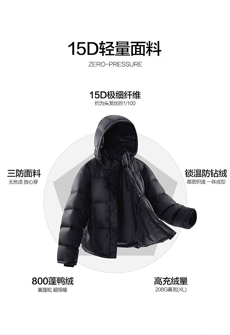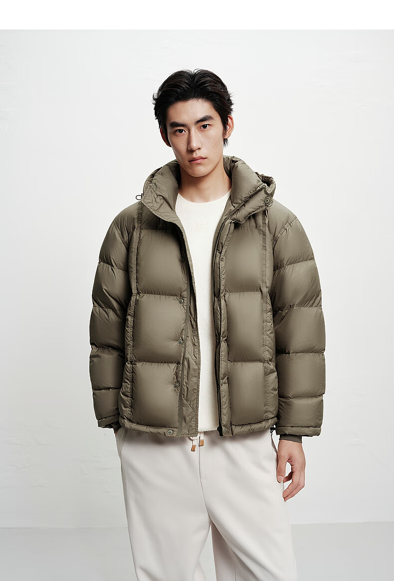 PEACEBIRD Herren 95 % importierte Entendaunen-Daunenjacke mit Kapuze, Winter-Brotjacke, kältebeständige kurze Rippenjacke, 15D Shadow Black (breiter Typ), dritte Charge, L