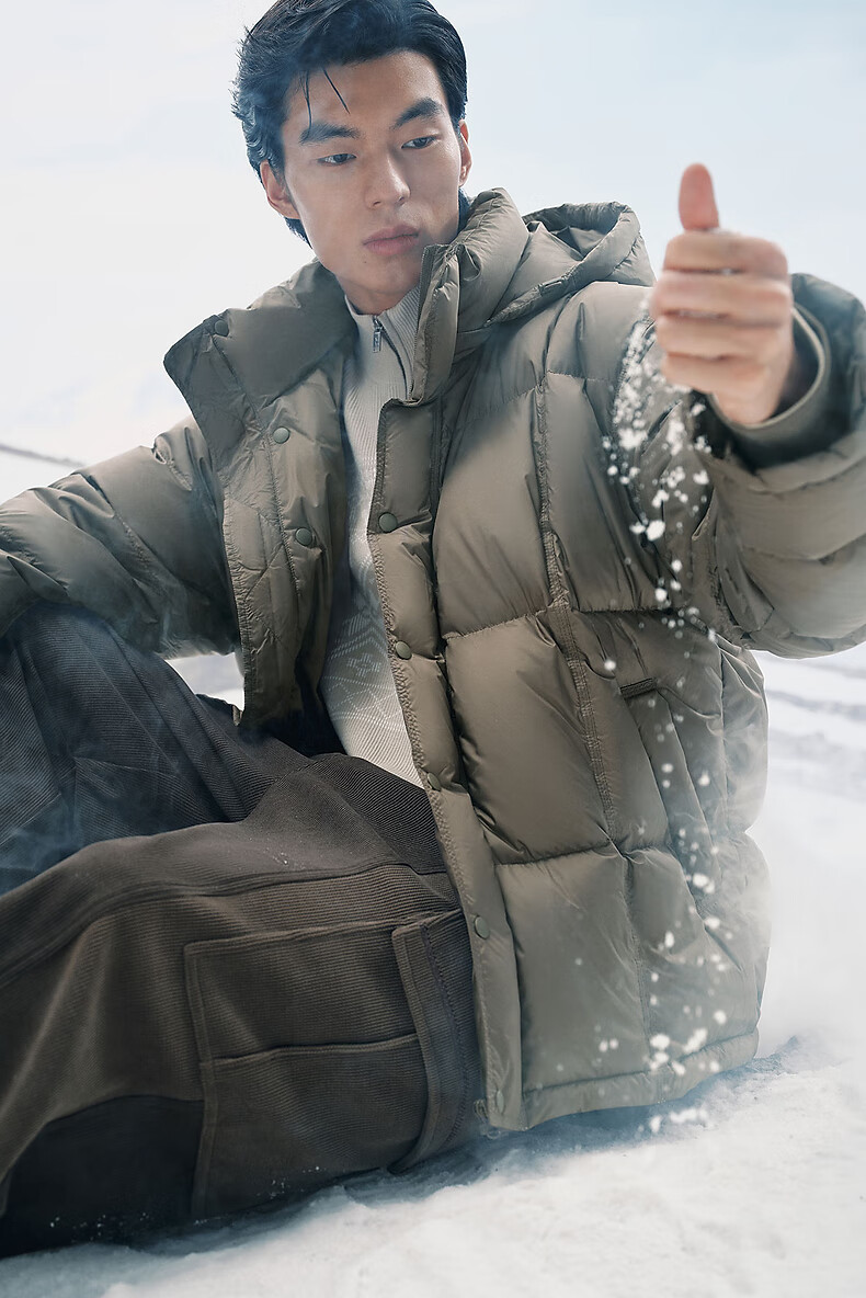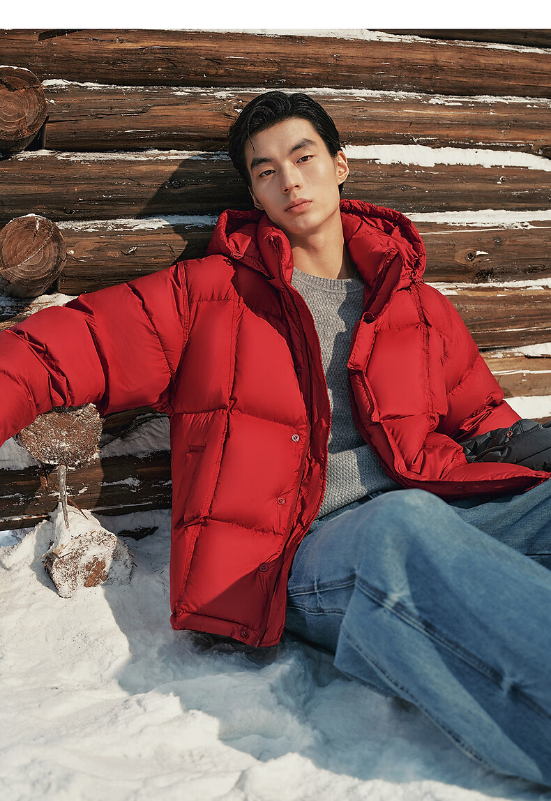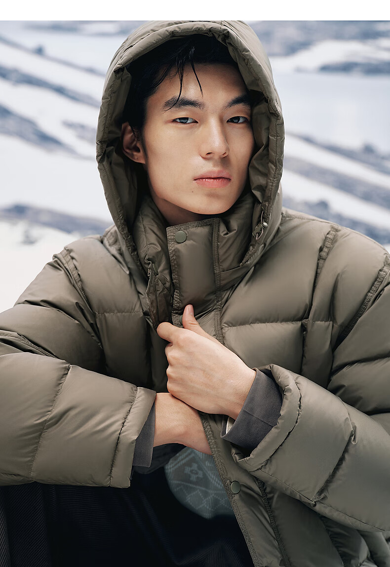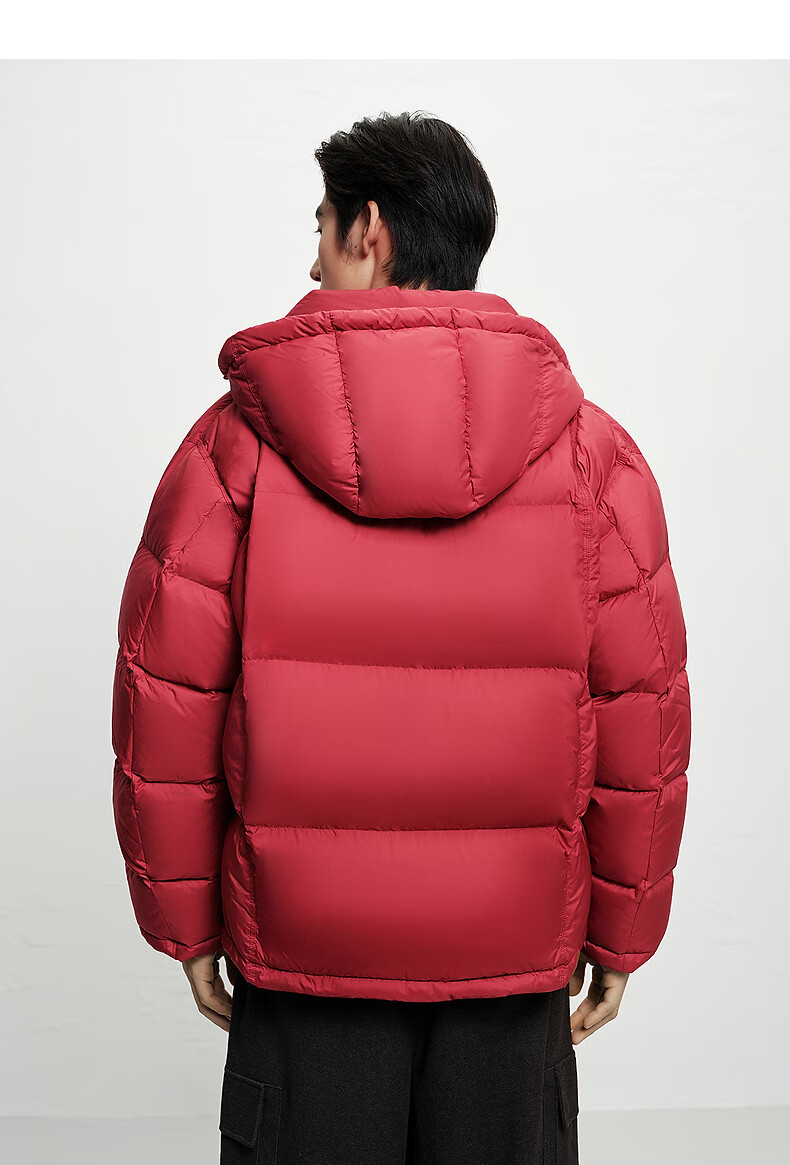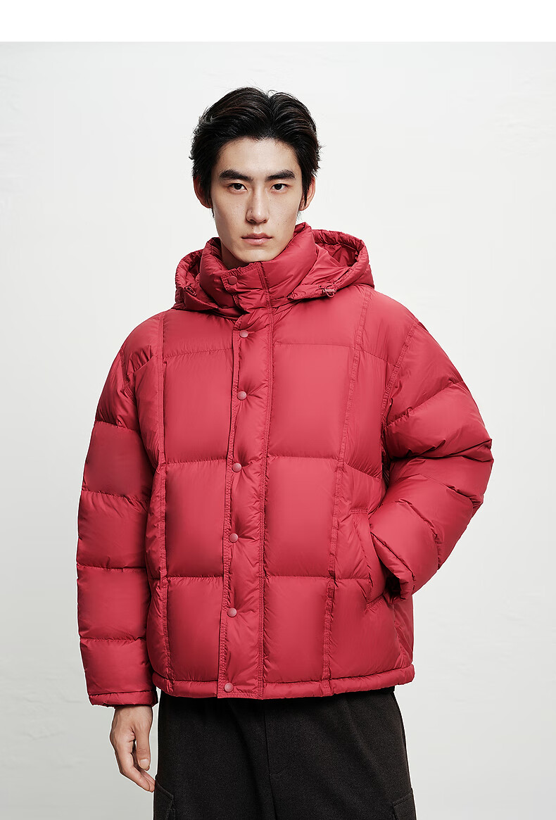 PEACEBIRD Herren 95 % importierte Entendaunen-Daunenjacke mit Kapuze, Winter-Brotjacke, kältebeständige kurze Rippenjacke, 15D Shadow Black (breiter Typ), dritte Charge, L