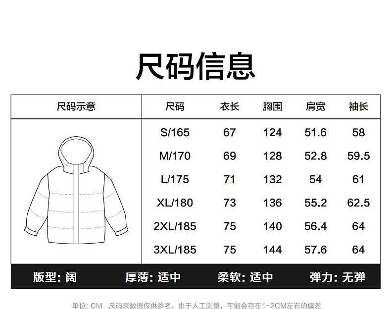 China (cm) 165 / 88-90 170 / 96-98 175 / 108-110 180 / 118-122 185 / 126-130