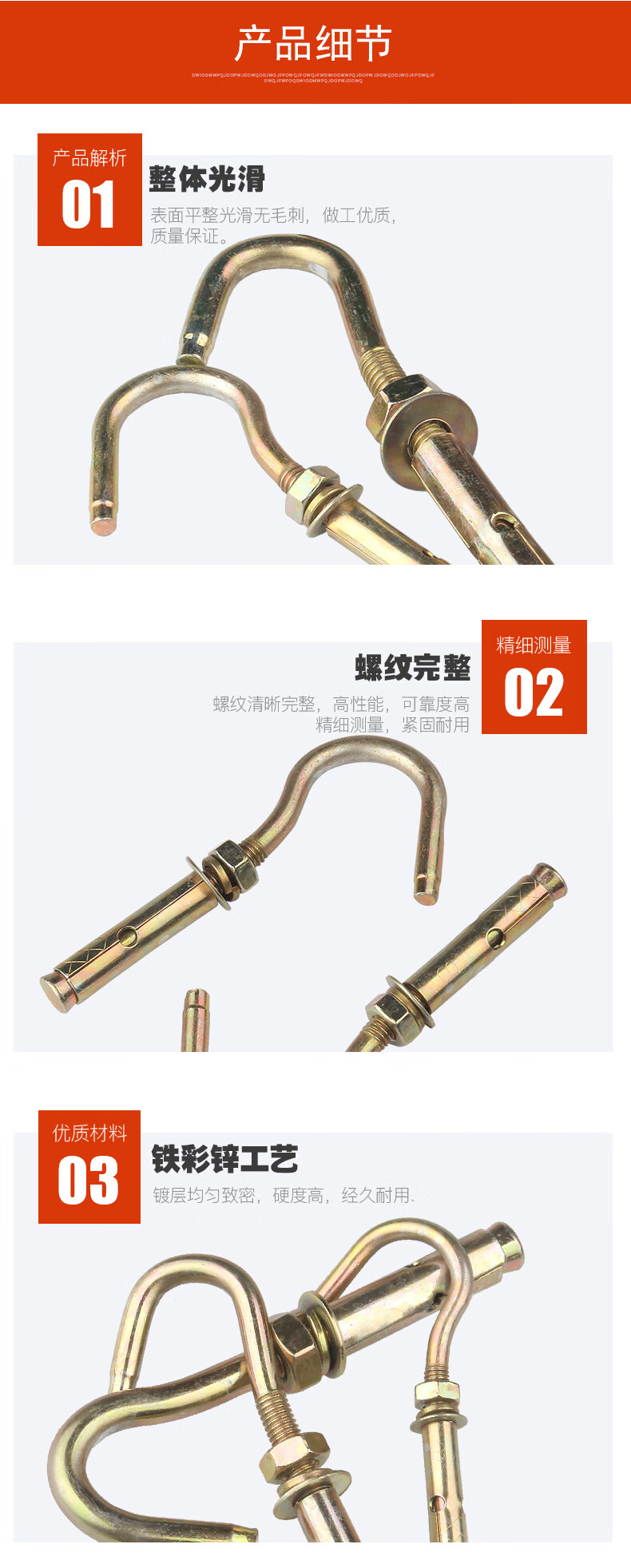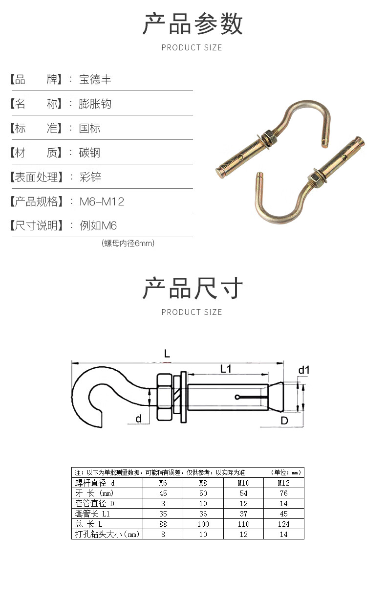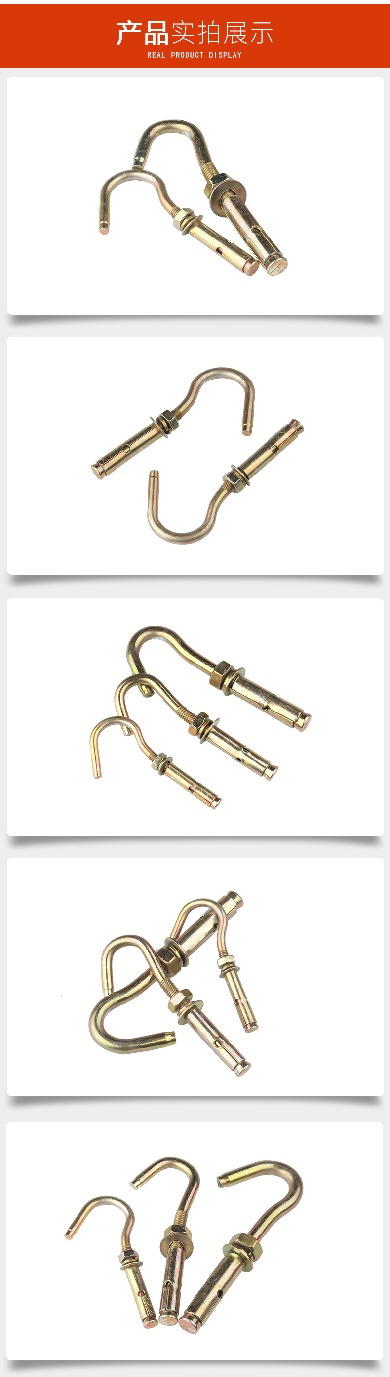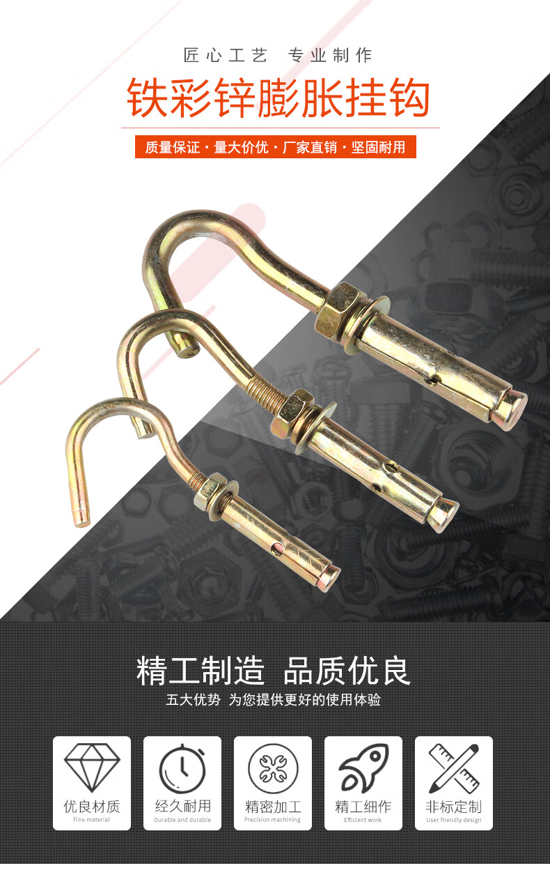 Baodefeng color zinc-plated universal expansion hook pull-out ceiling hook screw ceiling fan hook light hook expansion screw hook tube collection carbon steel color zinc (normal opening) M6 (5 pieces)
