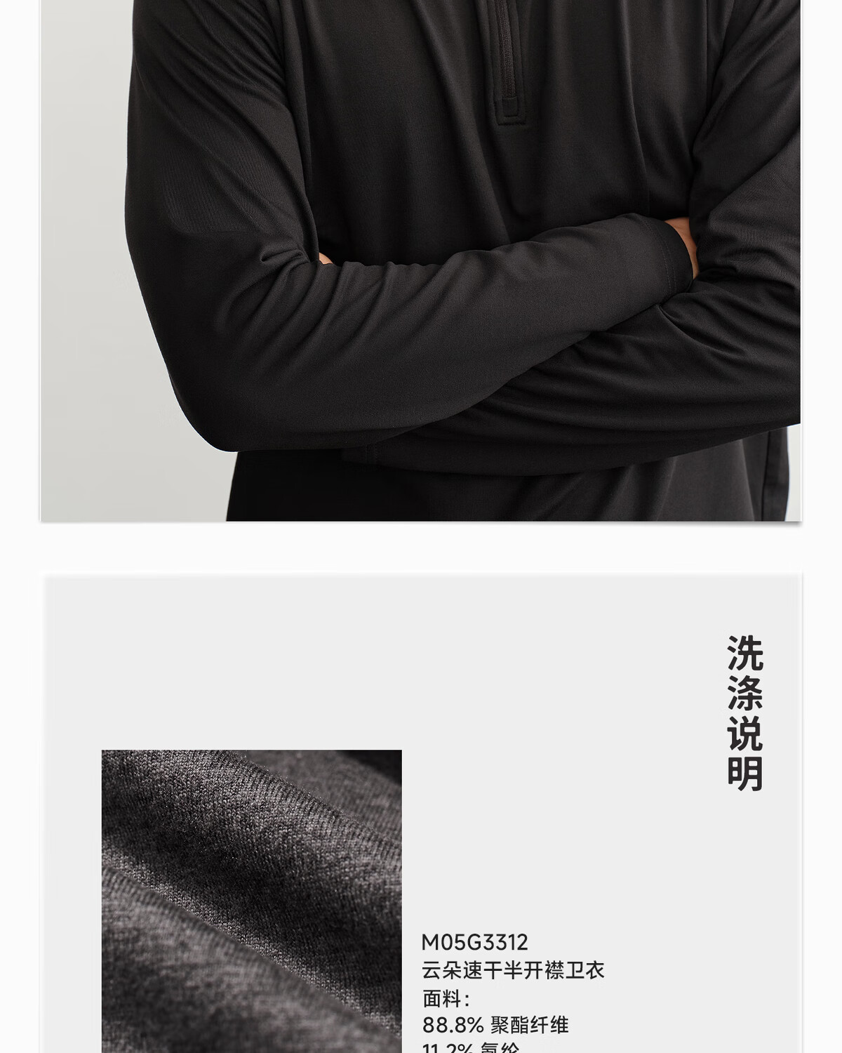 Youlan parent-child men's clothing, Yunduo quick-drying, quick-drying but also extremely comfortable, half-cardigan sweatshirt, agate black 170
