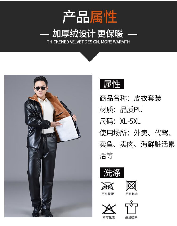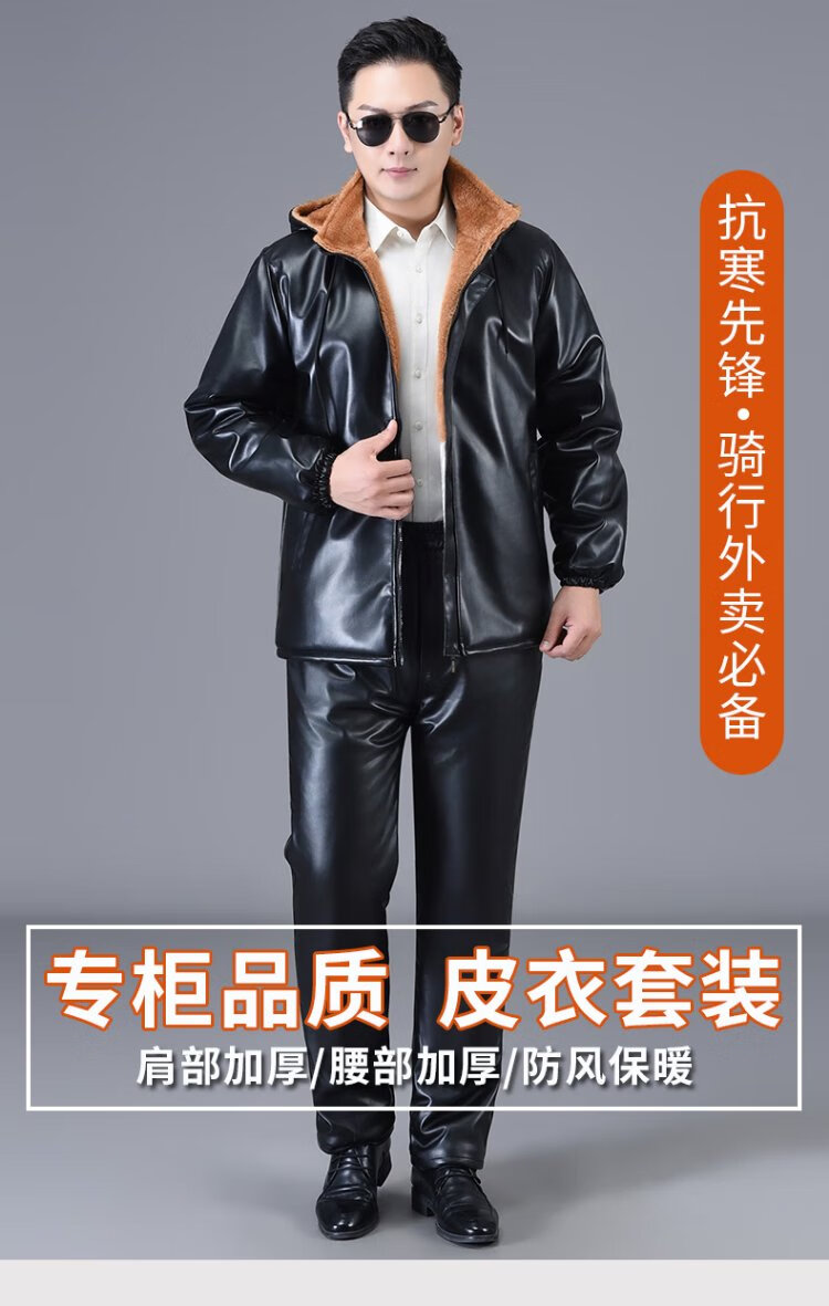 Liyang Men's Leather Clothes and Leather Pants Suit Plus Velvet Thickened Windproof Warmth Waterproof Motorcycle and Motorcycle Driving Takeaway Work Clothes Shoulder Pads Belly Protection Leather Clothes Leather Pants Set Plus Velvet XL 90-110Jin Jin is equal to 0.5 kg