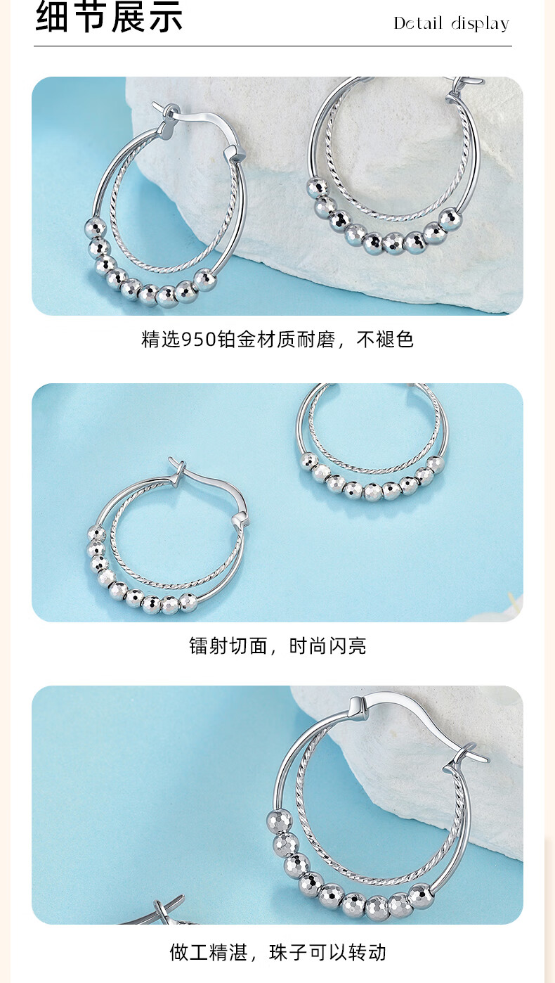 Platinum laser bead earrings for women PT950 pure platinum earrings fashionable earrings as a gift for girlfriend on Chinese Valentine's Day. Priced by the gram. Contact before bidding.