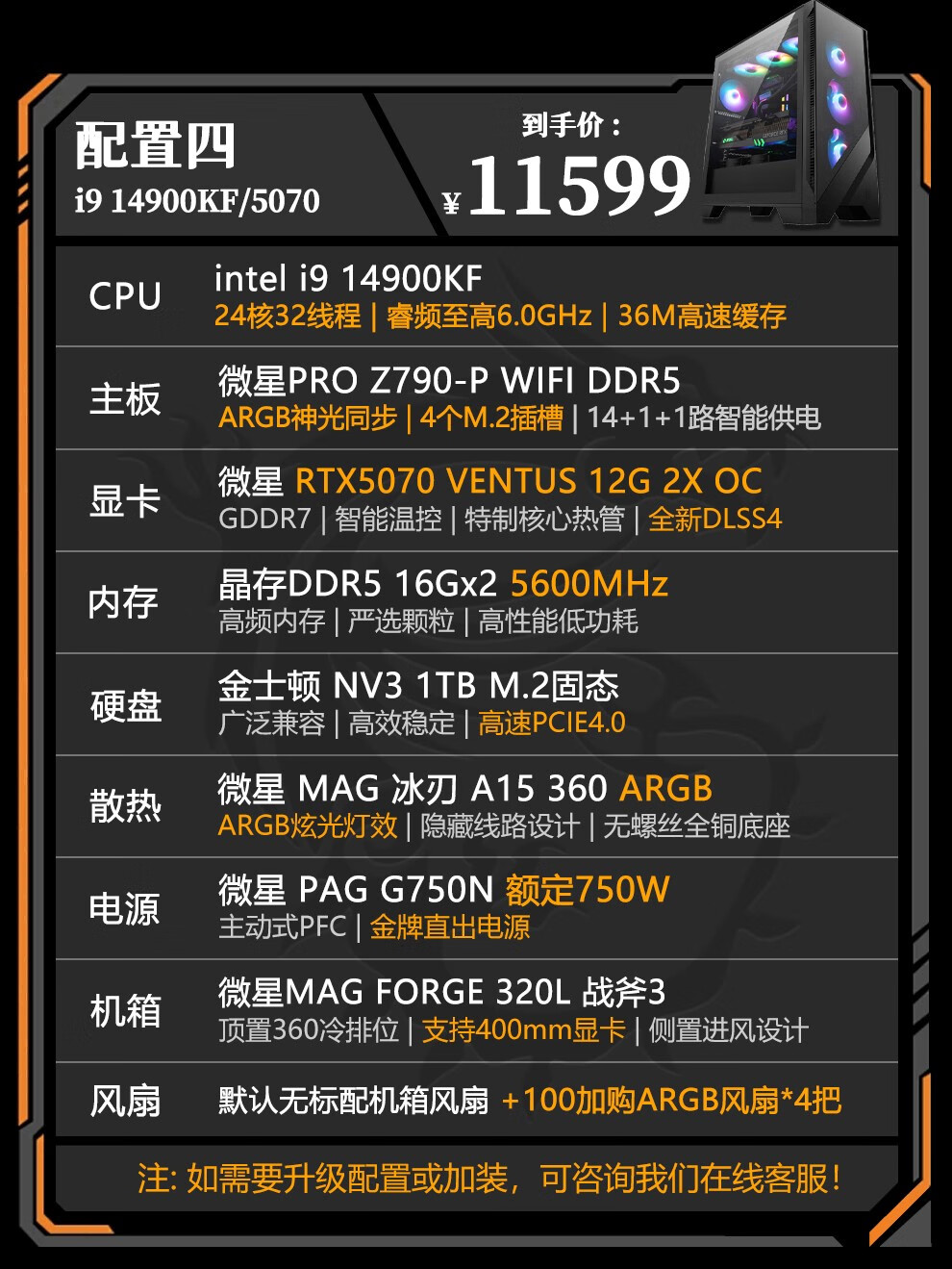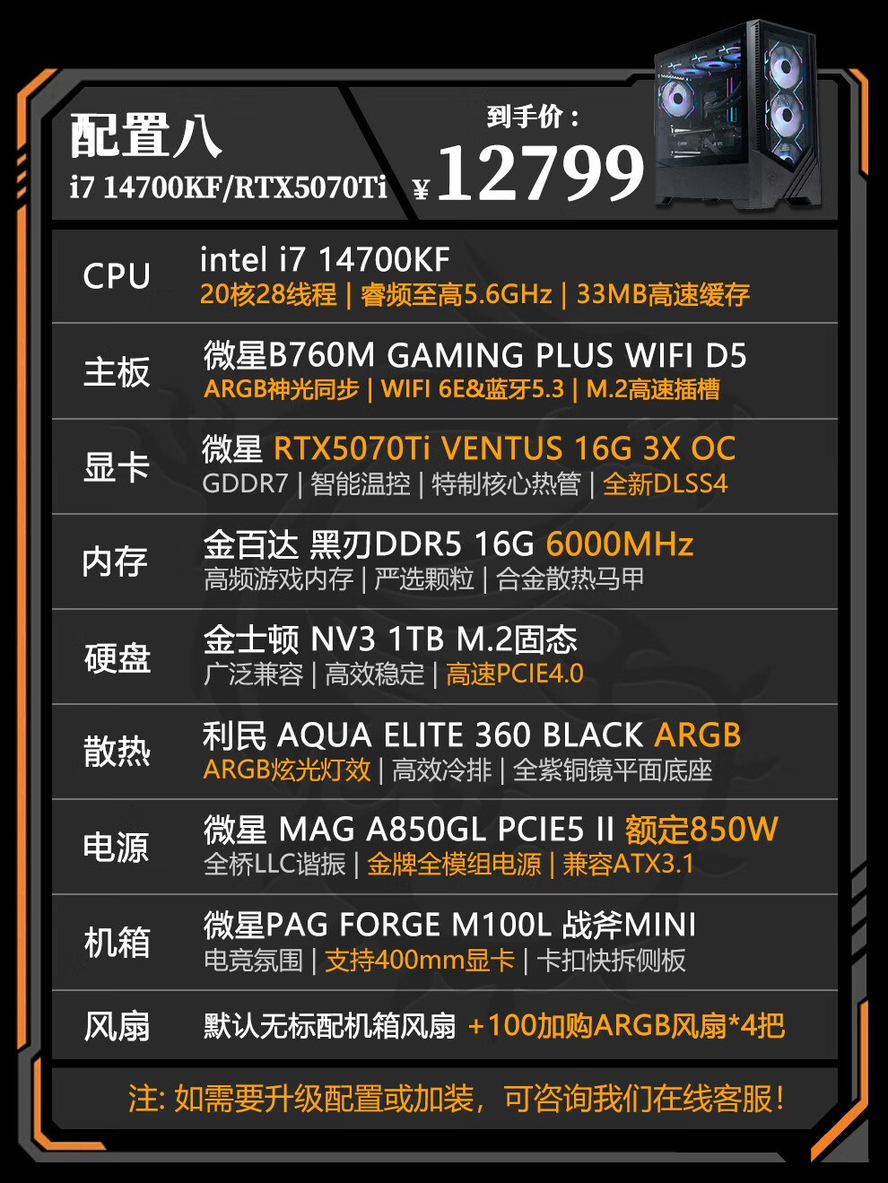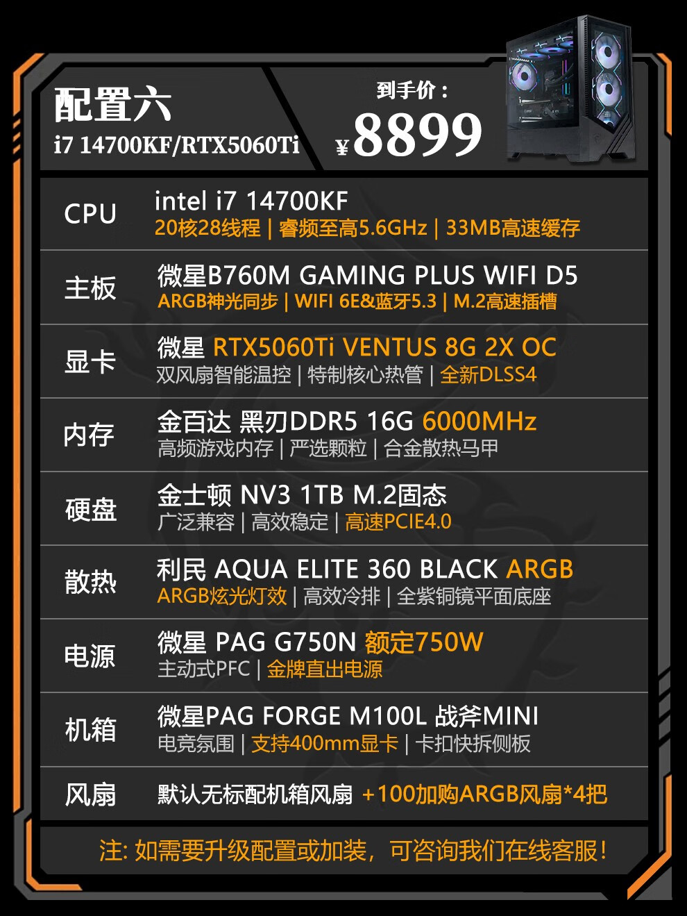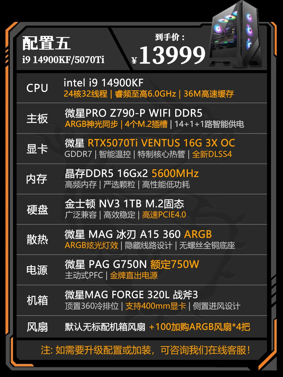 MSI Family Bucket 14th generation i9 14900kf/i7 14700kf with 5070Ti graphics card game e-sports live broadcast computer host AI rendering DIY assembly machine computer complete machine configuration six 14700KF+RTX5060Ti