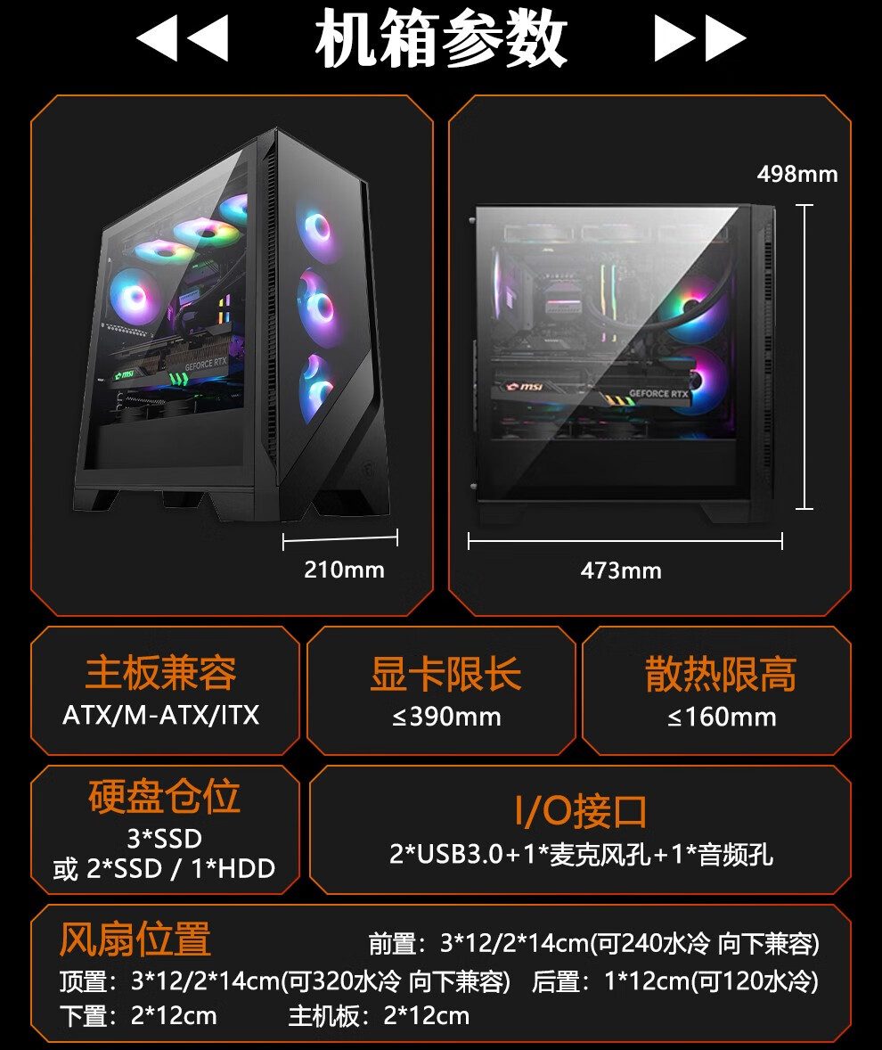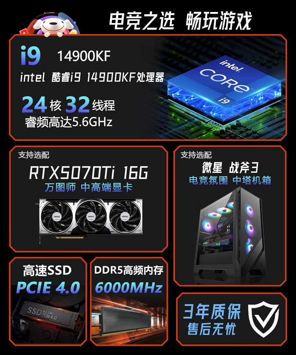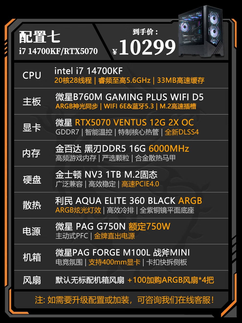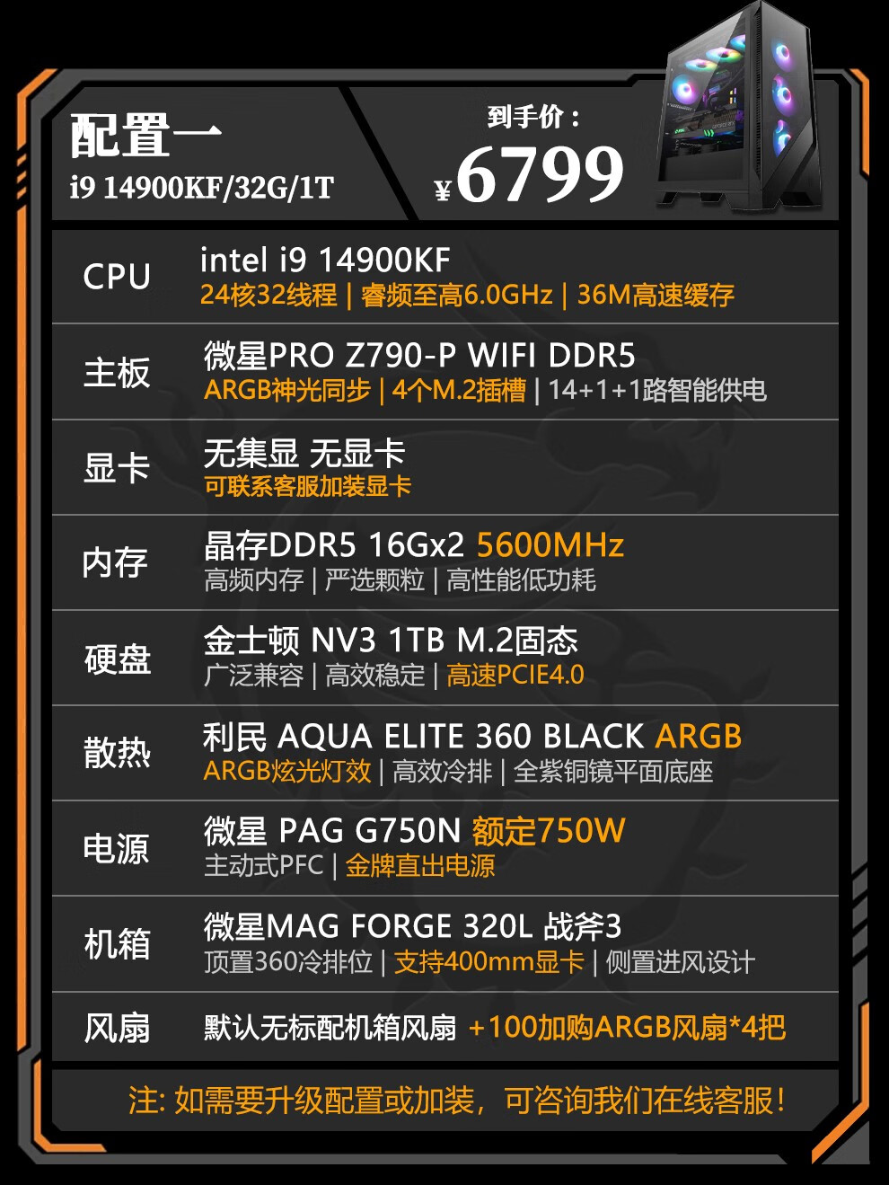 MSI Family Bucket 14th generation i9 14900kf/i7 14700kf with 5070Ti graphics card game e-sports live broadcast computer host AI rendering DIY assembly machine computer complete machine configuration six 14700KF+RTX5060Ti