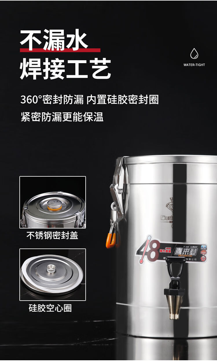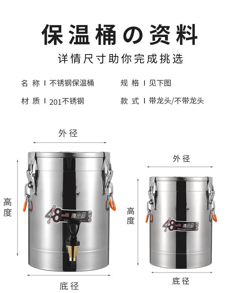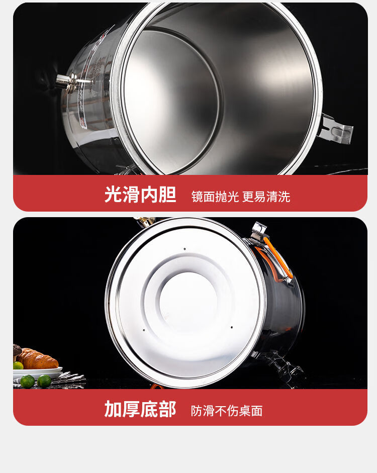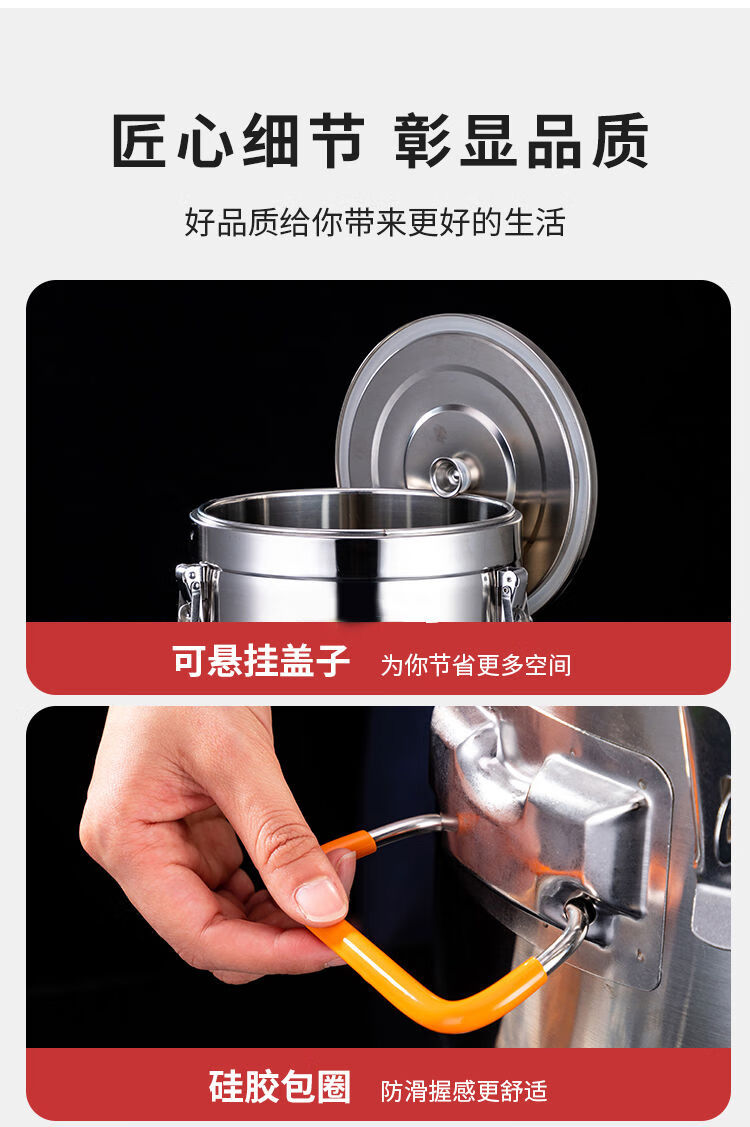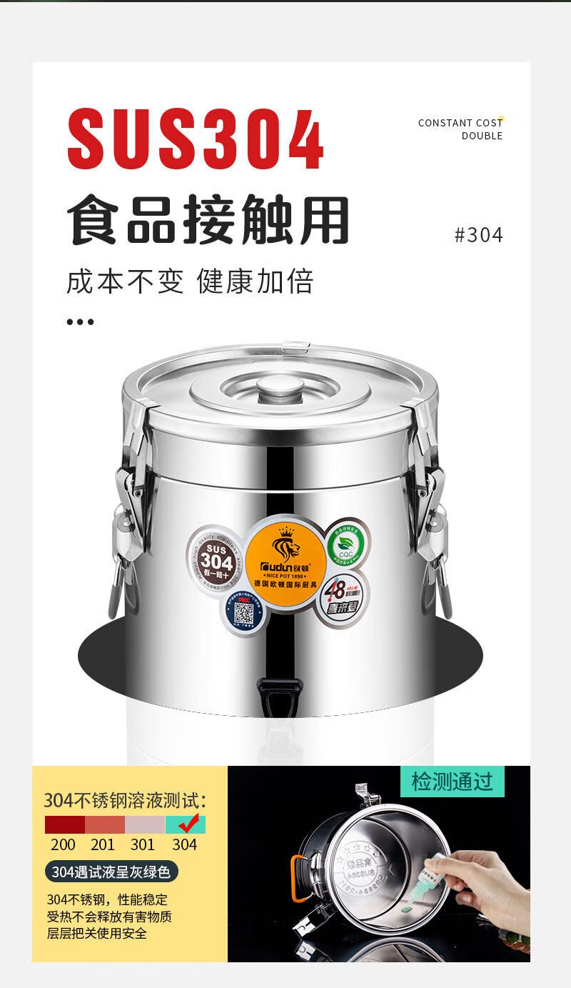 Orton 304 stainless steel insulation bucket with faucet large capacity commercial rice bucket canteen stall soy milk bucket food grade 304 with faucet 40L