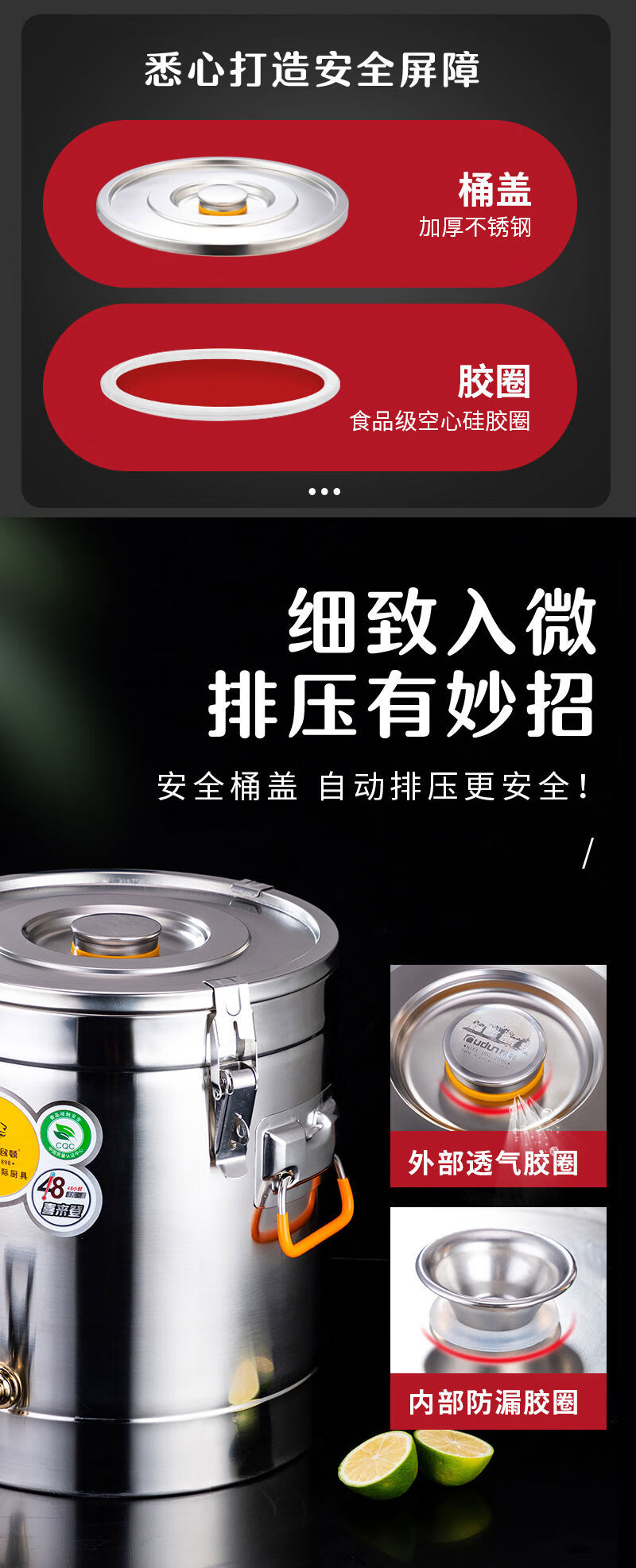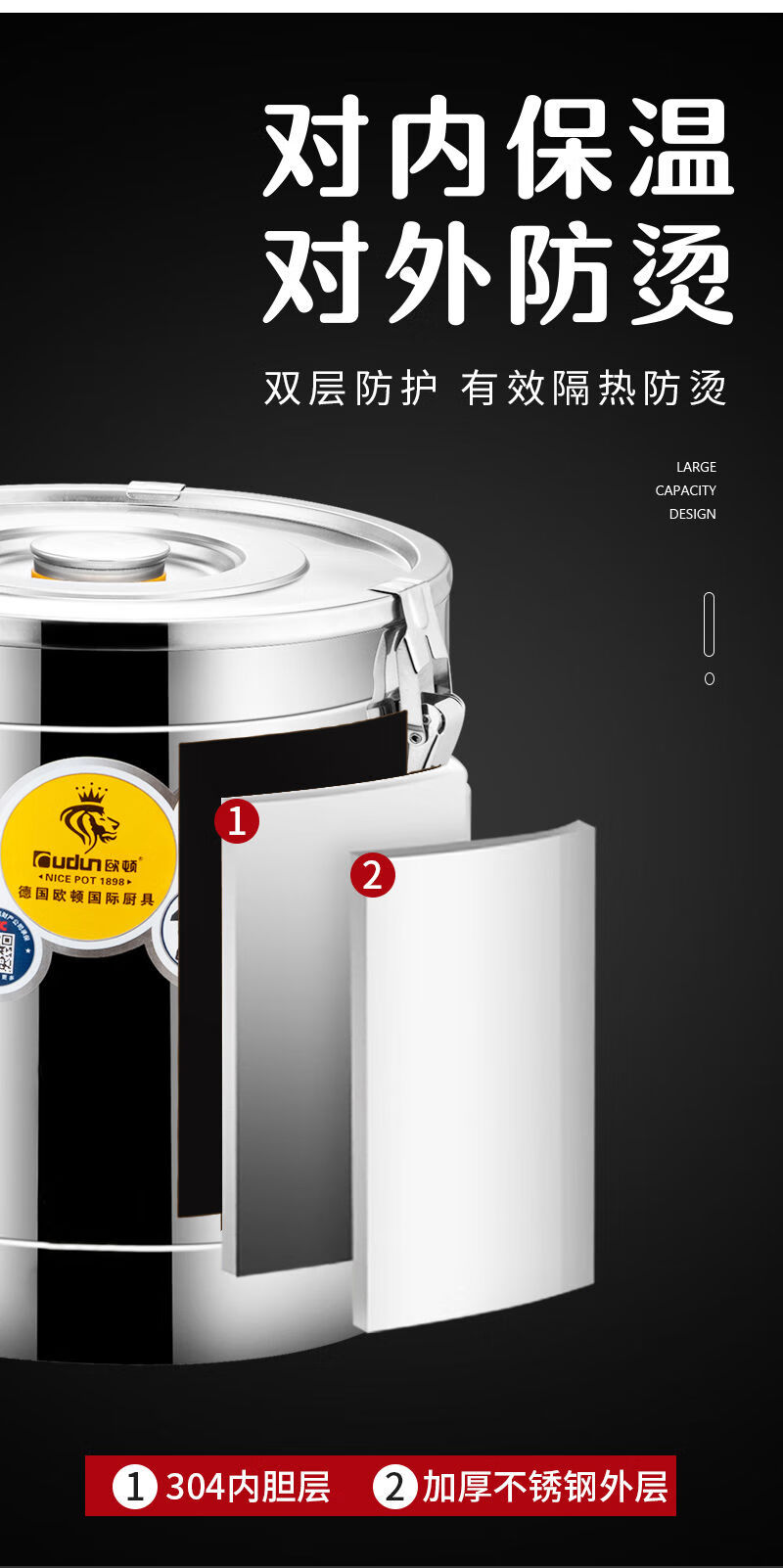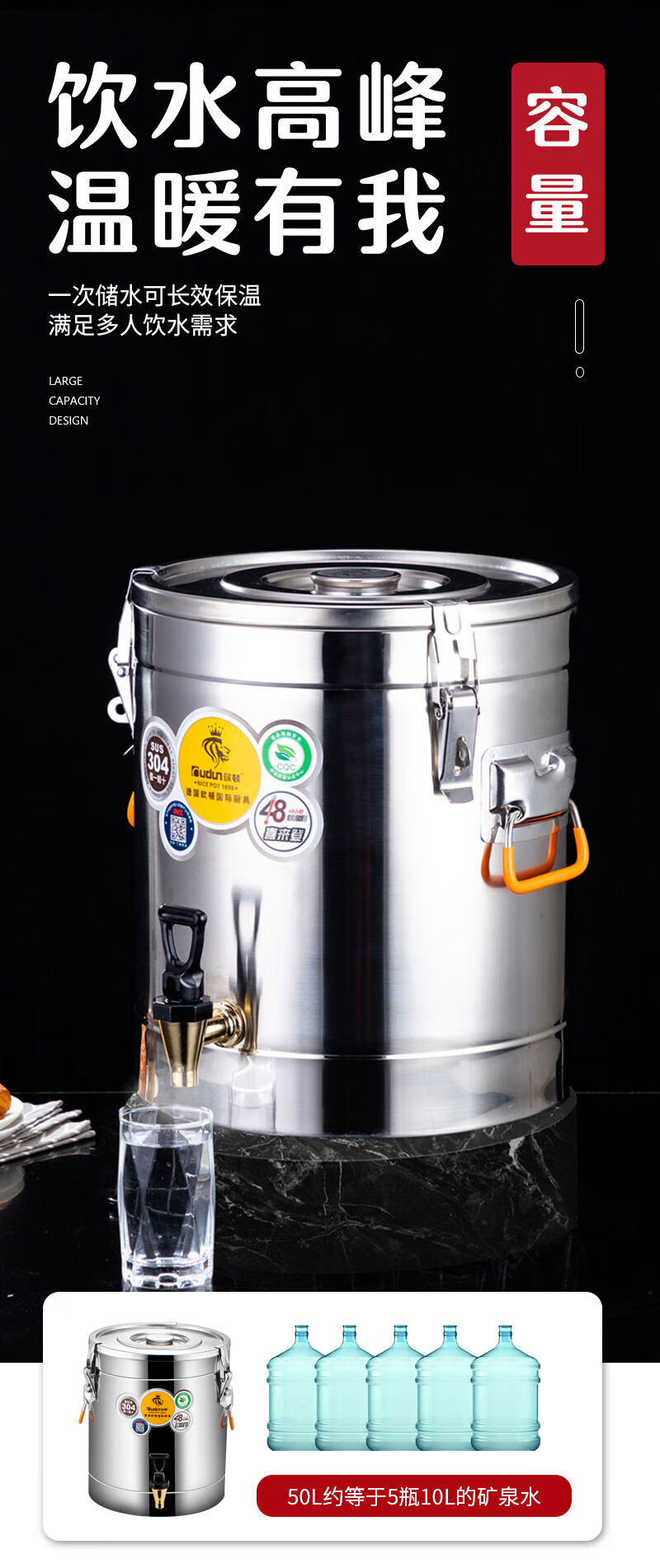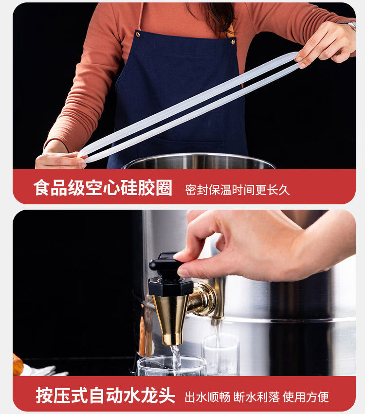 Orton 304 stainless steel insulation bucket with faucet large capacity commercial rice bucket canteen stall soy milk bucket food grade 304 with faucet 40L