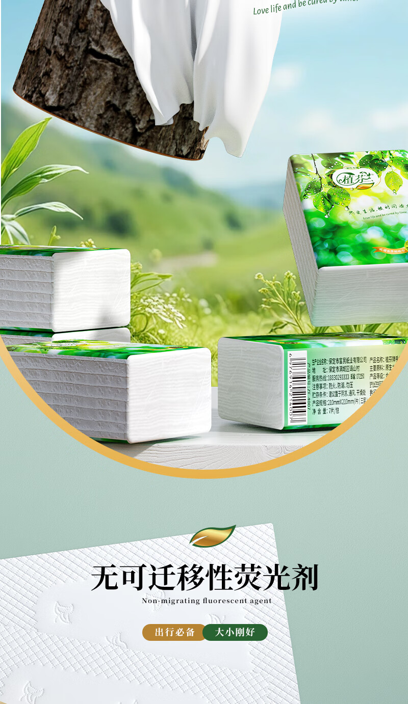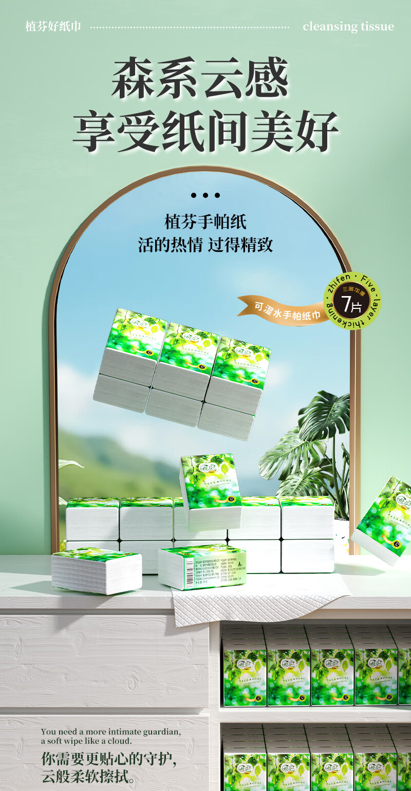 Travel essentials Zhifen handkerchief paper small pack tissue paper toilet paper portable flexible napkin facial tissue 3 layers 7 pieces * 6 pack