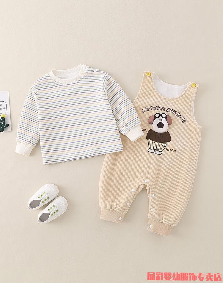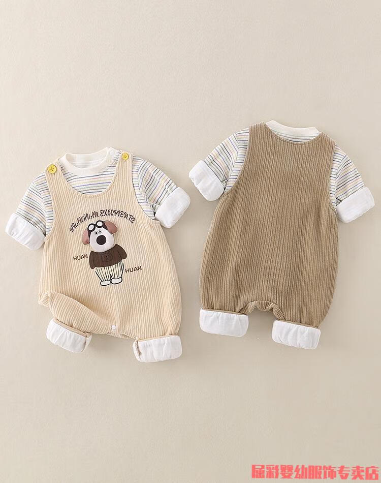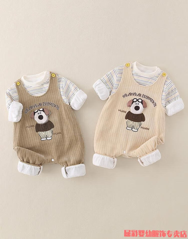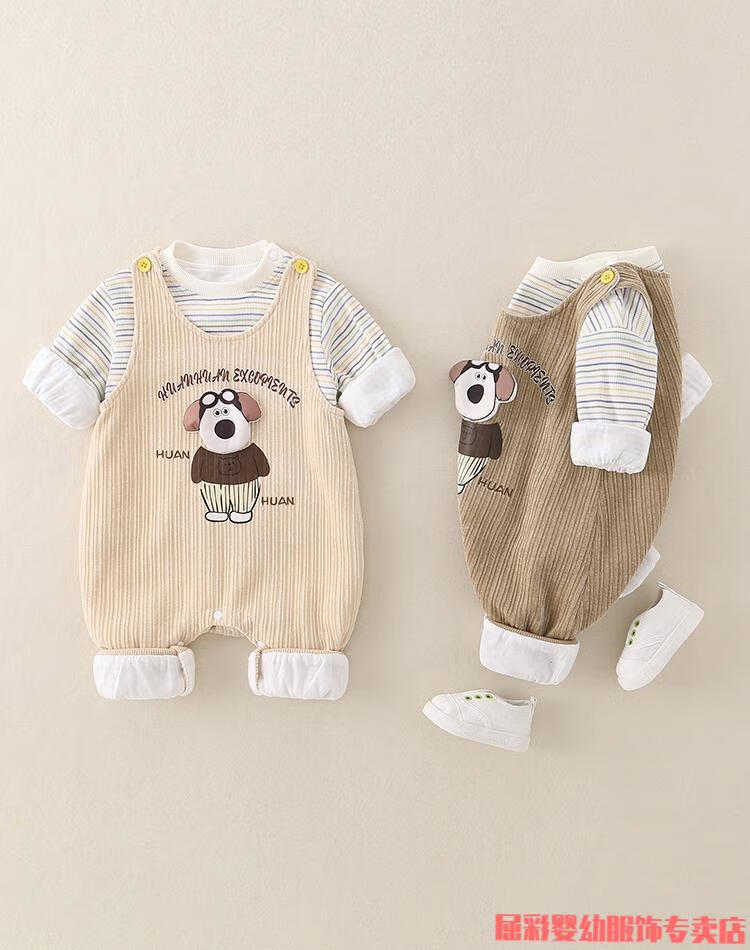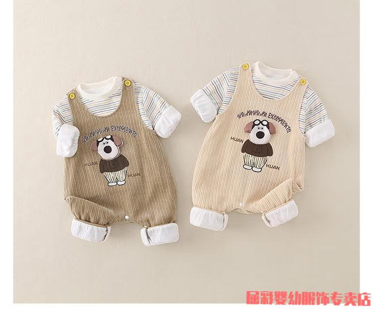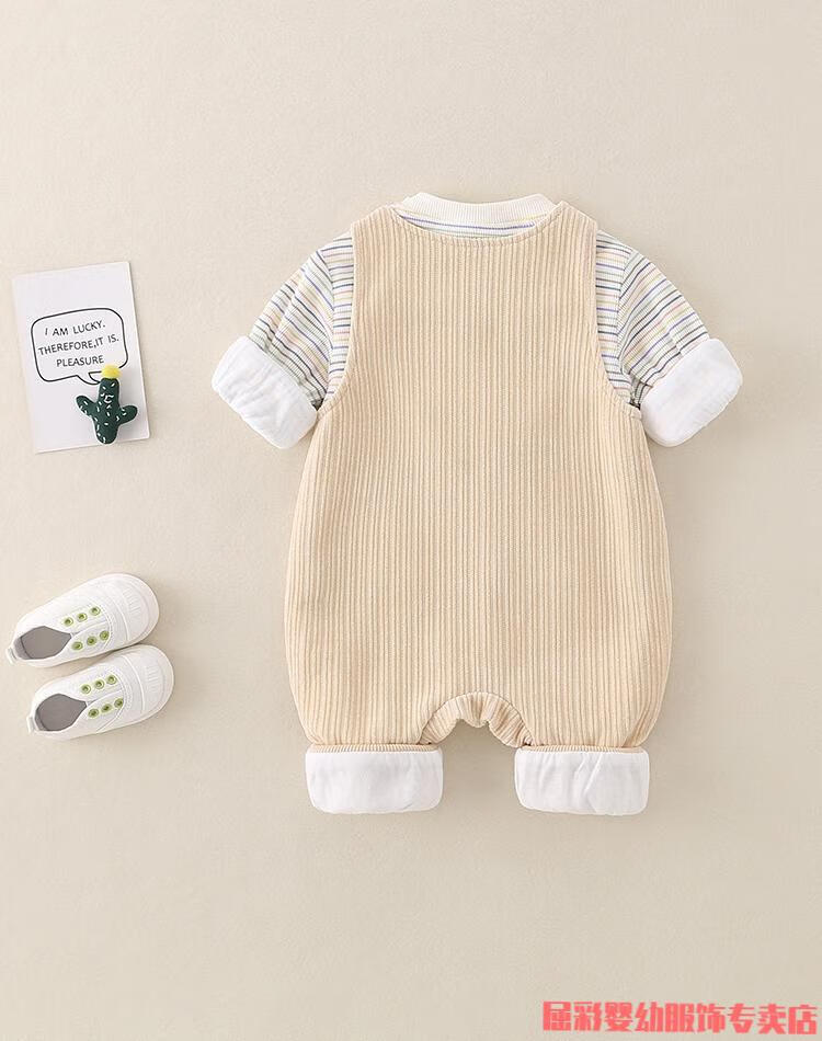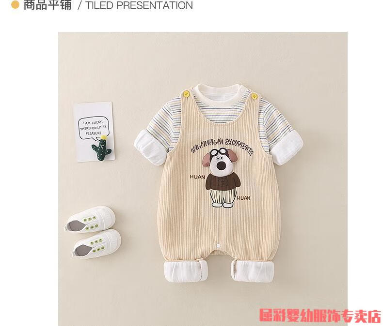 G.DUCKKIDS baby clothes spring and autumn double-layer split suit for men and women baby cotton sweatshirt jumpsuit overalls outing clothing apricot XHY-73mP4BQC30 73cm