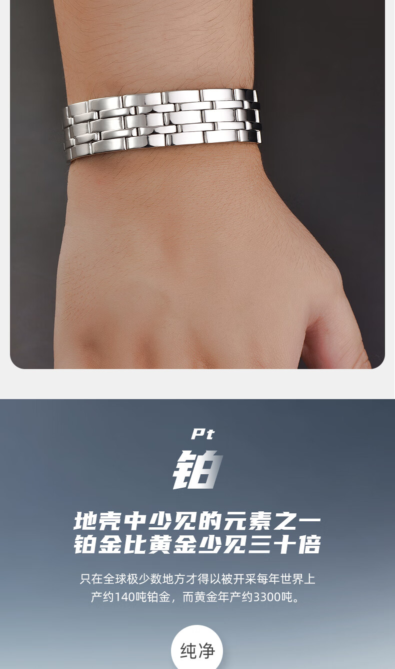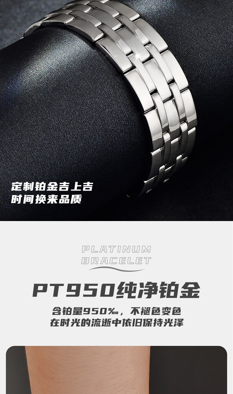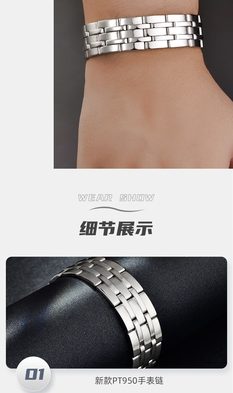 GsunG platinum wide watch chain men's PT950 pure platinum fashionable hand jewelry men's Chinese Valentine's Day gift for boyfriend Price by gram Contact before bidding