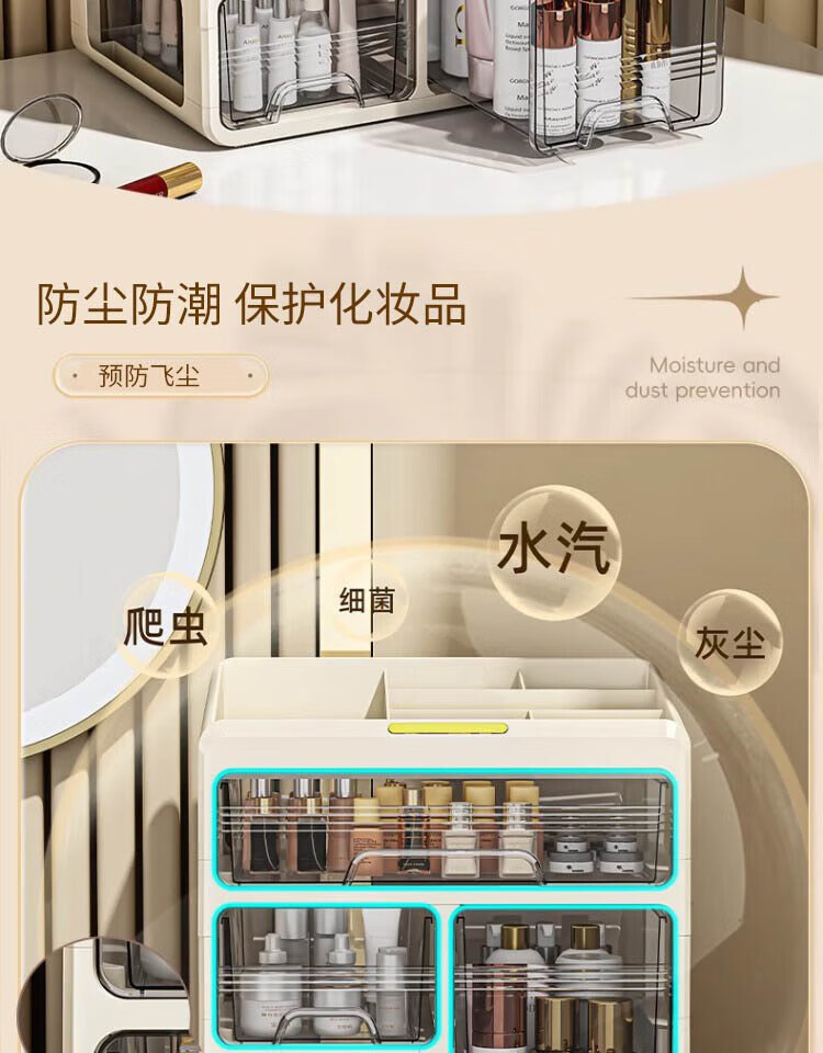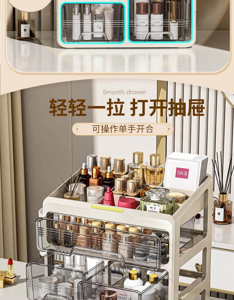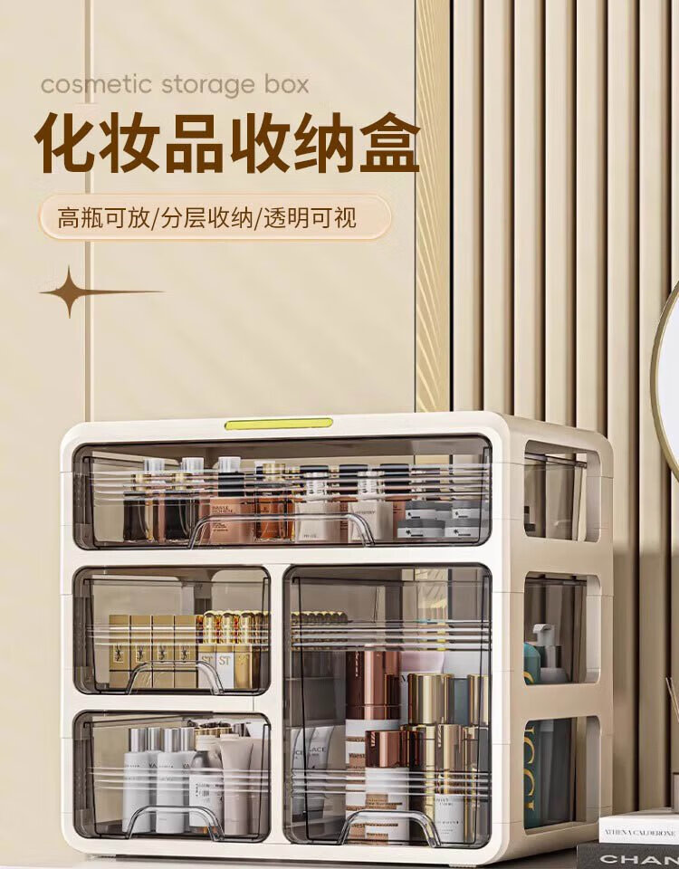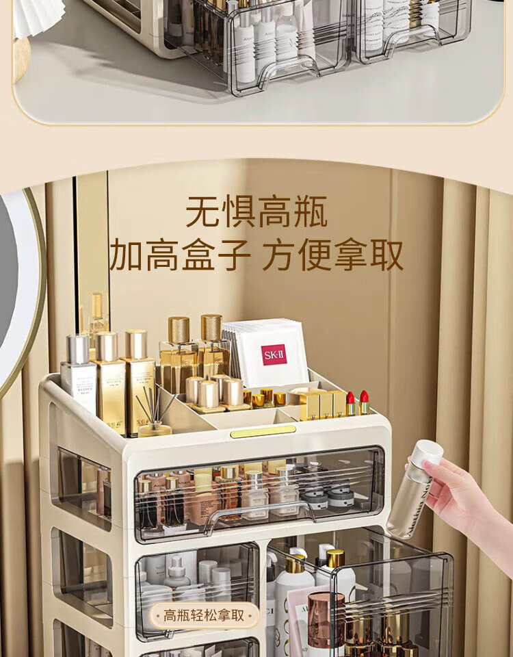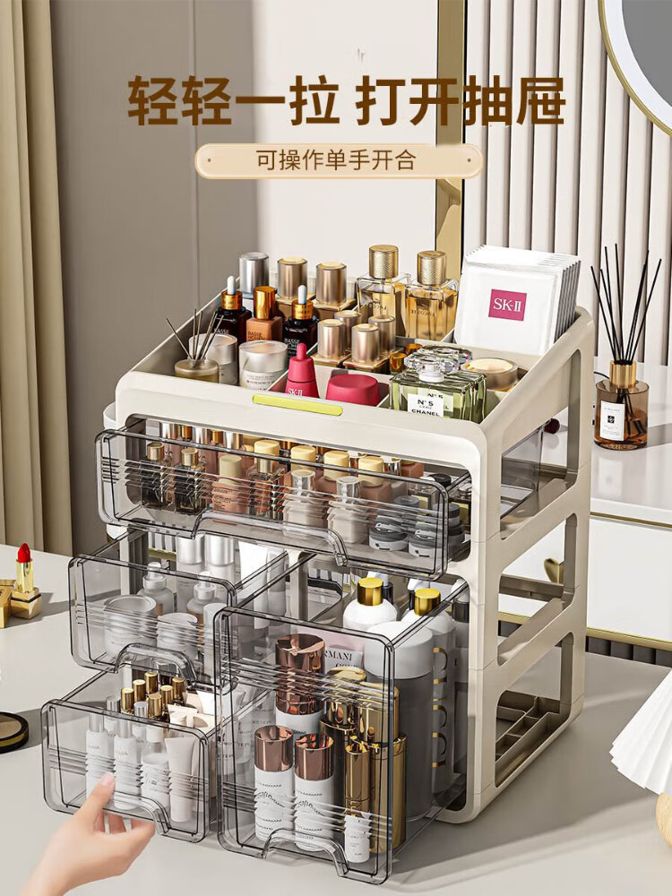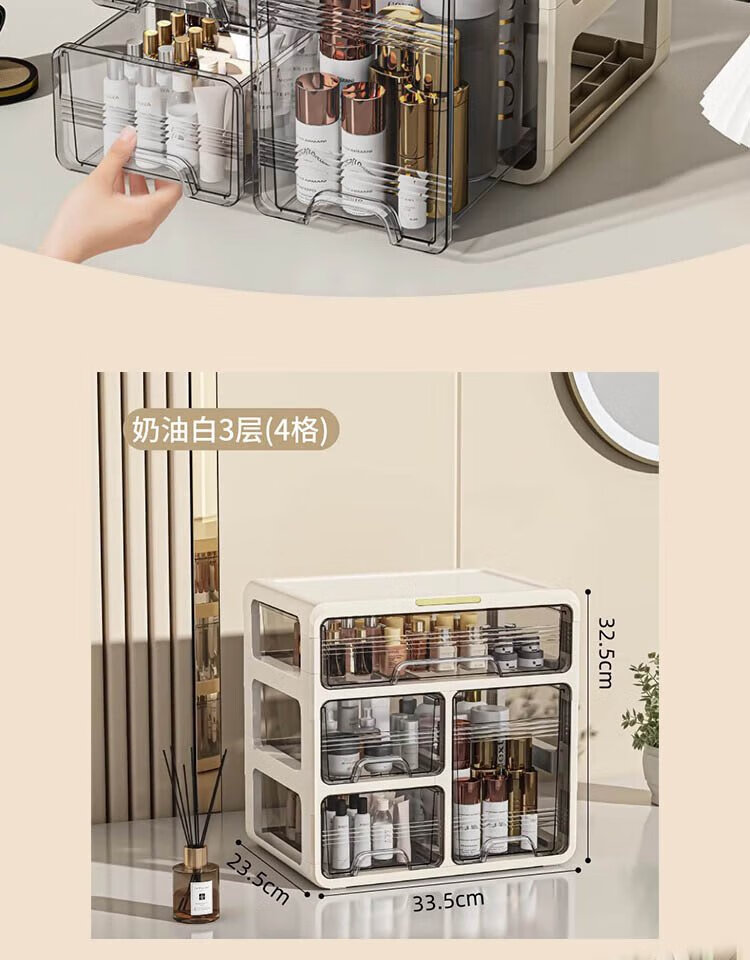 Hao'e drawer-type cosmetics storage box desktop dressing table large capacity skin care products lipstick cabinet organizer box storage rack 33.5*23.5*32.5cm three-layer drawer storage box