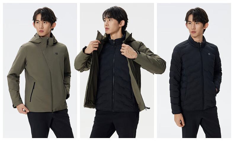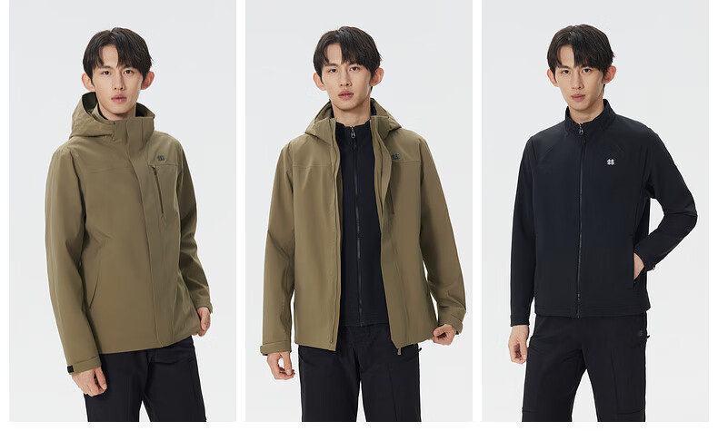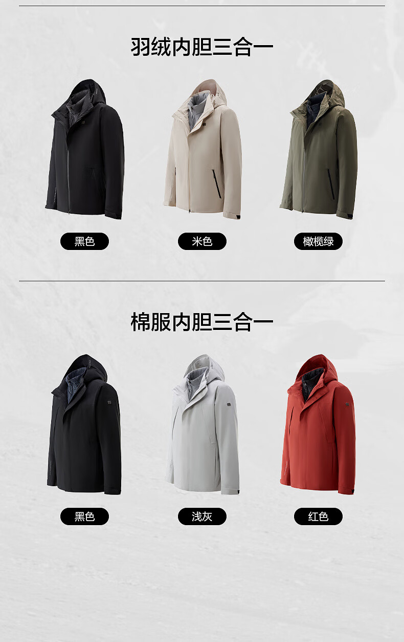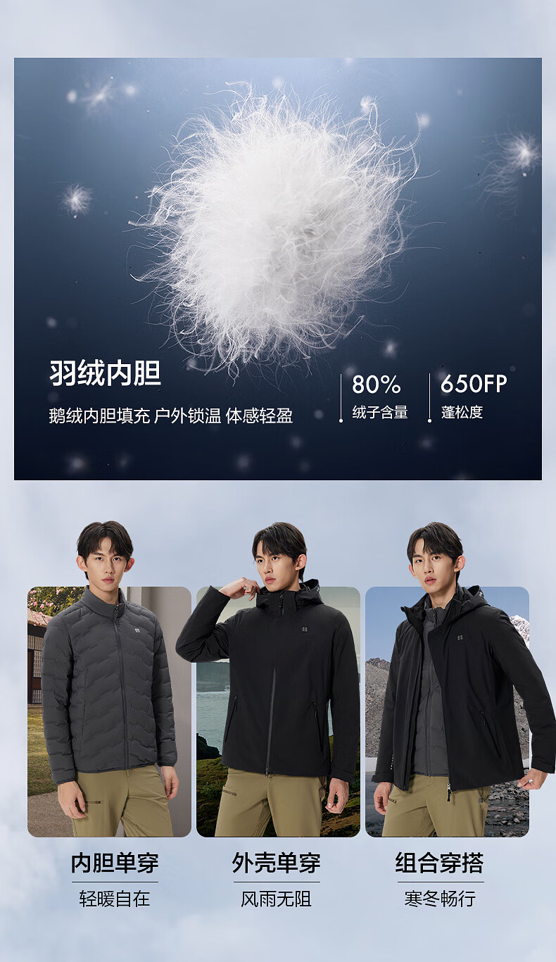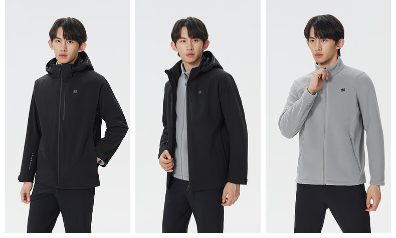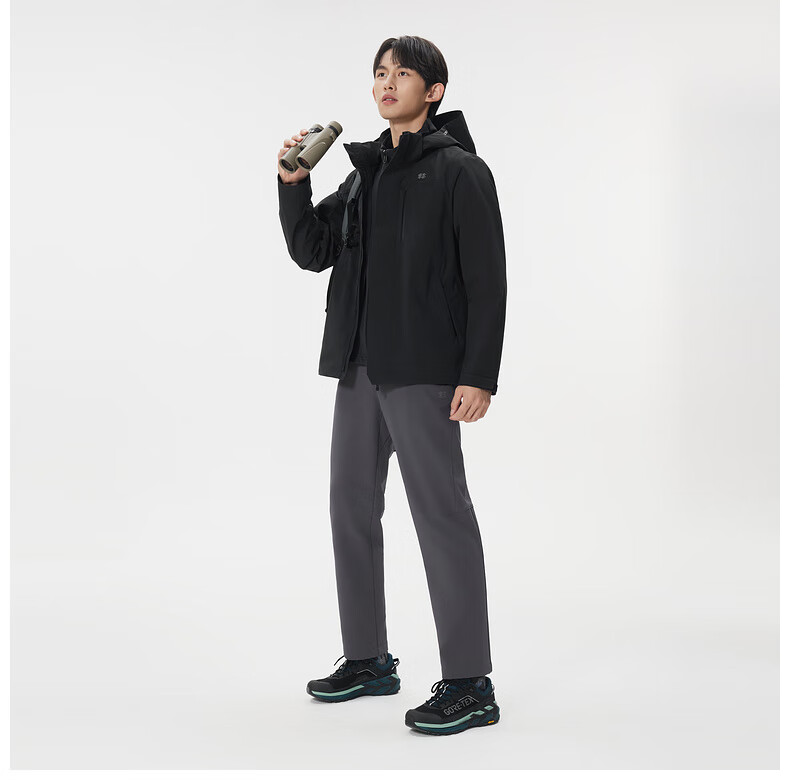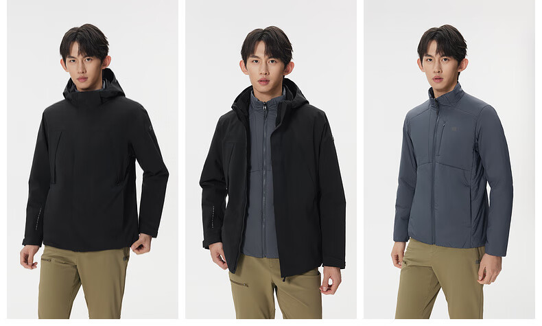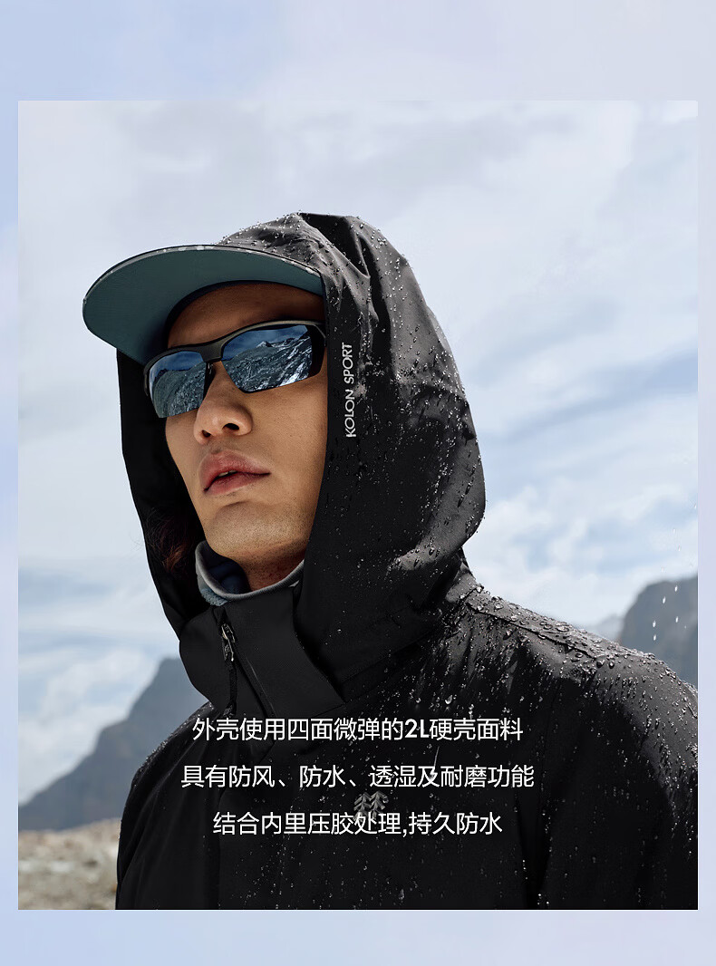KOLON SPORT/Kolon Soft Shell Three-in-One Jacket Men's Water-Repellent and Windproof Outdoor Jacket Level 2 LHJK5WNT13-BK Black Down Liner XL 180/100A