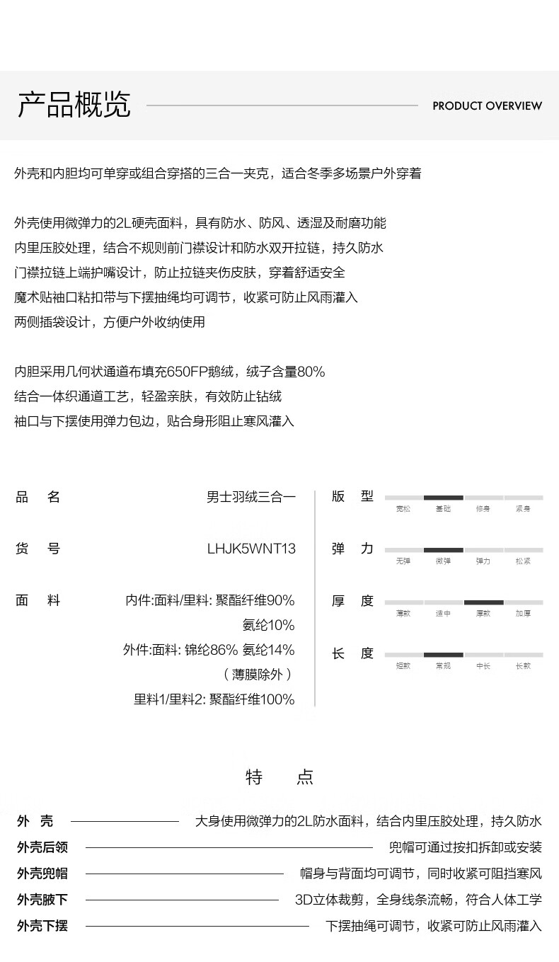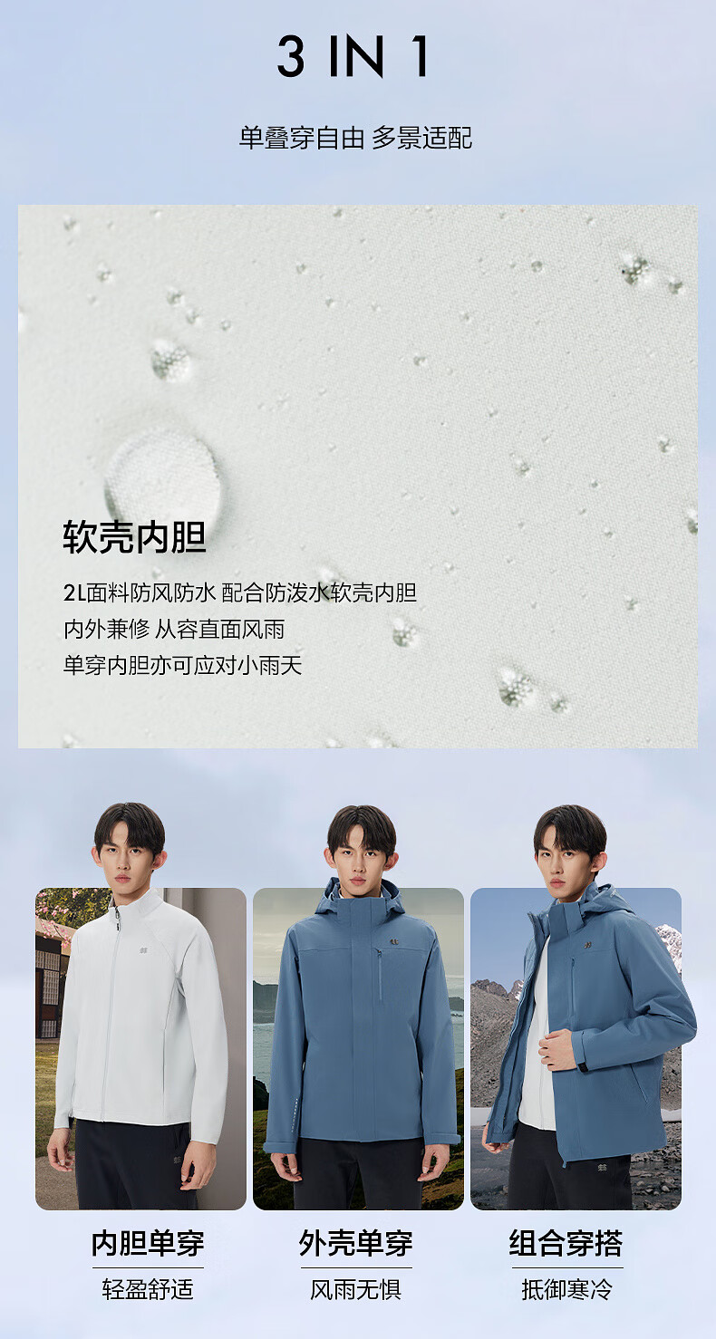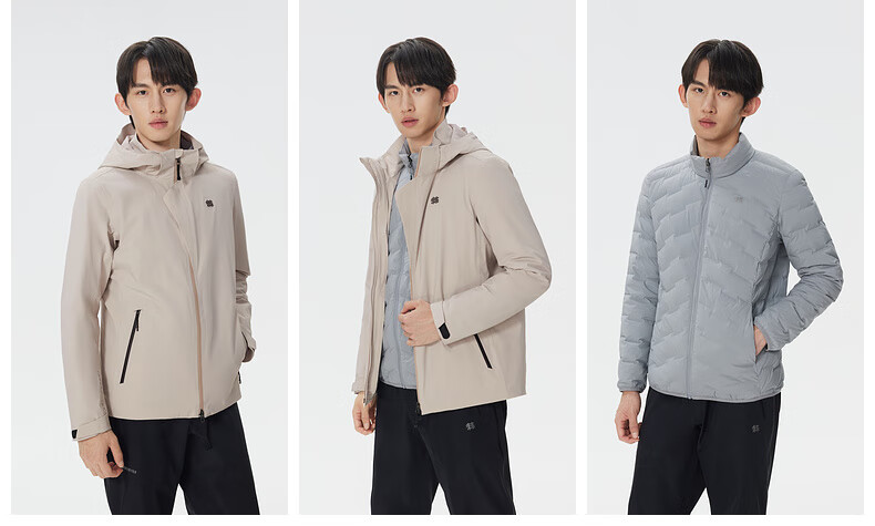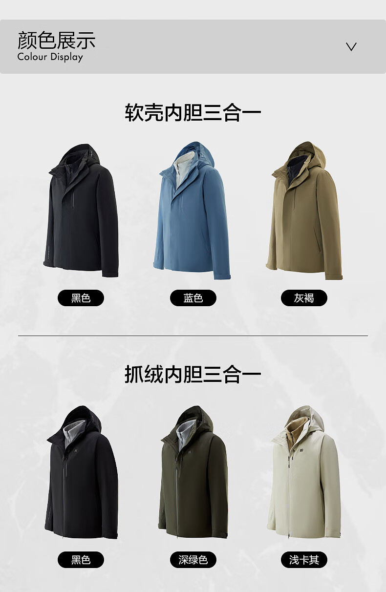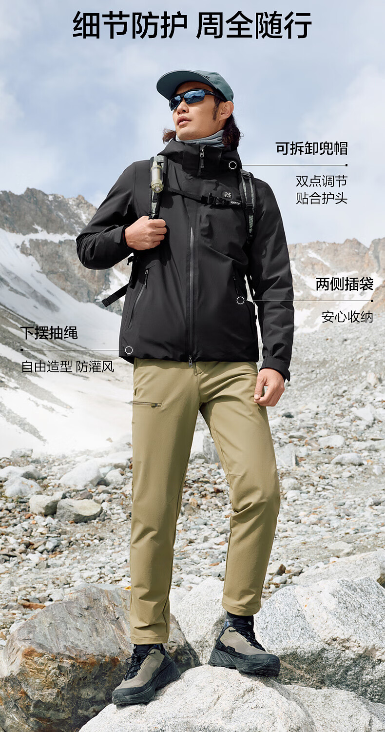 KOLON SPORT/Kolon Soft Shell Three-in-One Jacket Men's Water-Repellent and Windproof Outdoor Jacket Level 2 LHJK5WNT13-BK Black Down Liner XL 180/100A