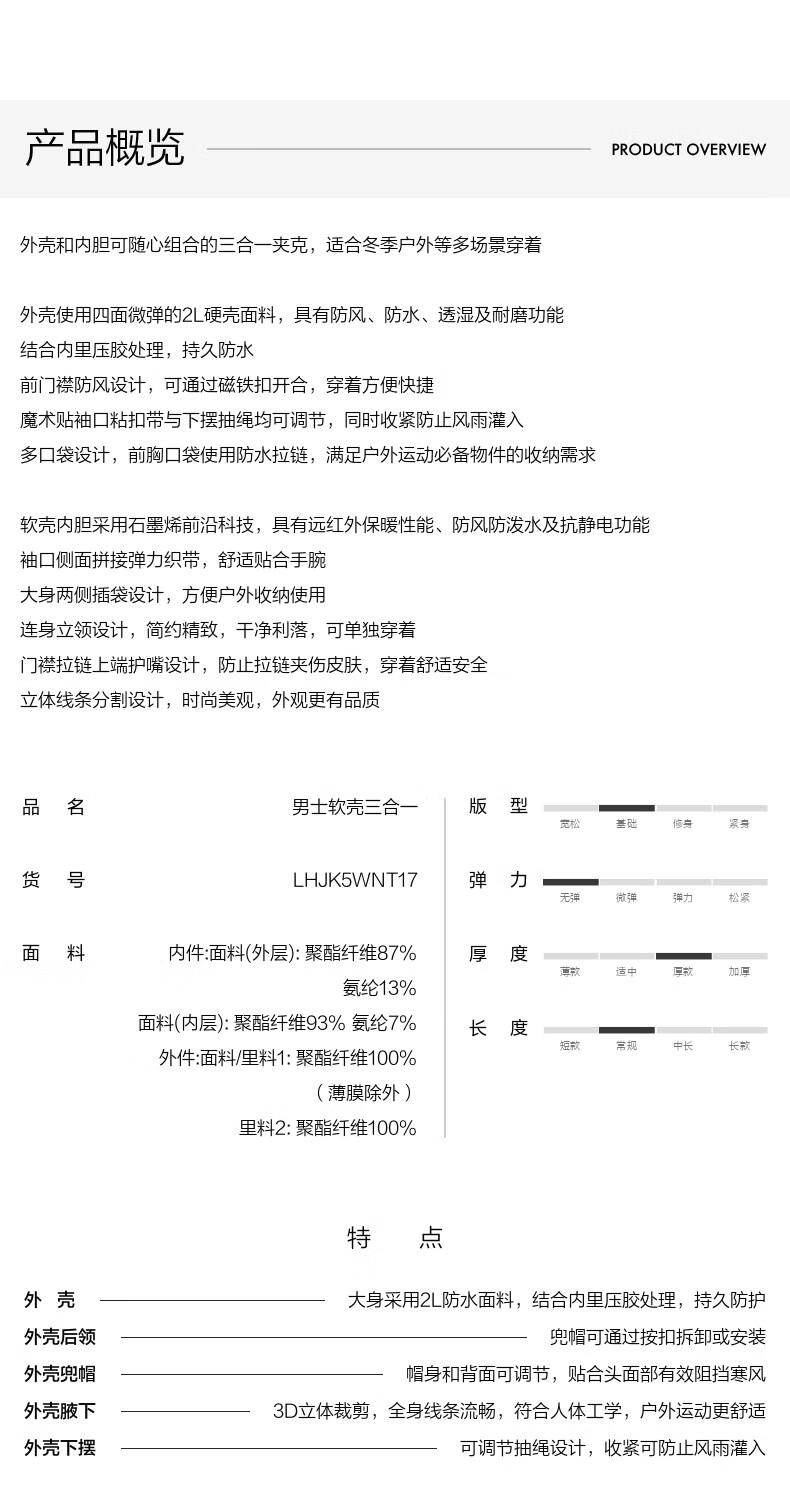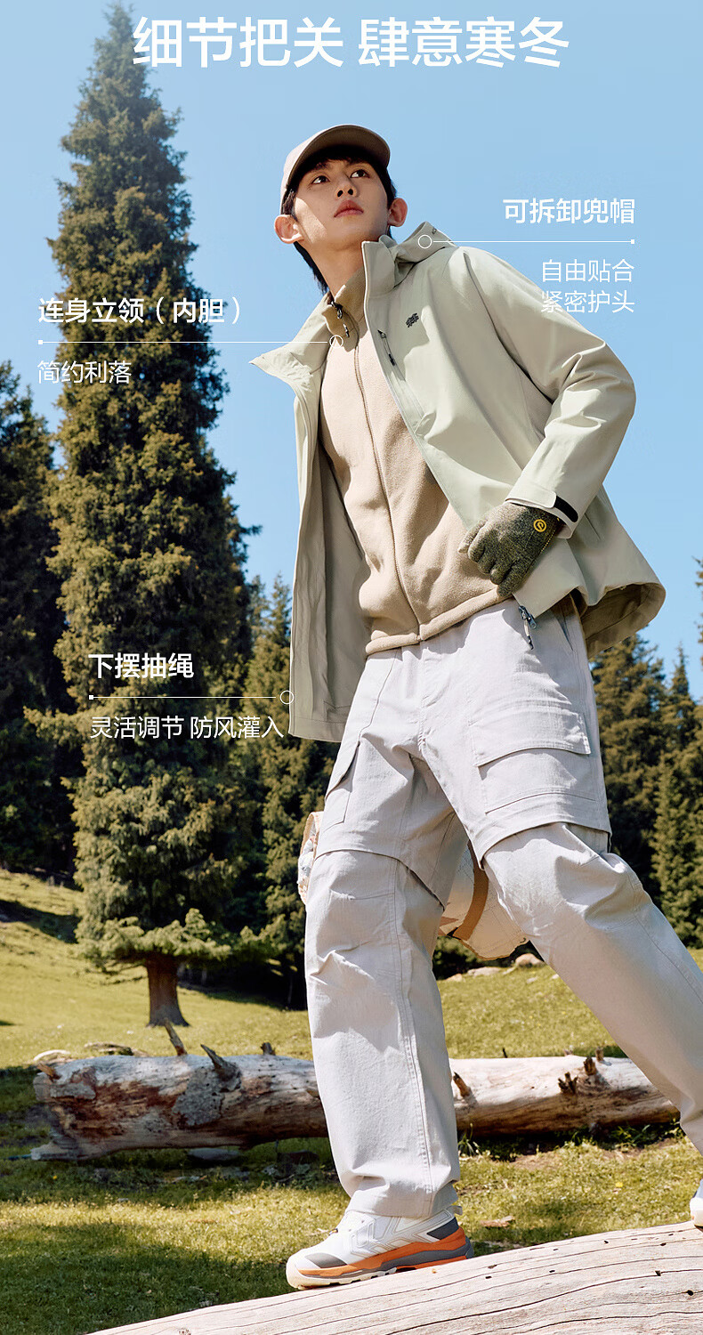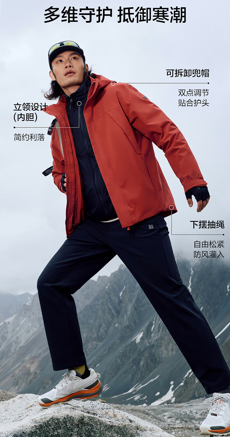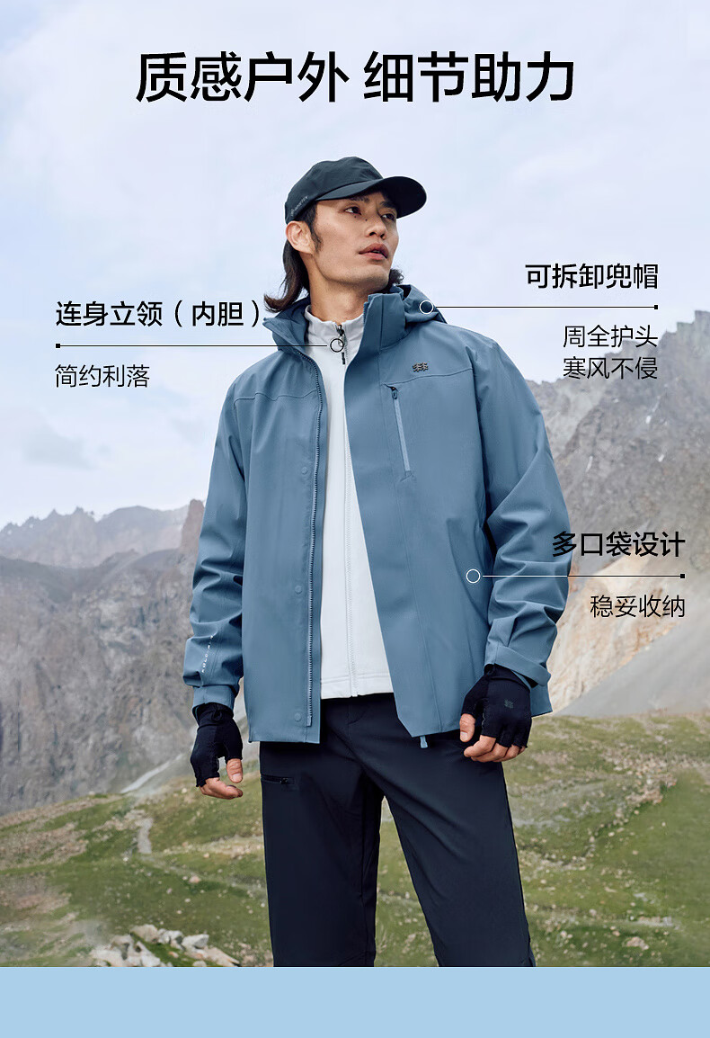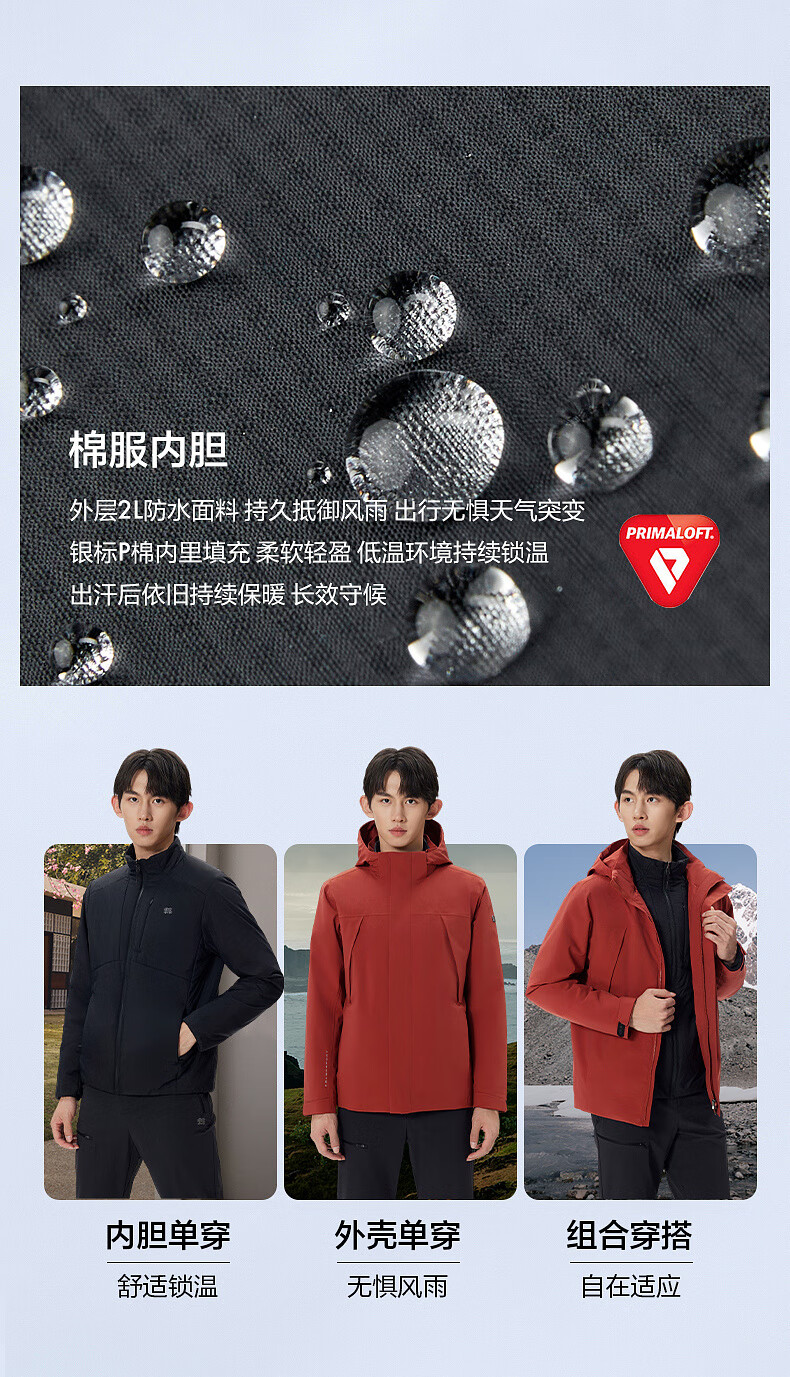 KOLON SPORT/Kolon Soft Shell Three-in-One Jacket Men's Water-Repellent and Windproof Outdoor Jacket Level 2 LHJK5WNT13-BK Black Down Liner XL 180/100A