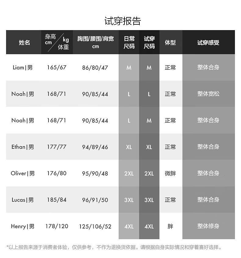 China (cm) 165 / 88-90 170 / 96-98 175 / 108-110 180 / 118-122 185 / 126-130
