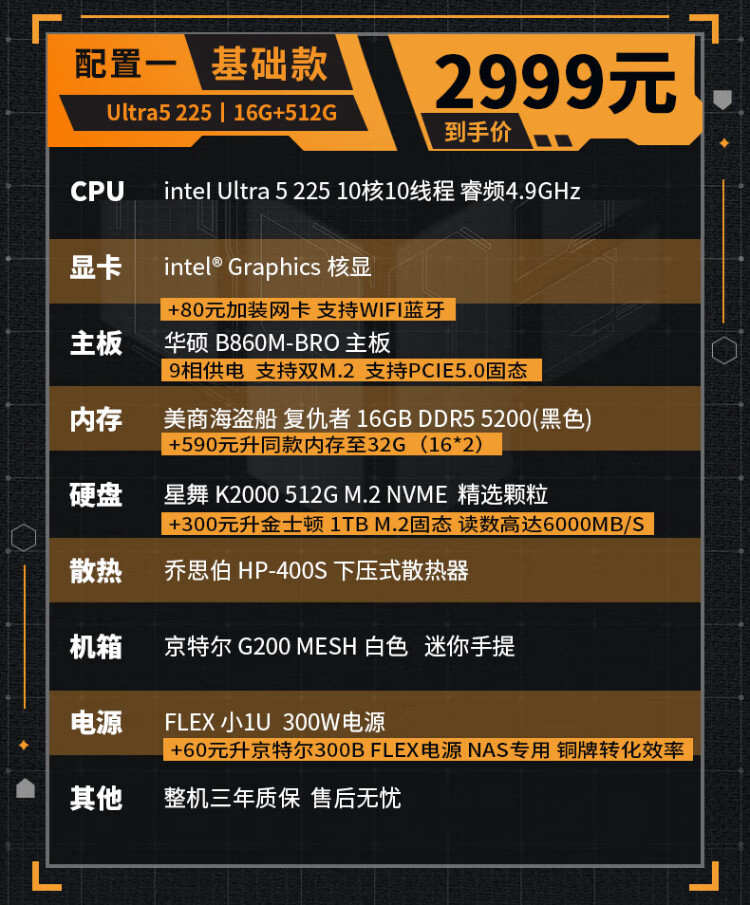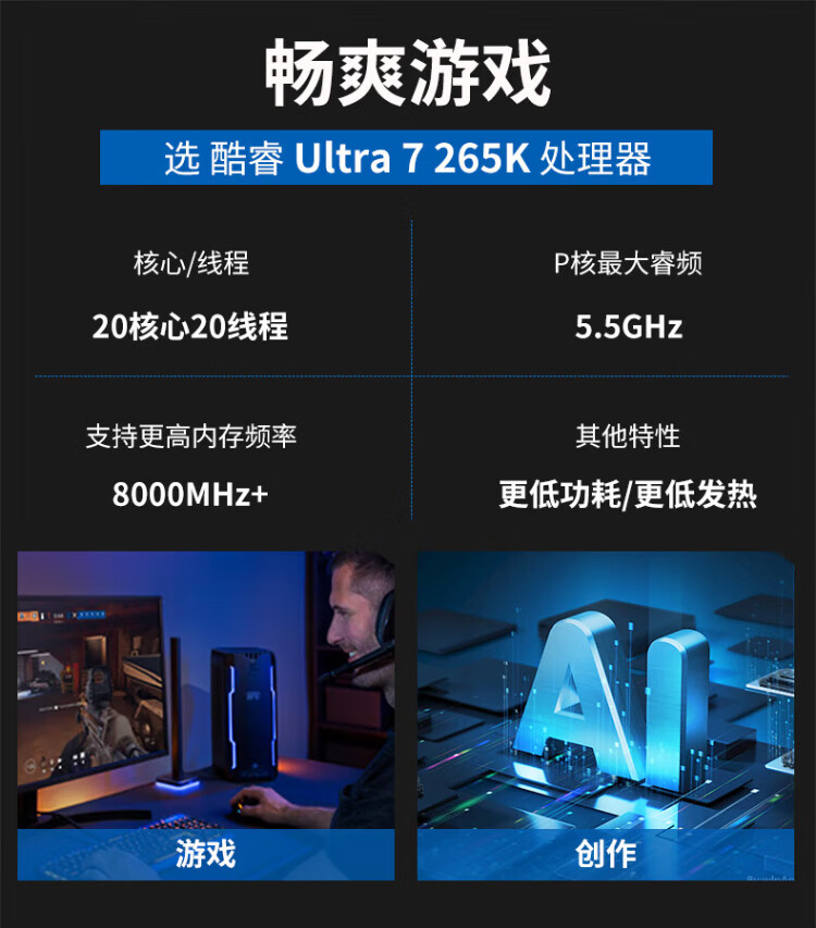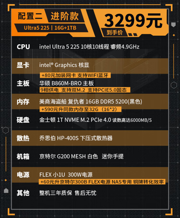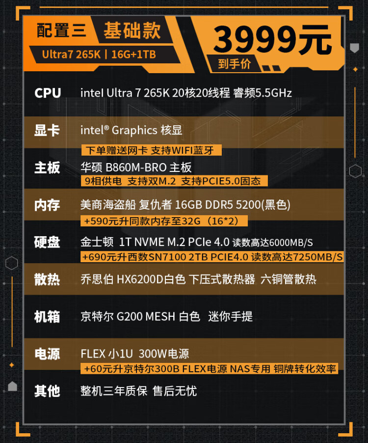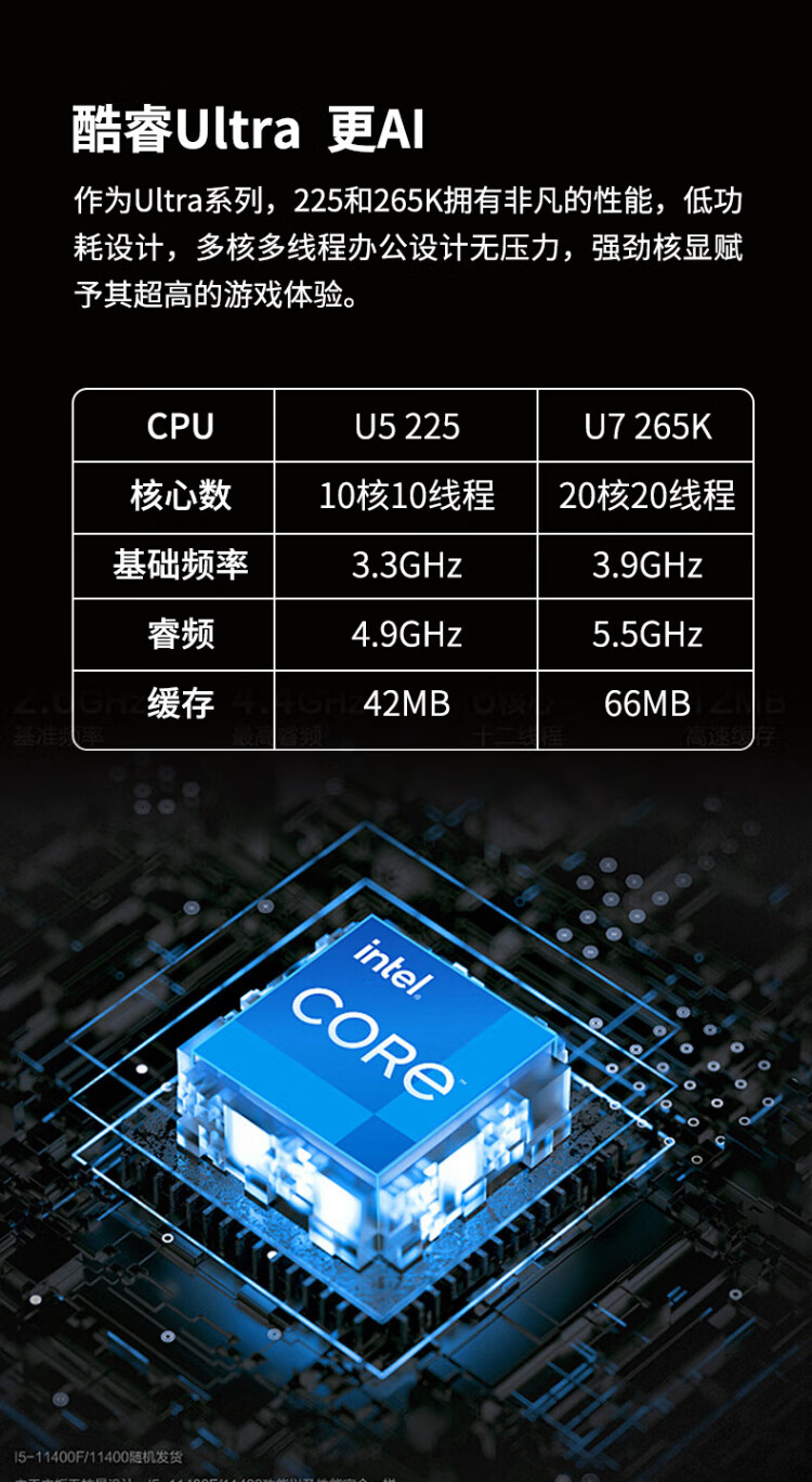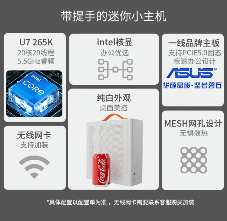 ASUS intel Ultra7 265K/225 mini ITX desktop assembly computer host enterprise office home commercial e-sports game live rendering design DIY complete machine Configuration 1丨U5 225丨16G+512G
