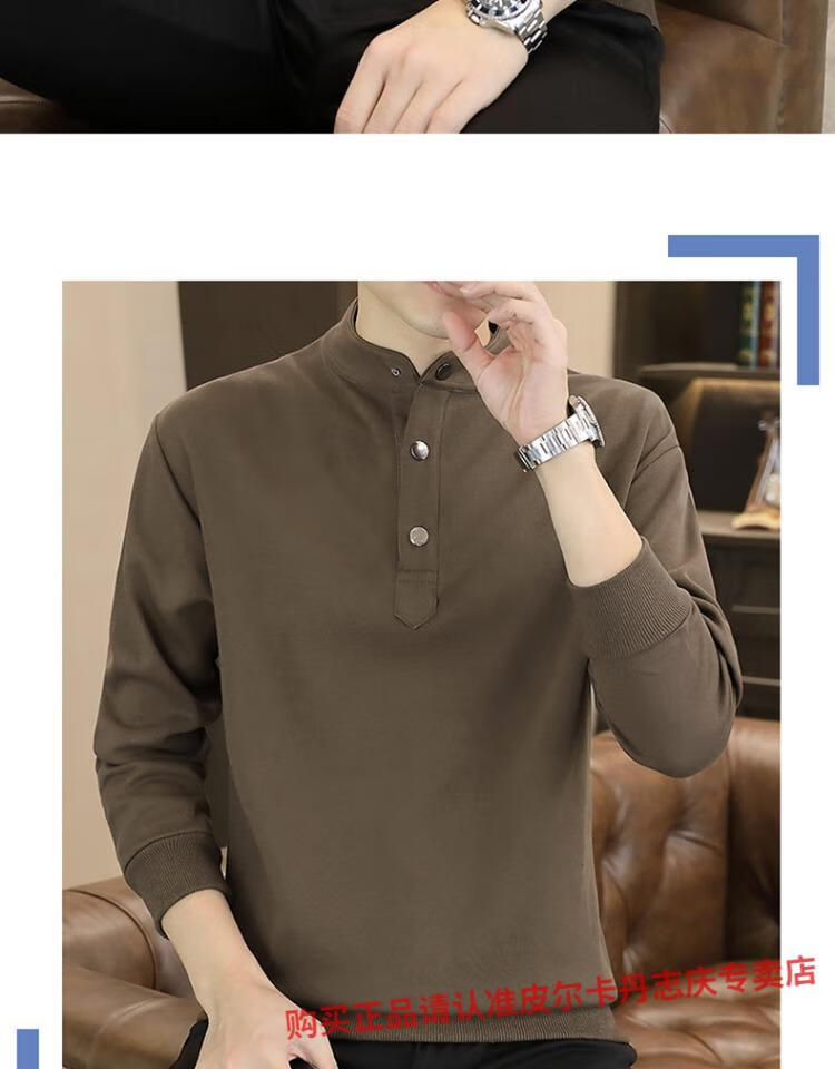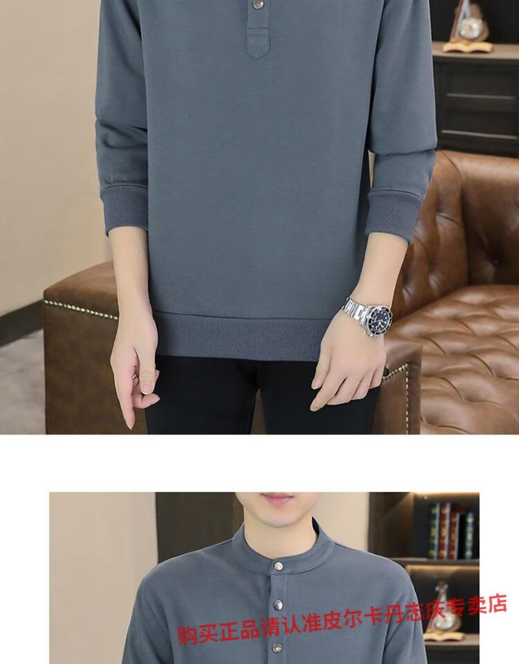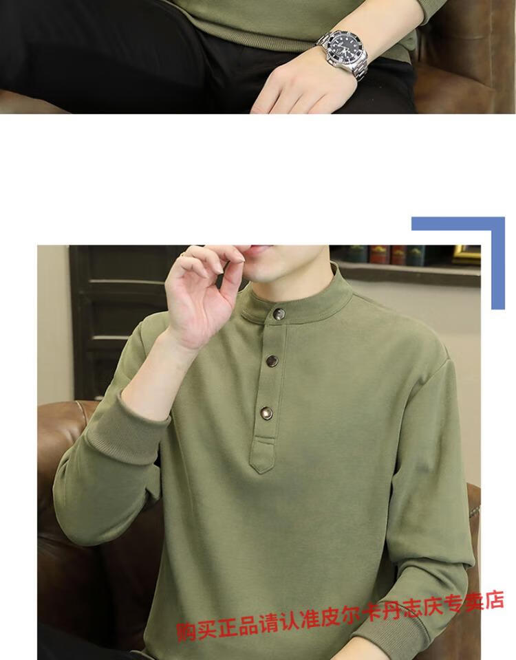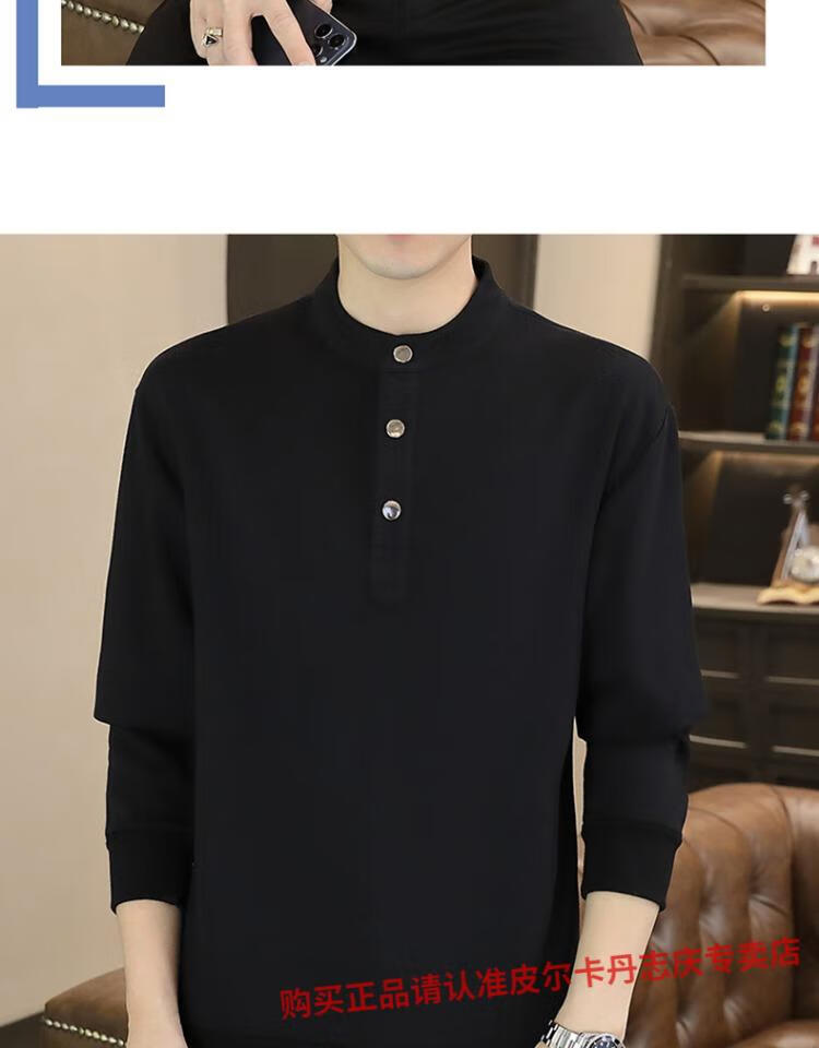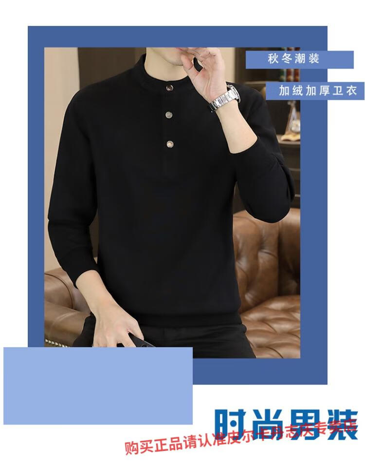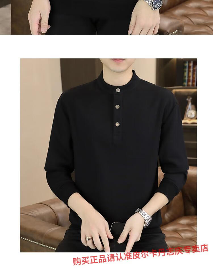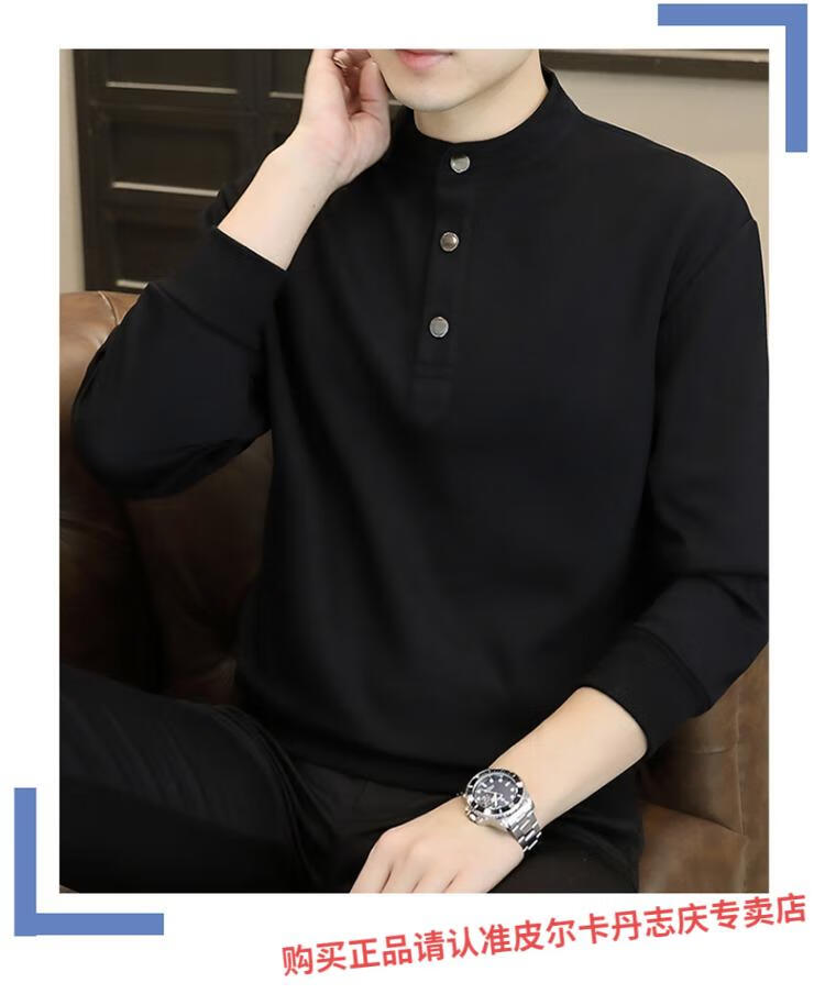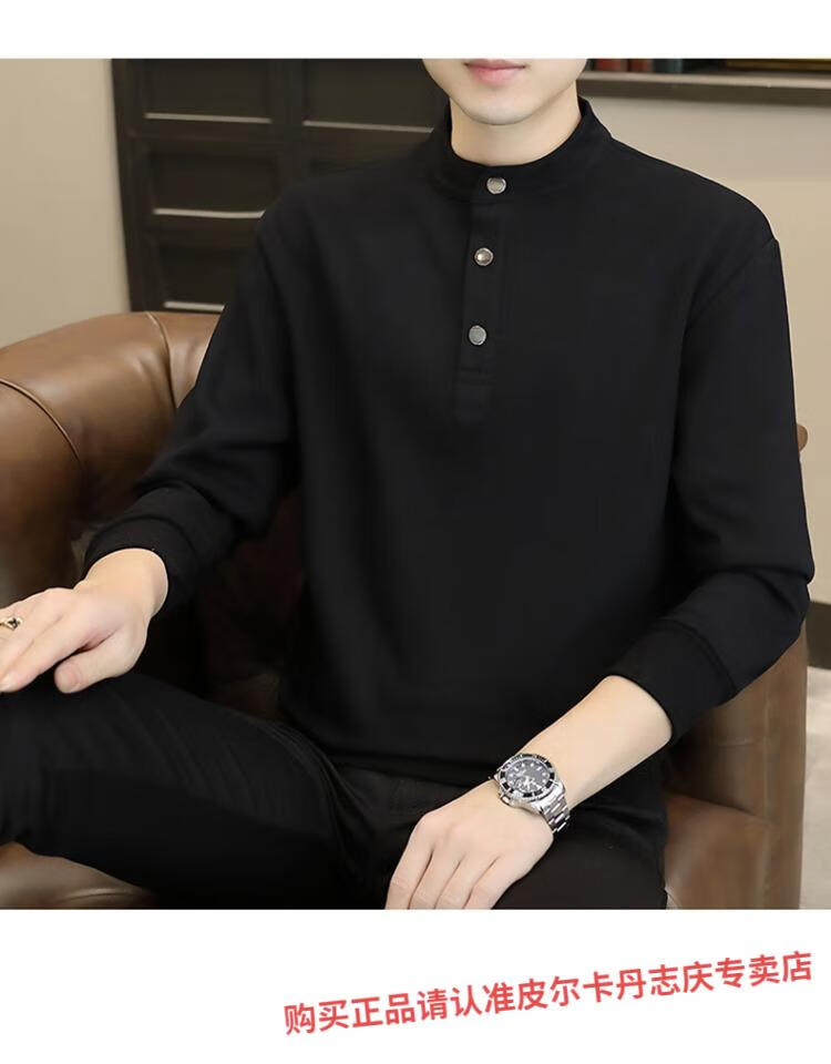Pierre Cardin stand collar sweatshirt men's spring and autumn trendy Henry collar Polo shirt trendy brand casual men's pullover long-sleeved bottoming shirt WY2288 black style regular XL