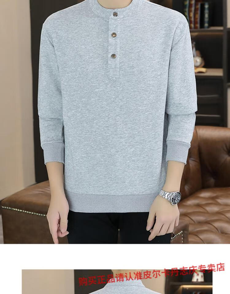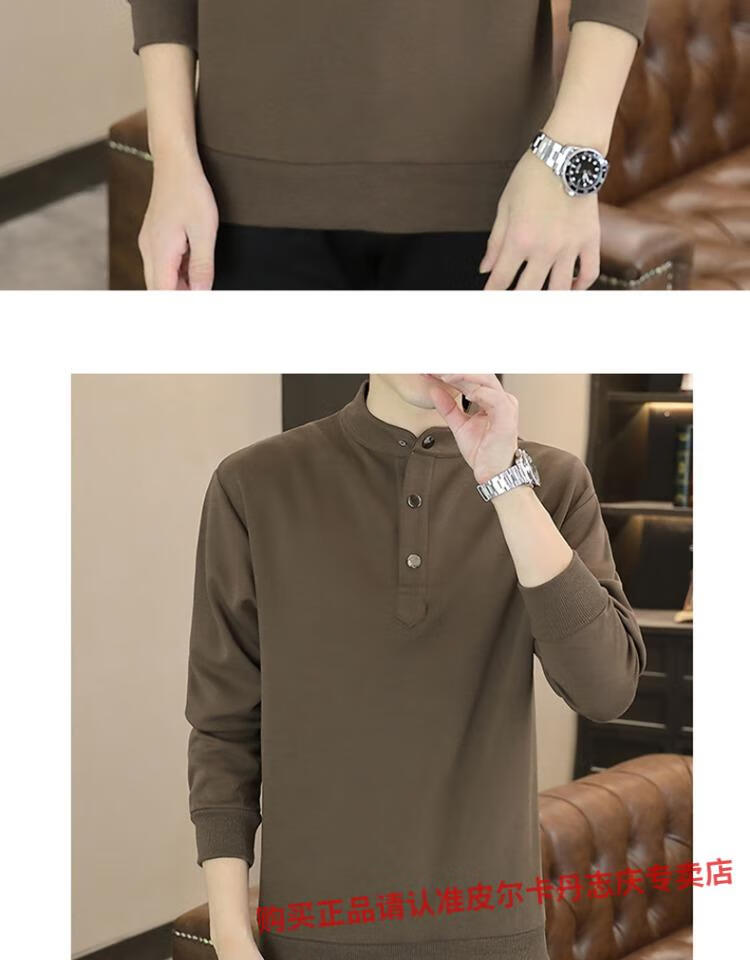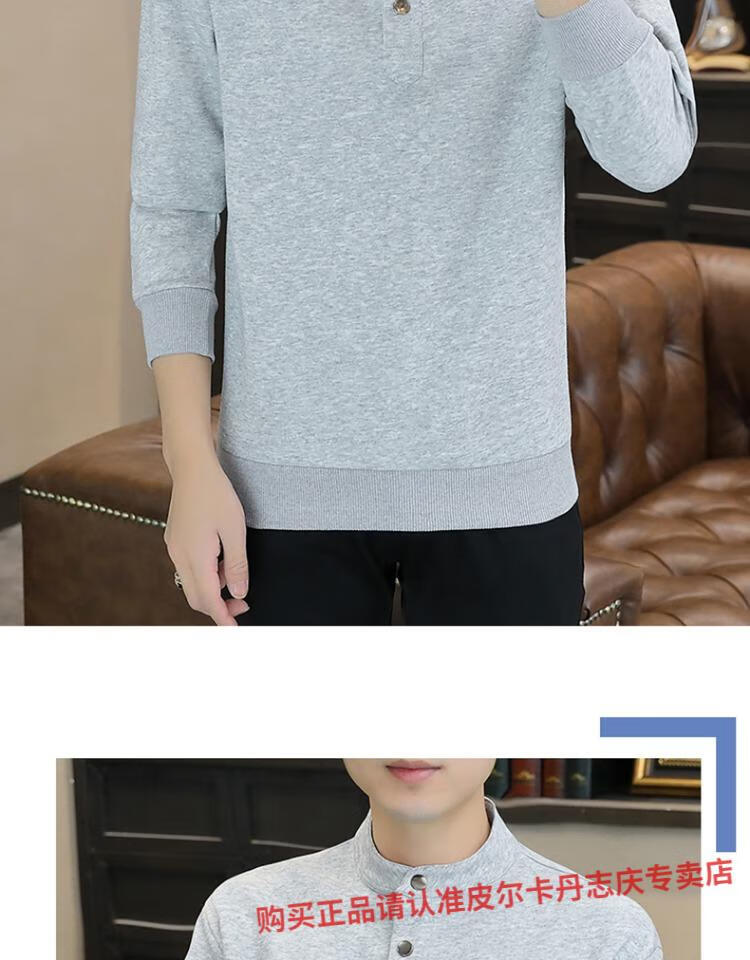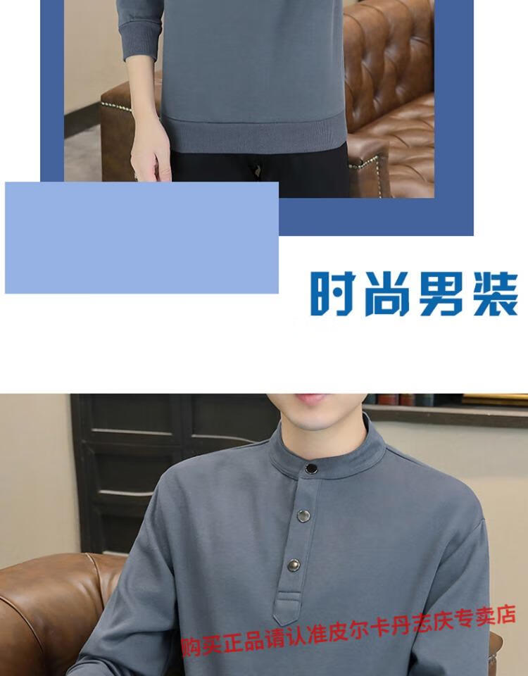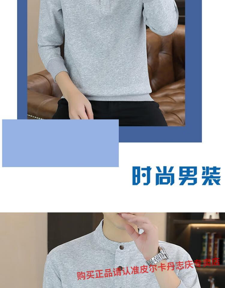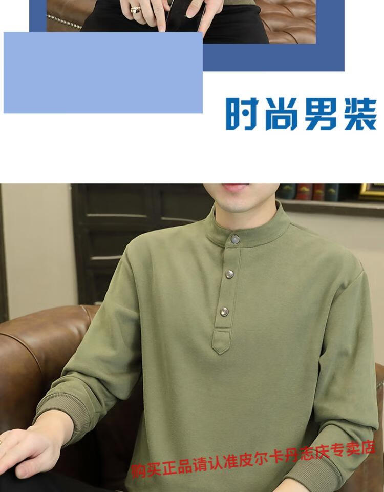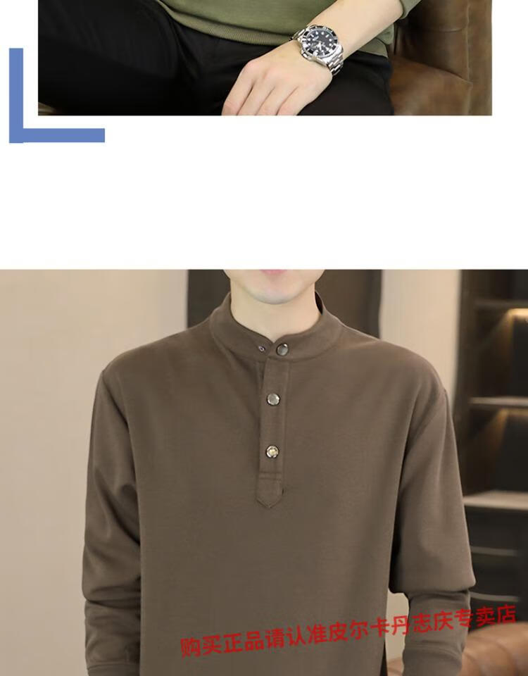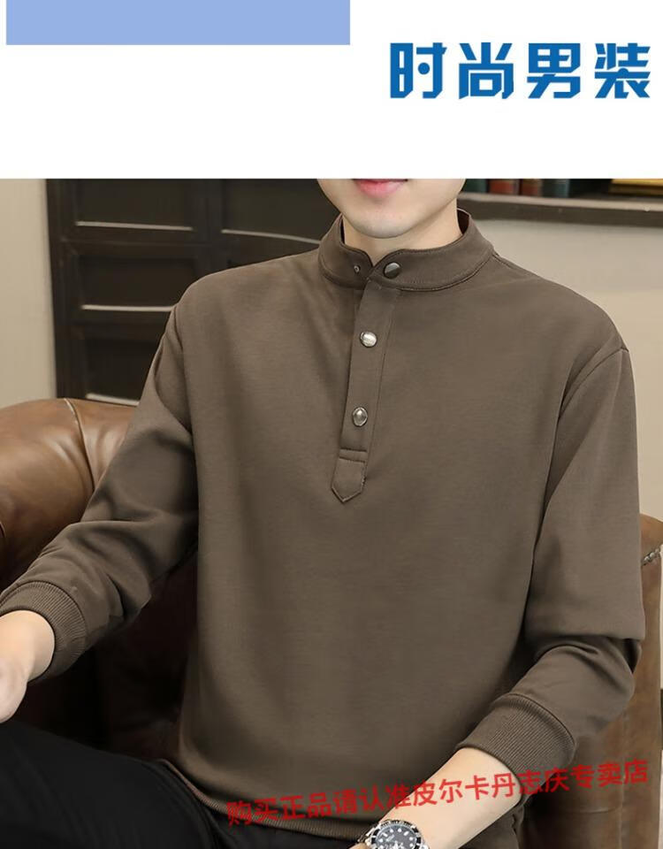 Pierre Cardin stand collar sweatshirt men's spring and autumn trendy Henry collar Polo shirt trendy brand casual men's pullover long-sleeved bottoming shirt WY2288 black style regular XL
