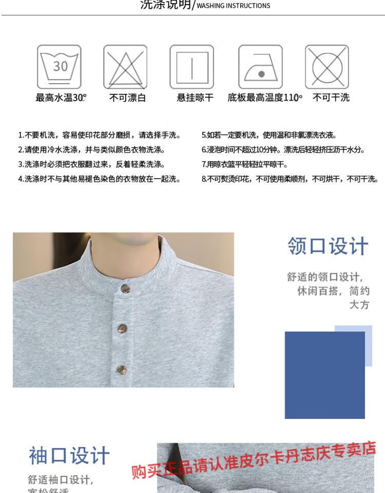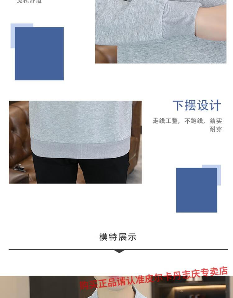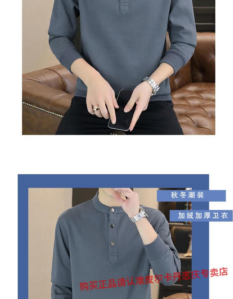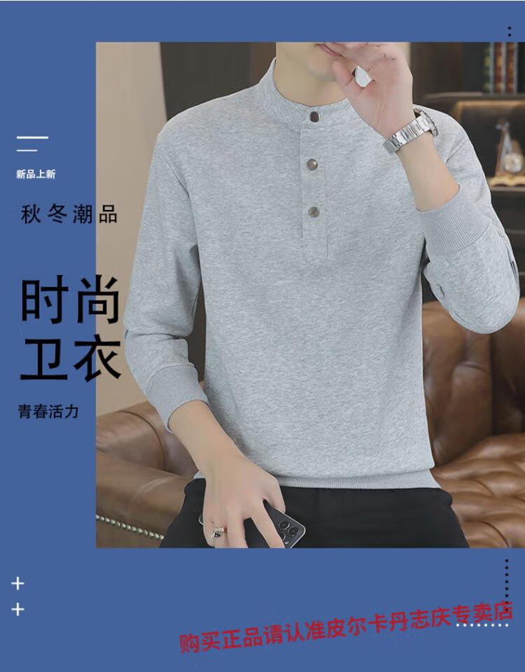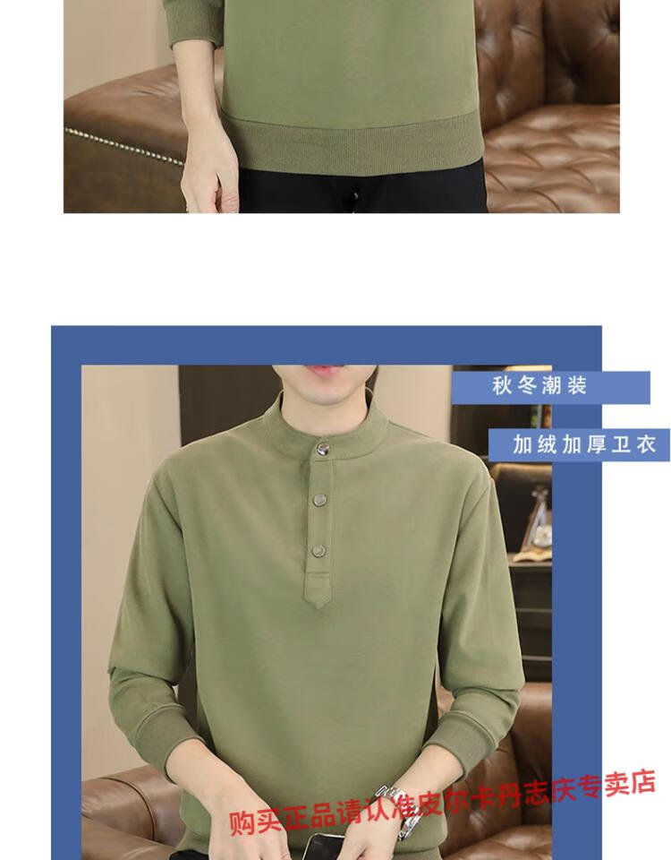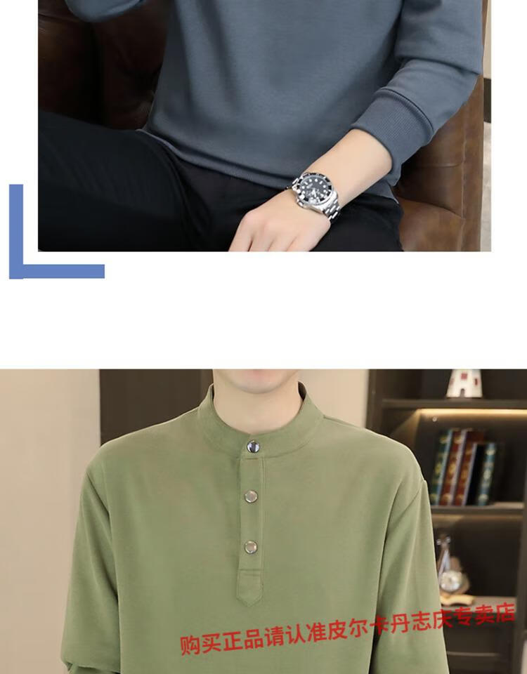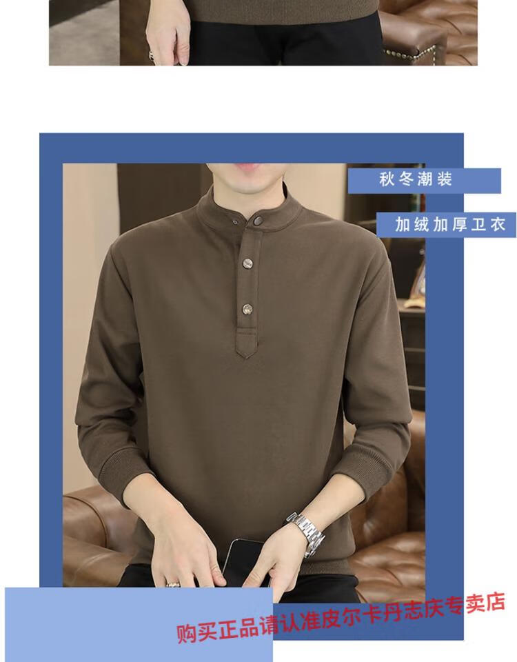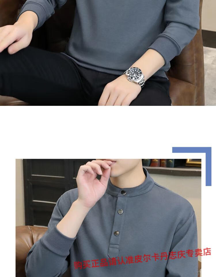 Pierre Cardin stand collar sweatshirt men's spring and autumn trendy Henry collar Polo shirt trendy brand casual men's pullover long-sleeved bottoming shirt WY2288 black style regular XL