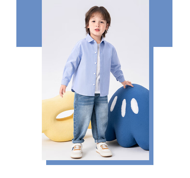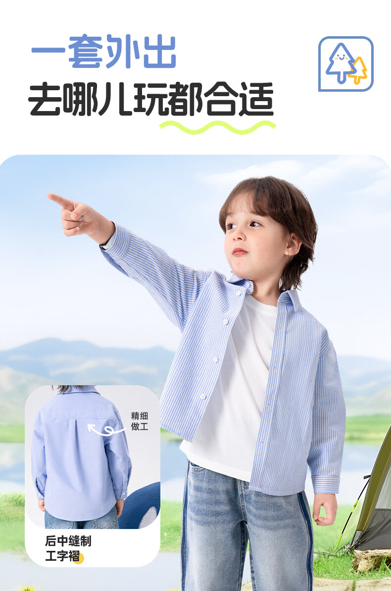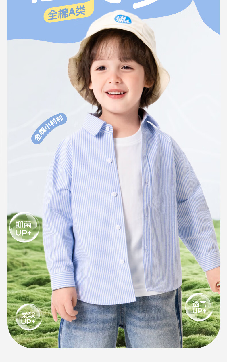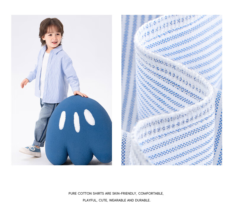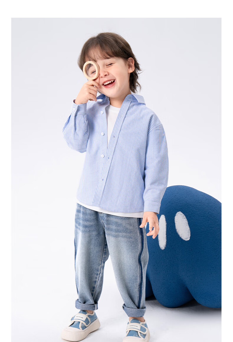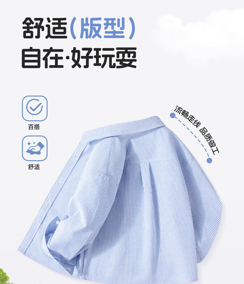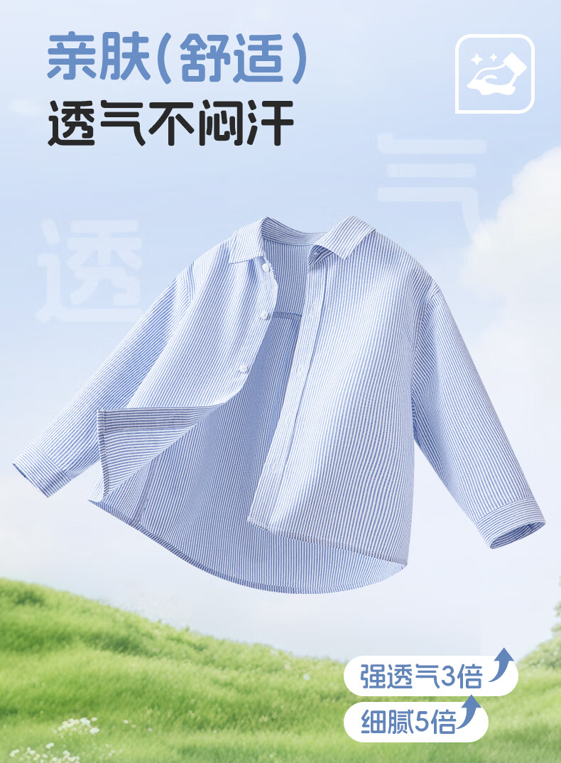 Baleno children's clothing children's shirt boys' shirt long sleeve spring and autumn 2026 new pure cotton skin-friendly loose comfortable thin jacket blue strip 120