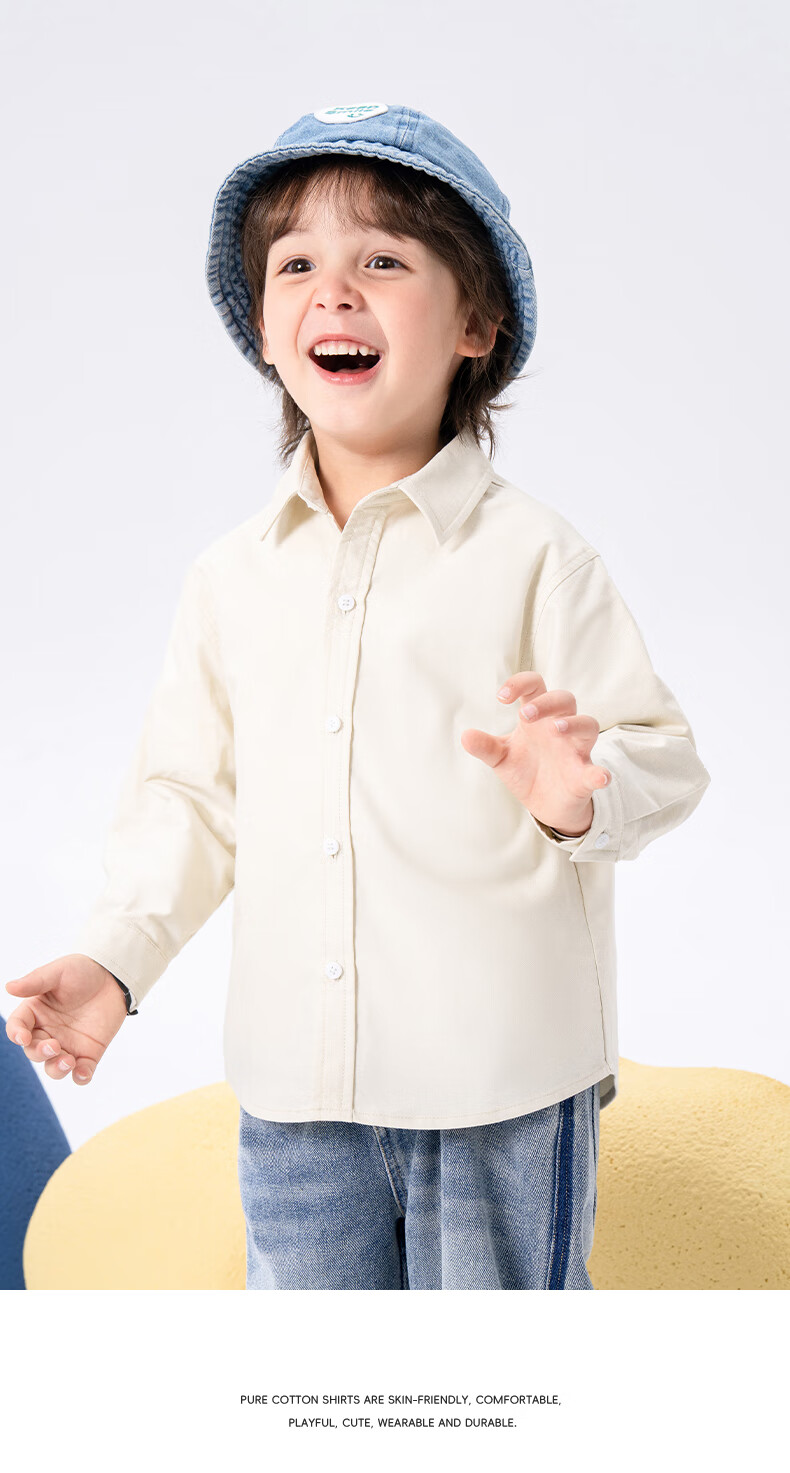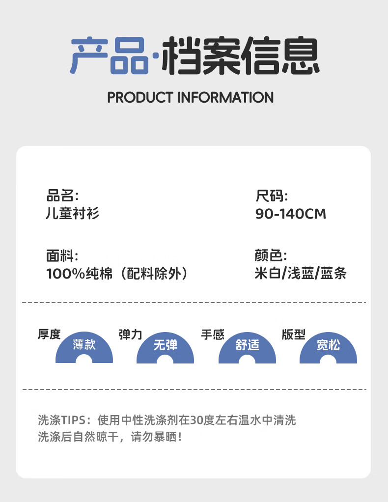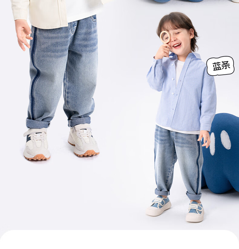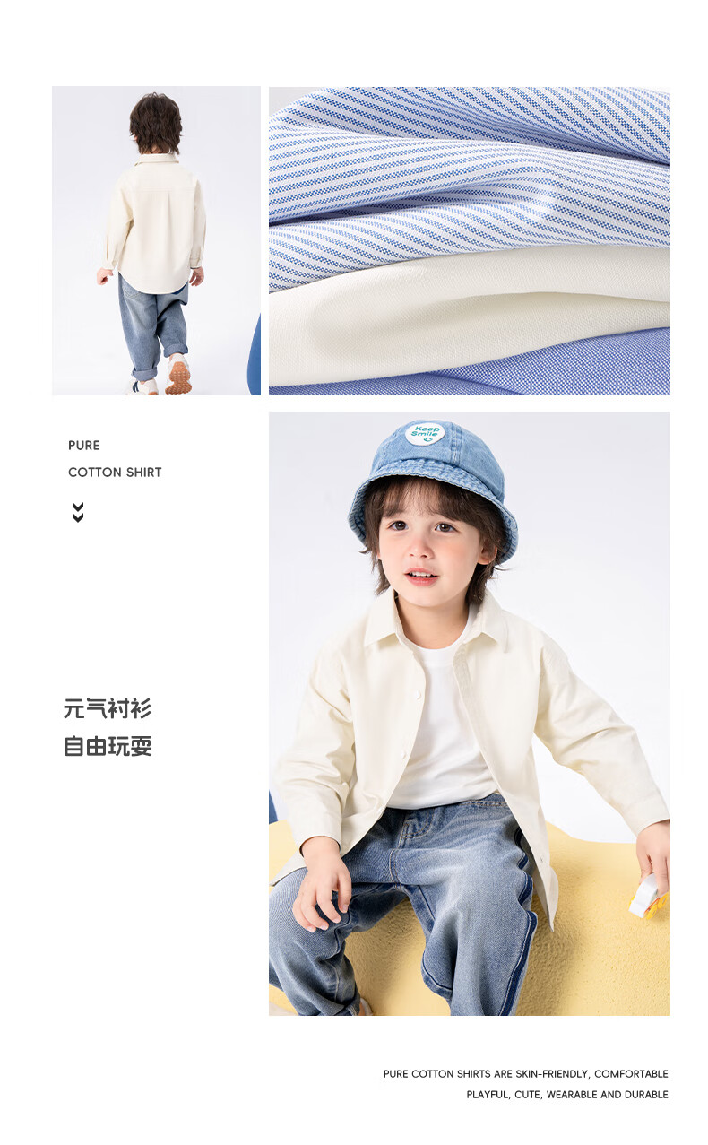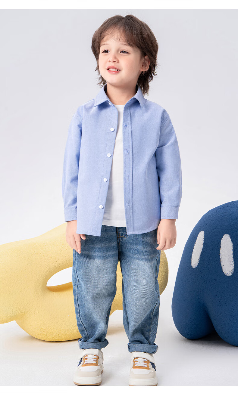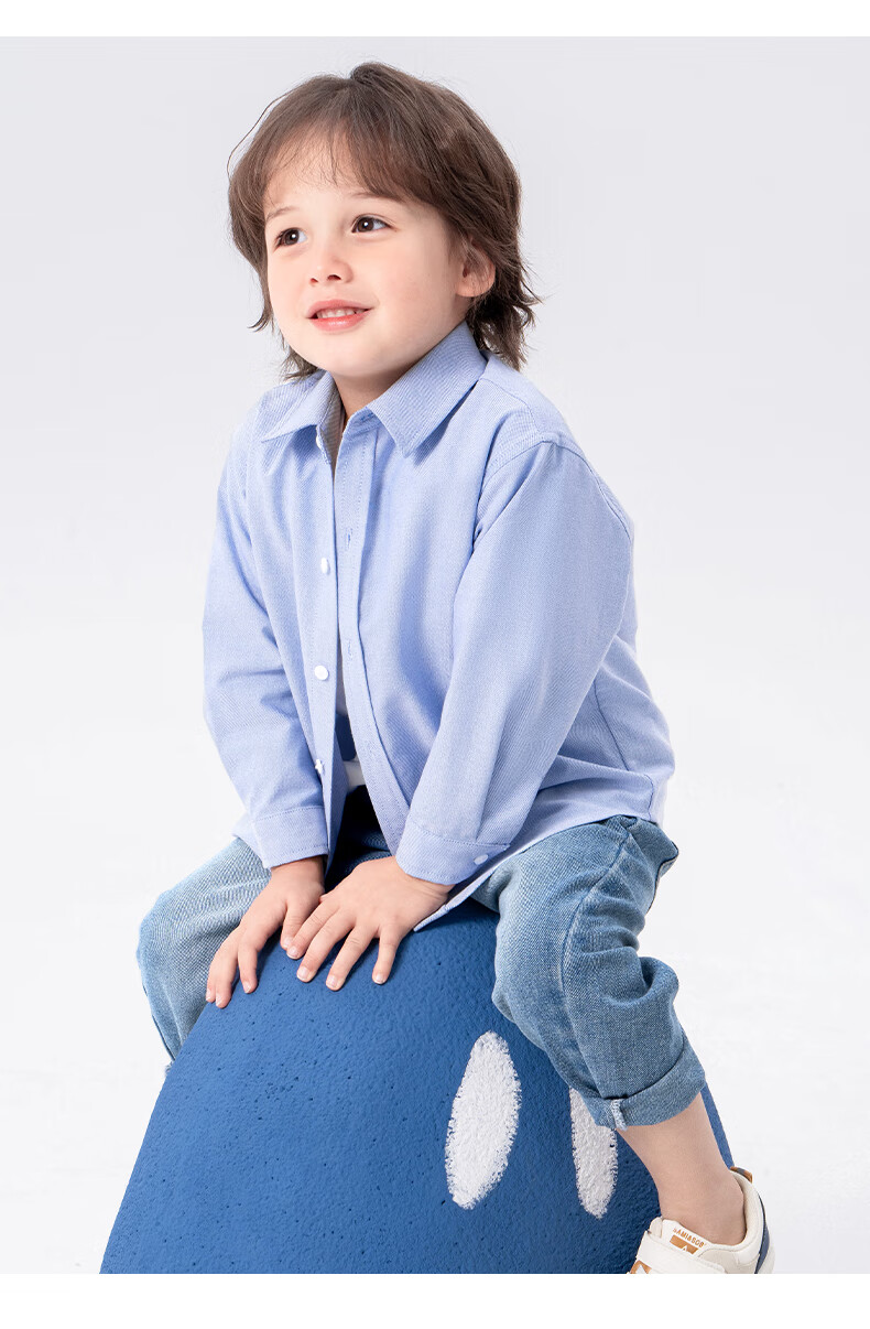 Baleno children's clothing children's shirt boys' shirt long sleeve spring and autumn 2026 new pure cotton skin-friendly loose comfortable thin jacket blue strip 120