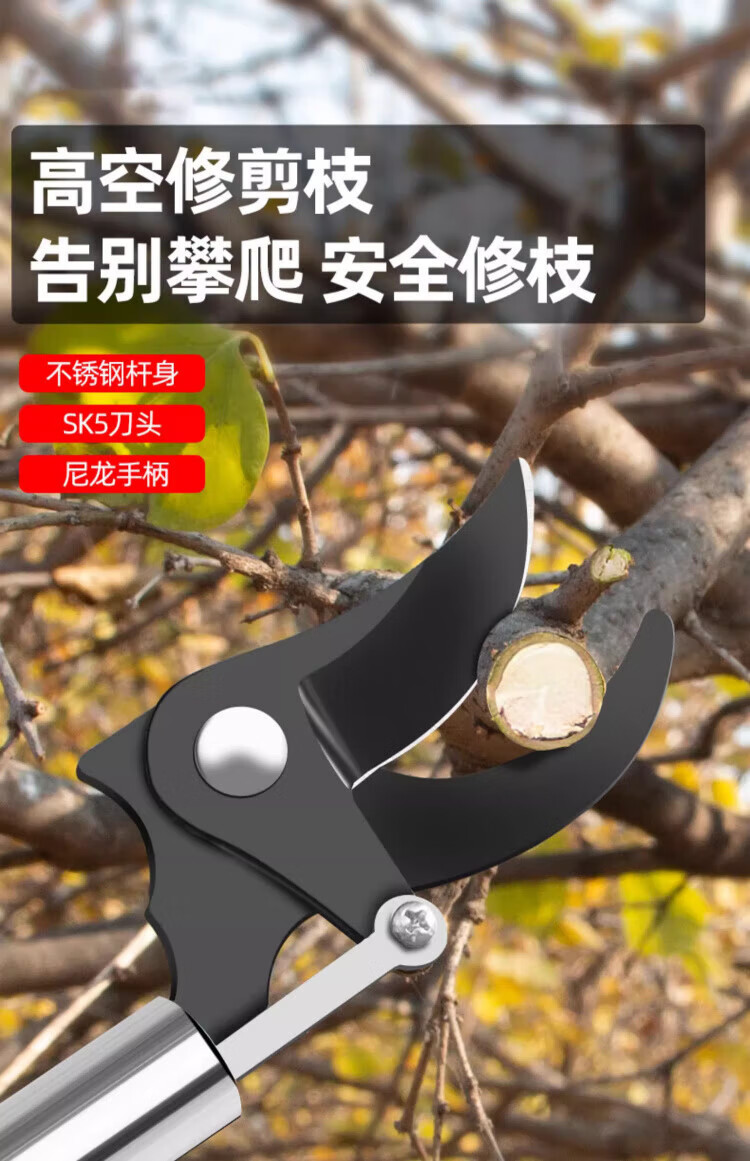 Mu Yunyao German high-altitude pruning shears telescopic pruning shears special for tree branches gardening fruit trees stainless steel thick branch extension high branch shears 1 meter upgraded stainless steel reinforced rod + folding
