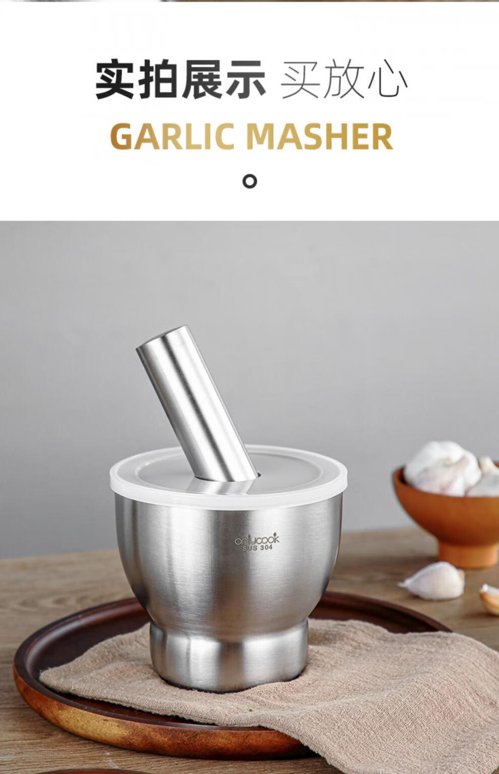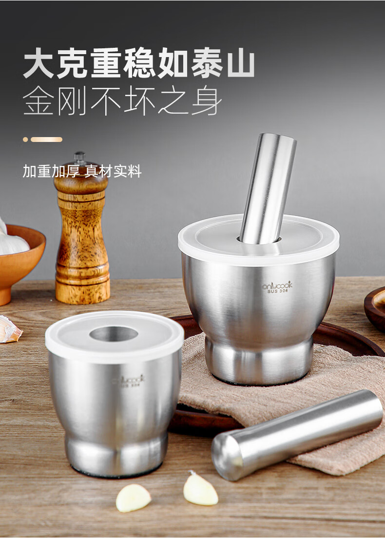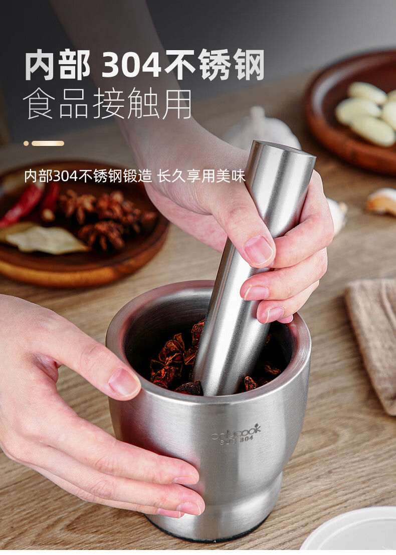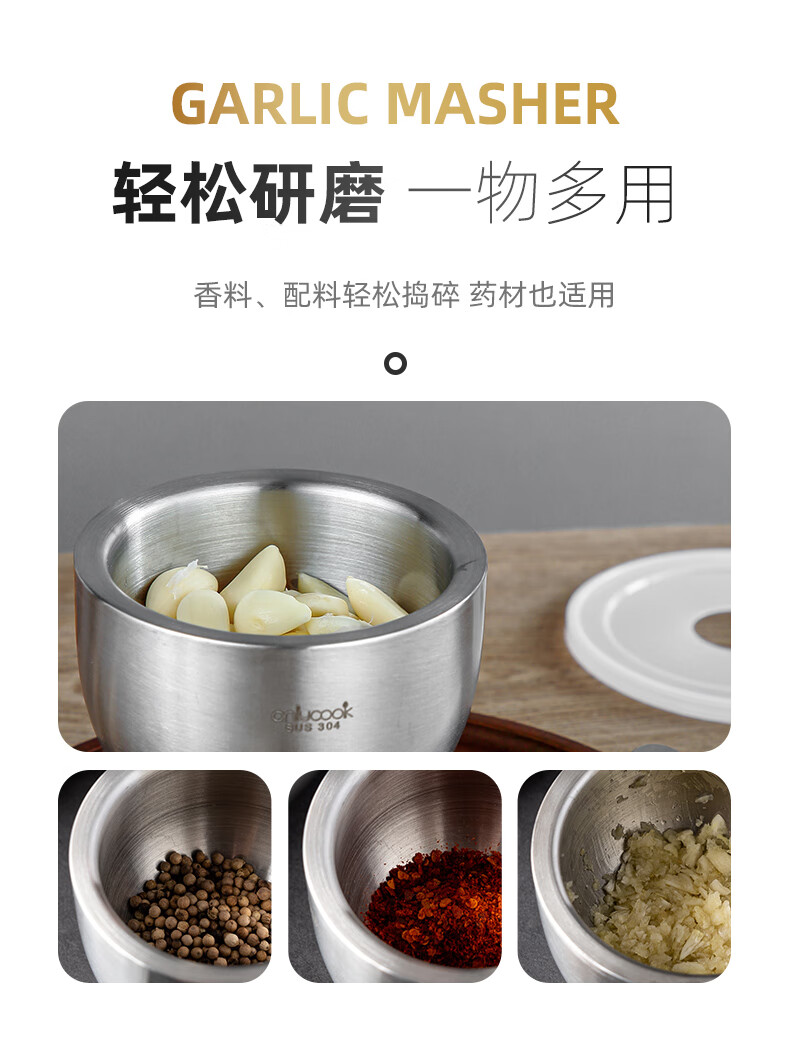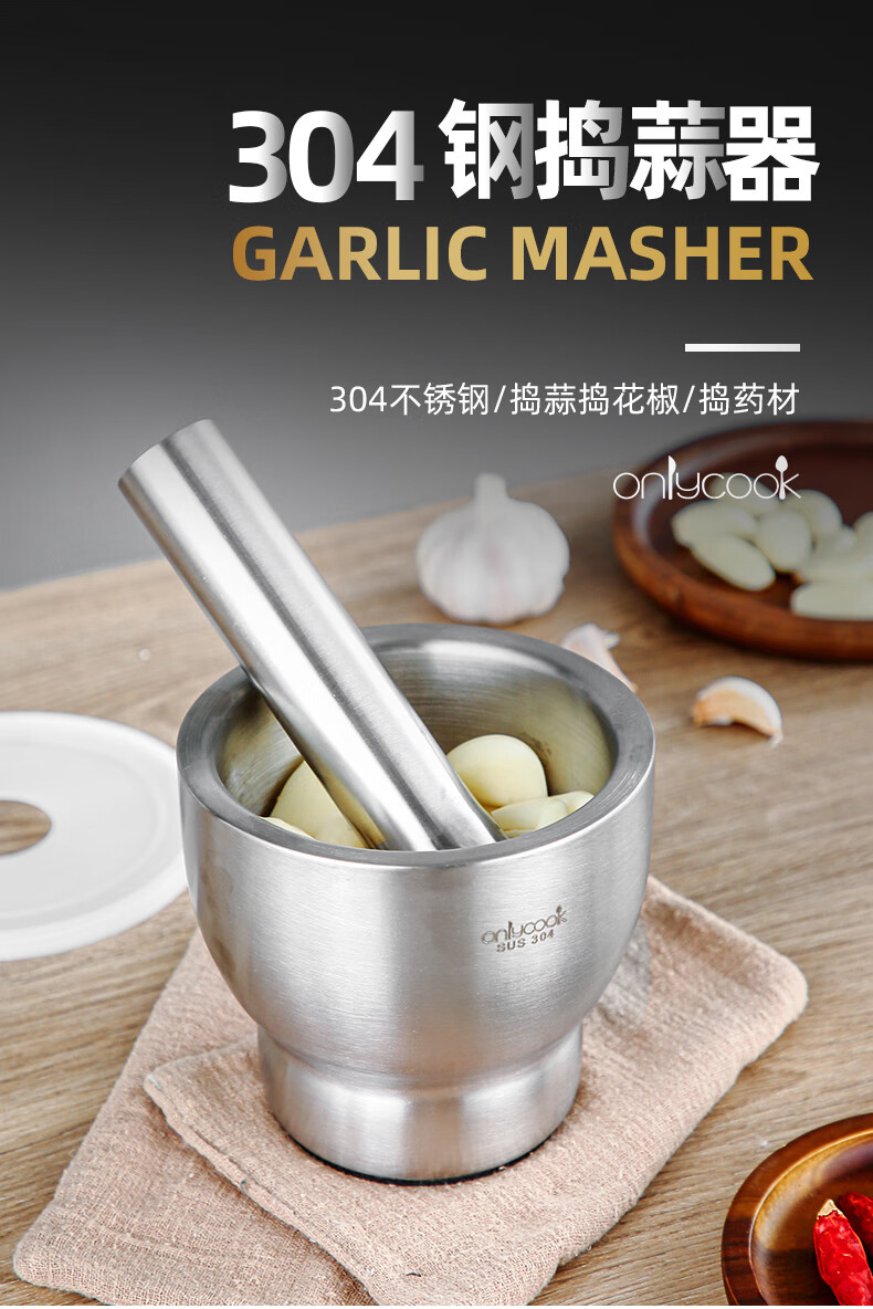 He Jiagong stainless steel garlic mortar household mashing artifact mortar mortar garlic pounder grinder mortar small / 304 stainless steel