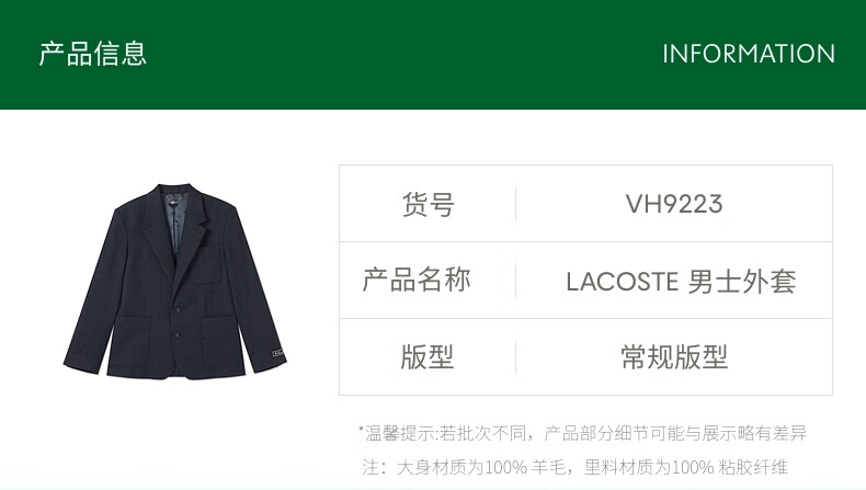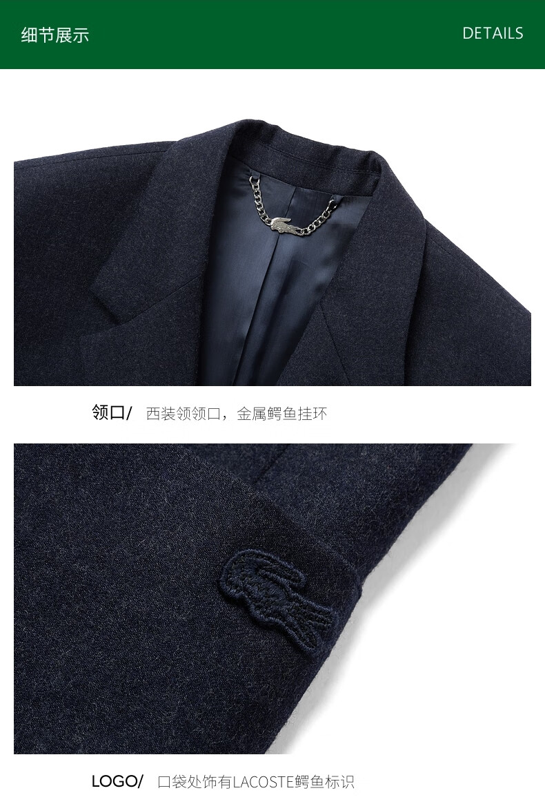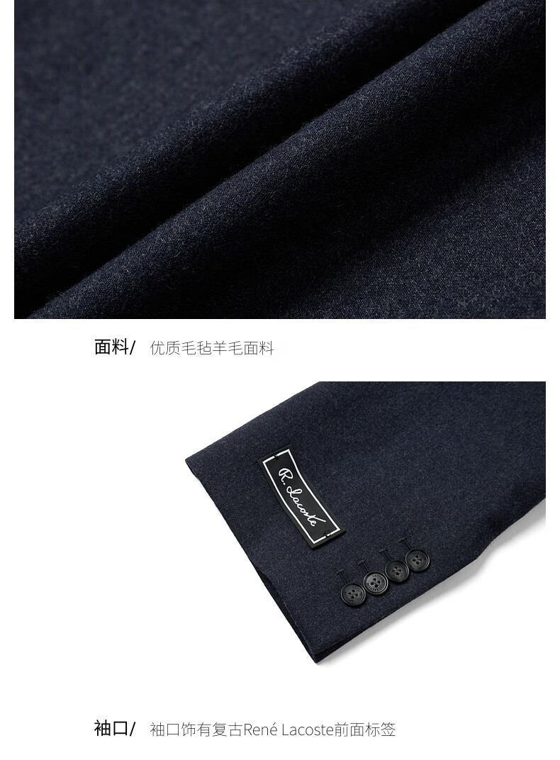 LACOSTE French Crocodile Men's 25 Autumn New Felt Wool Suit Jacket|VH9223 725/Dark Mist Blue 48 S/M
