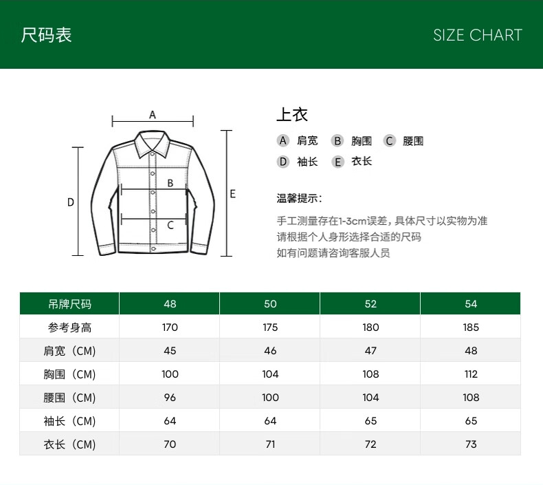 China (cm) 165 / 88-90 170 / 96-98 175 / 108-110 180 / 118-122 185 / 126-130