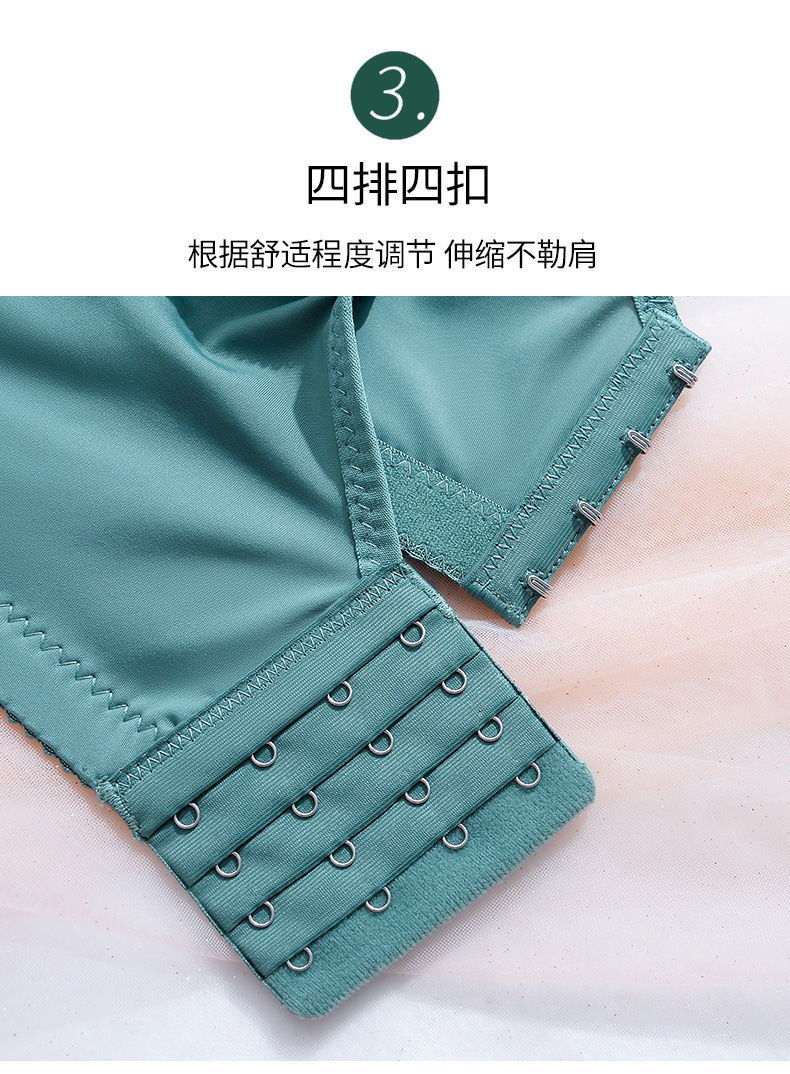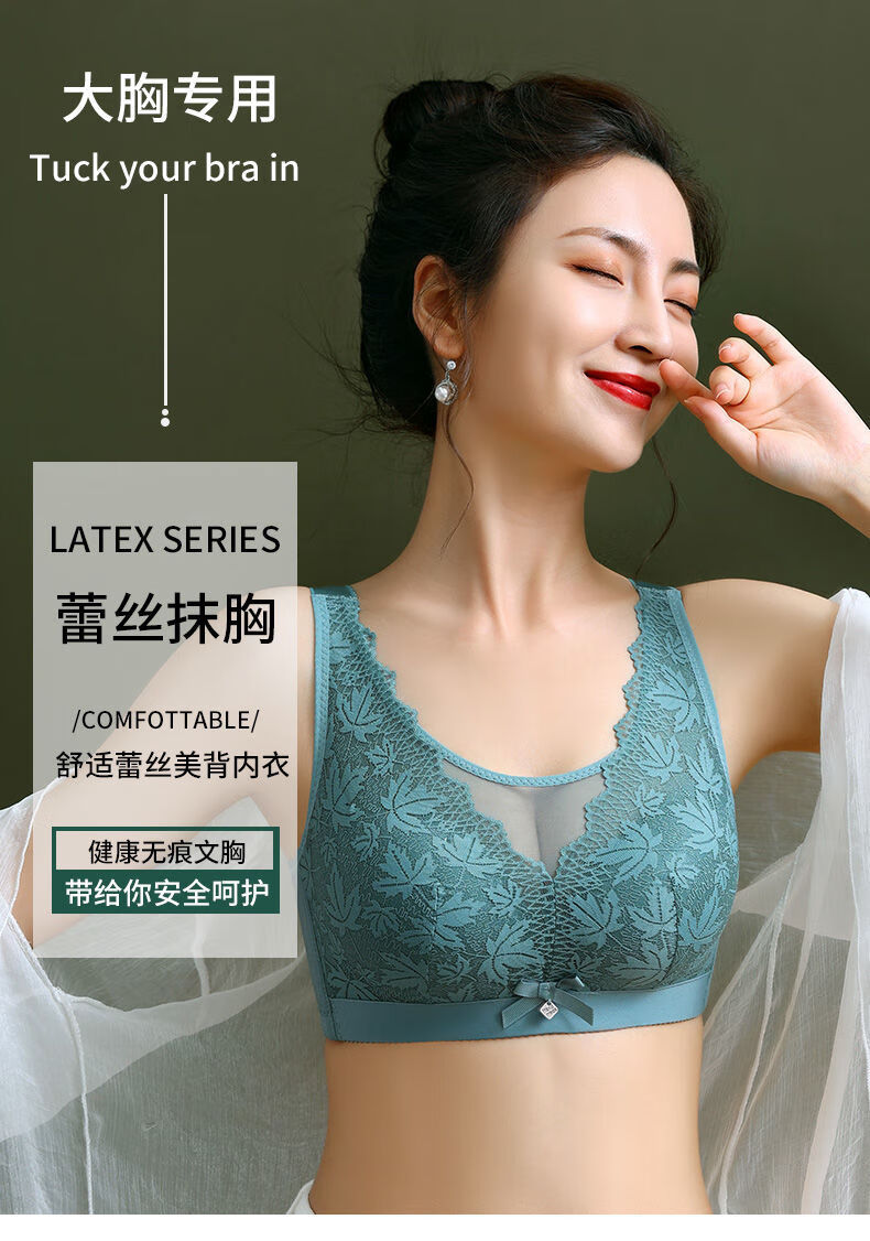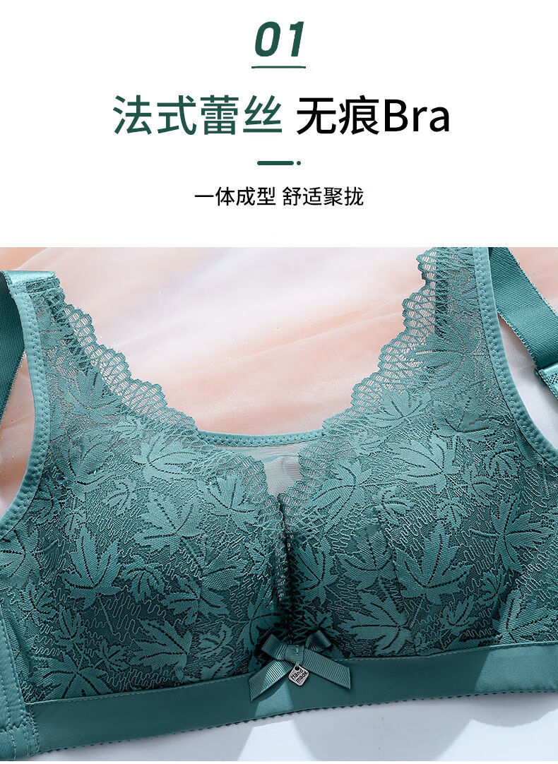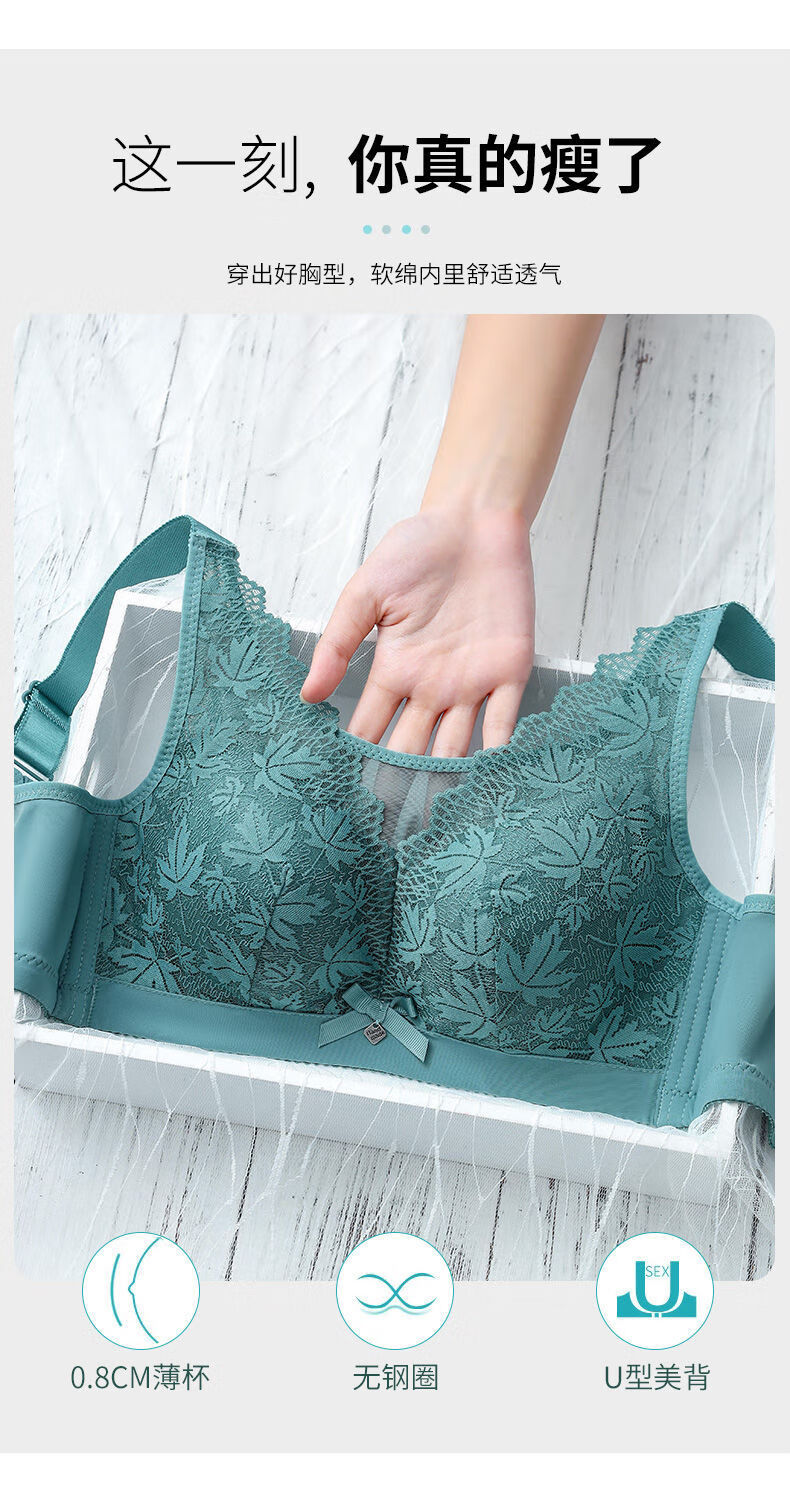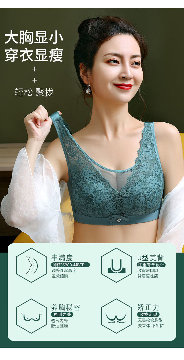 Modal Large Size Thin Large Breast Revealing Small Underwear Women's No Wires Gathering Secondary Breasts Anti-Sagging Strap Top Lace Bra Green + Black (Two-piece Discount Pack) One Size 44/100D