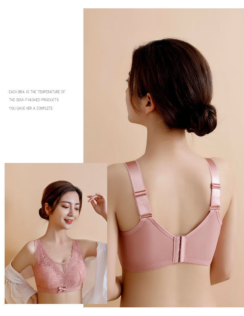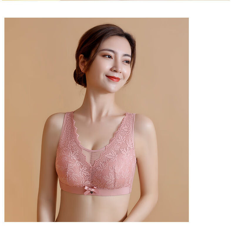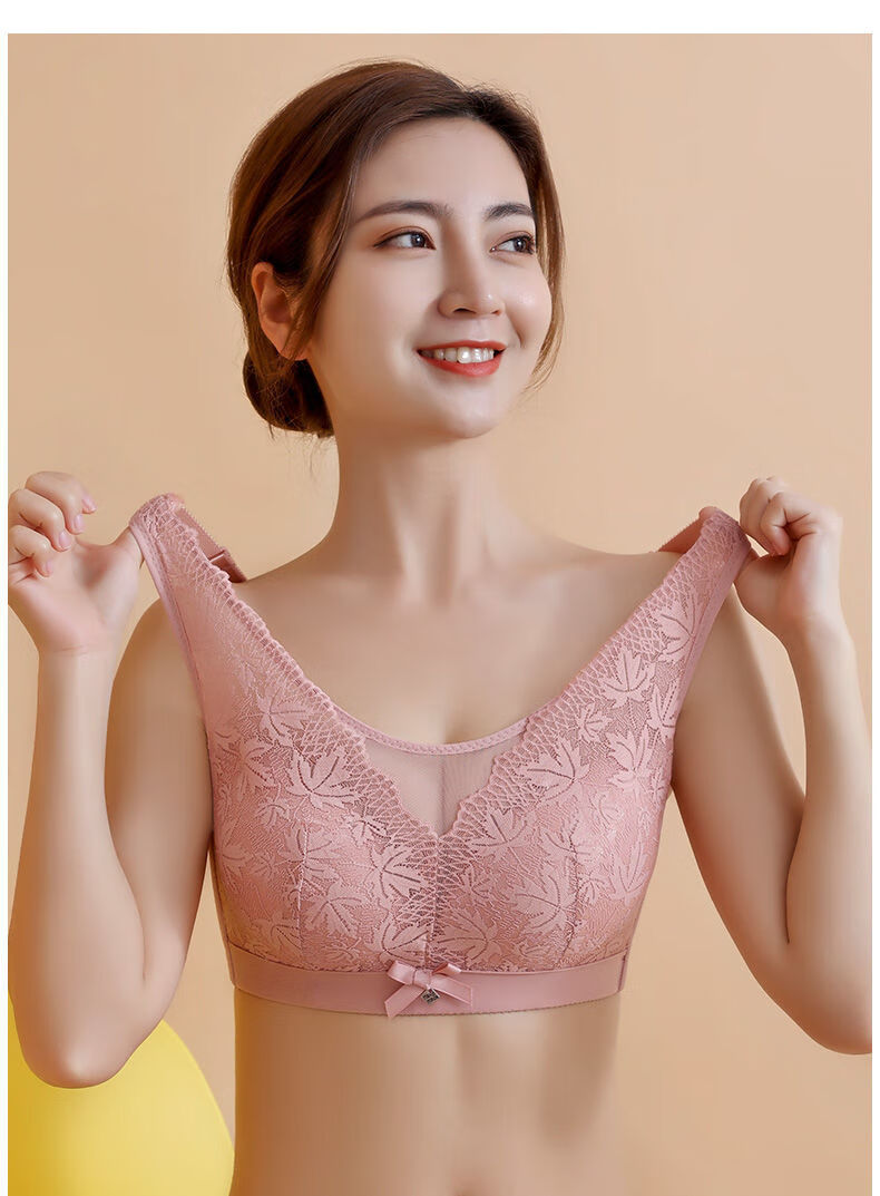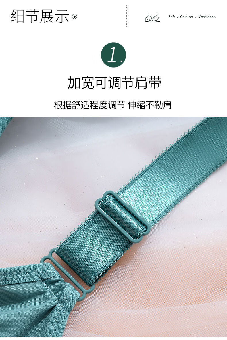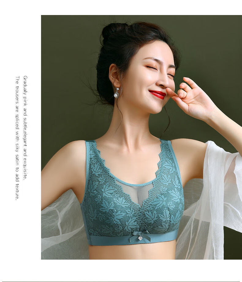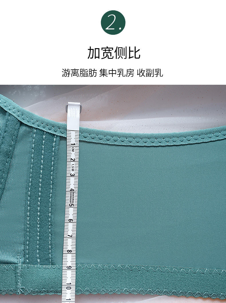 Modal Large Size Thin Large Breast Revealing Small Underwear Women's No Wires Gathering Secondary Breasts Anti-Sagging Strap Top Lace Bra Green + Black (Two-piece Discount Pack) One Size 44/100D