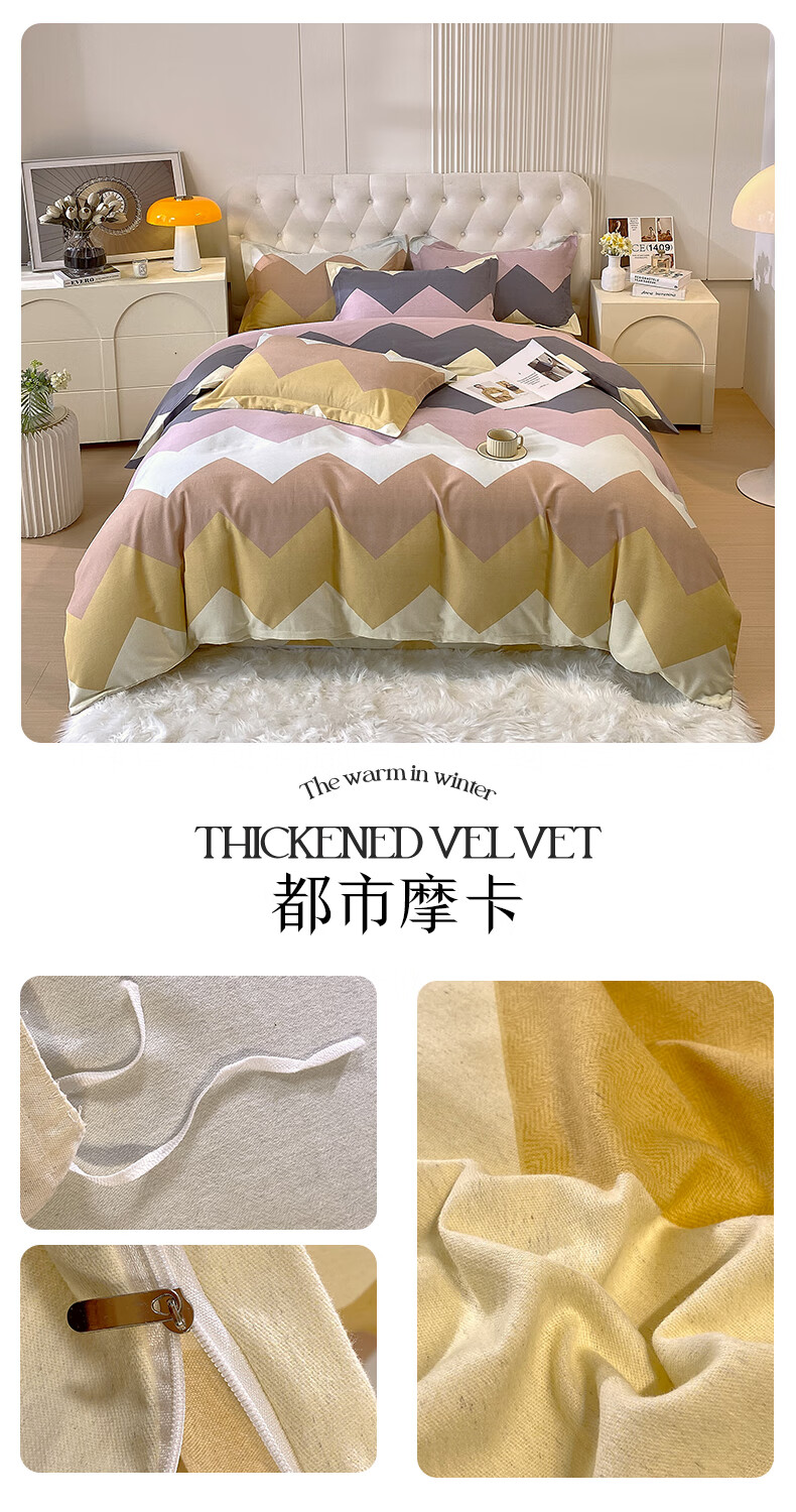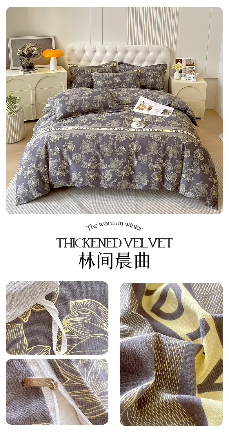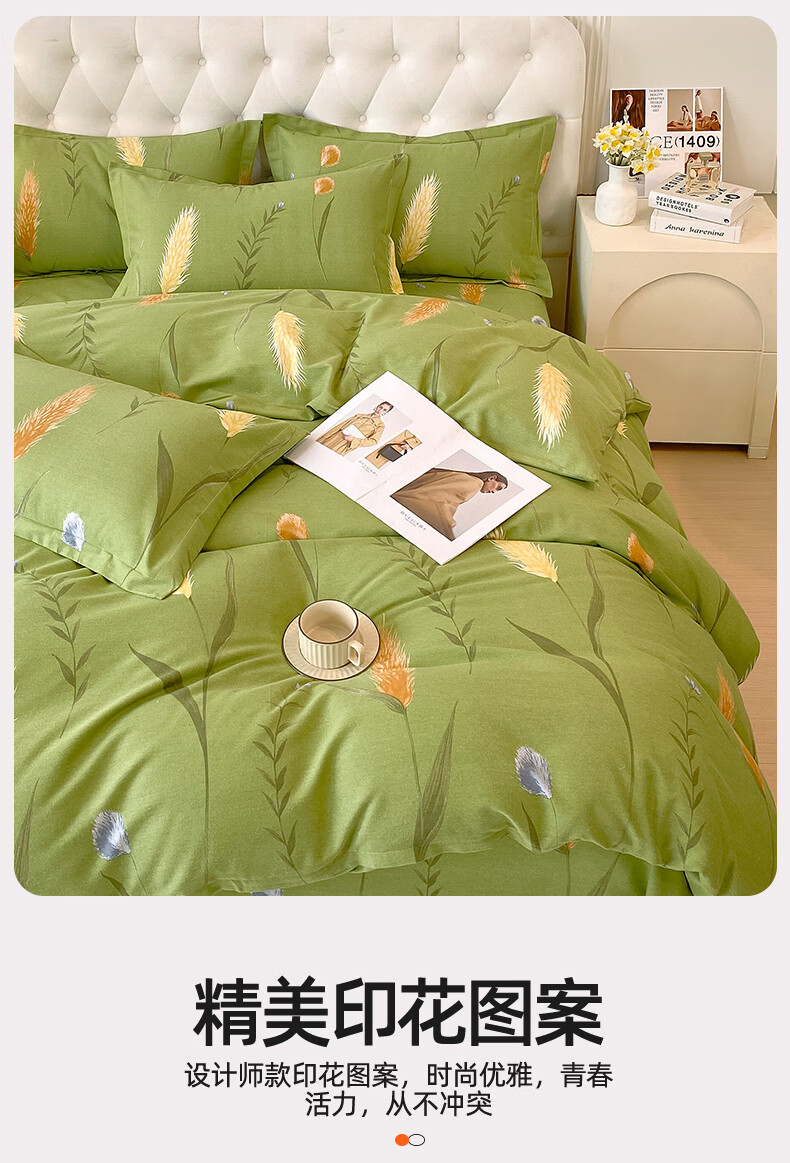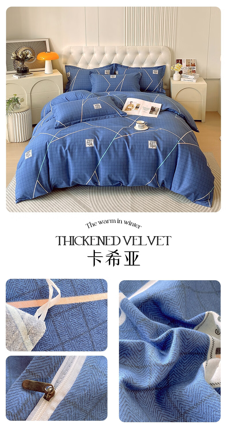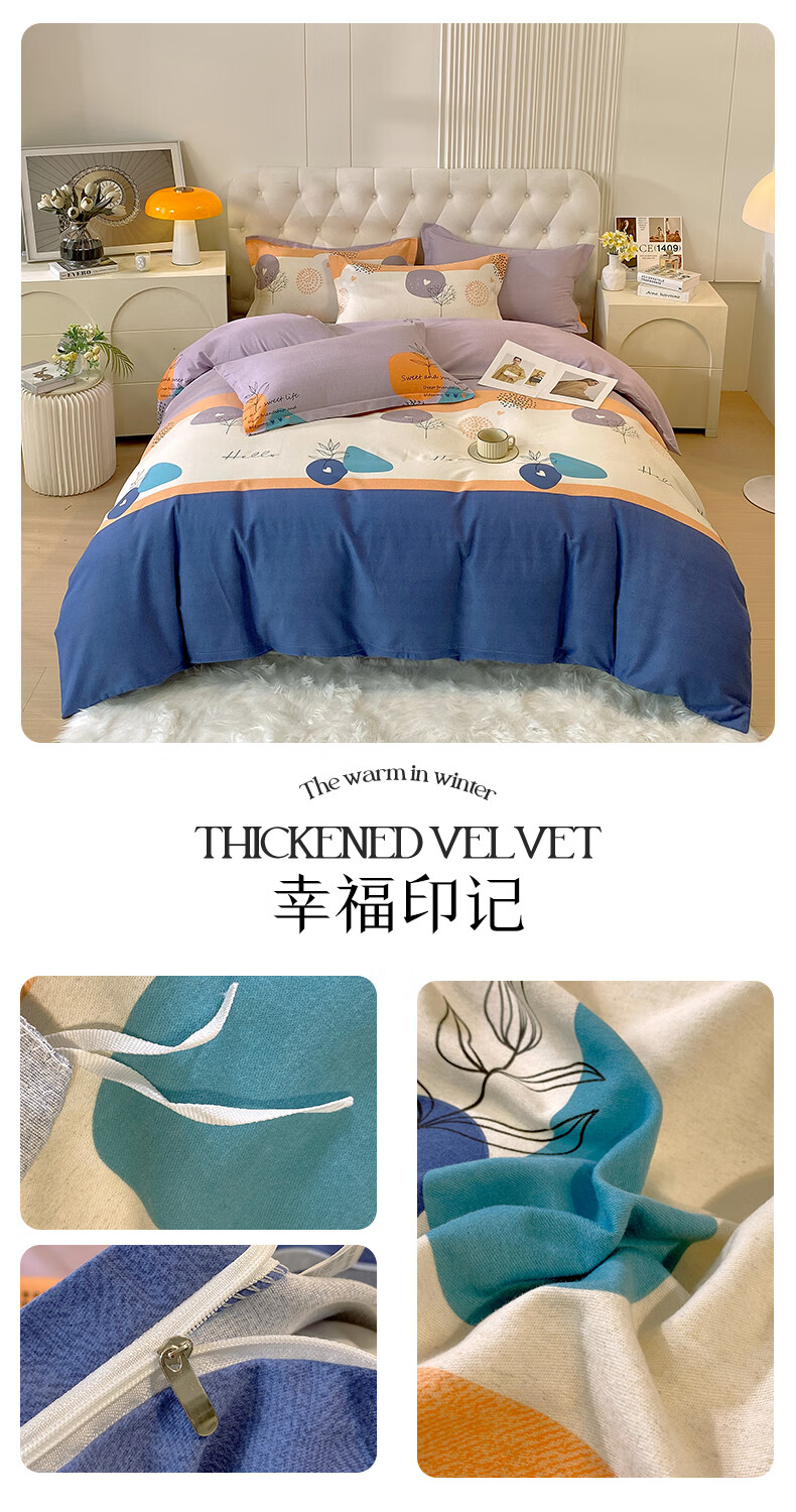 Mercury series home textiles thickened cotton brushed four-piece set printed soft 100S pure cotton quilt cover sheet fitted sheet non-pilling bedding Kahia 1.35m bed sheet four-piece set