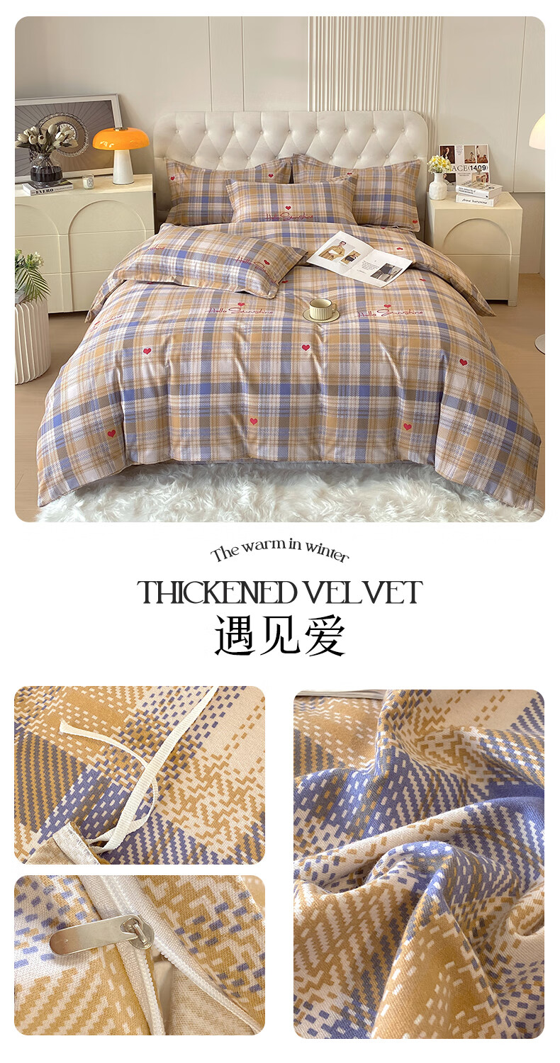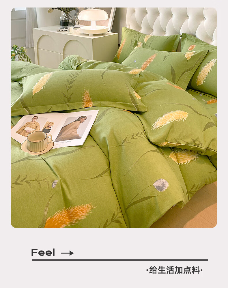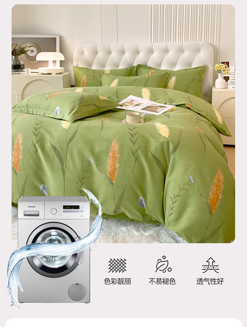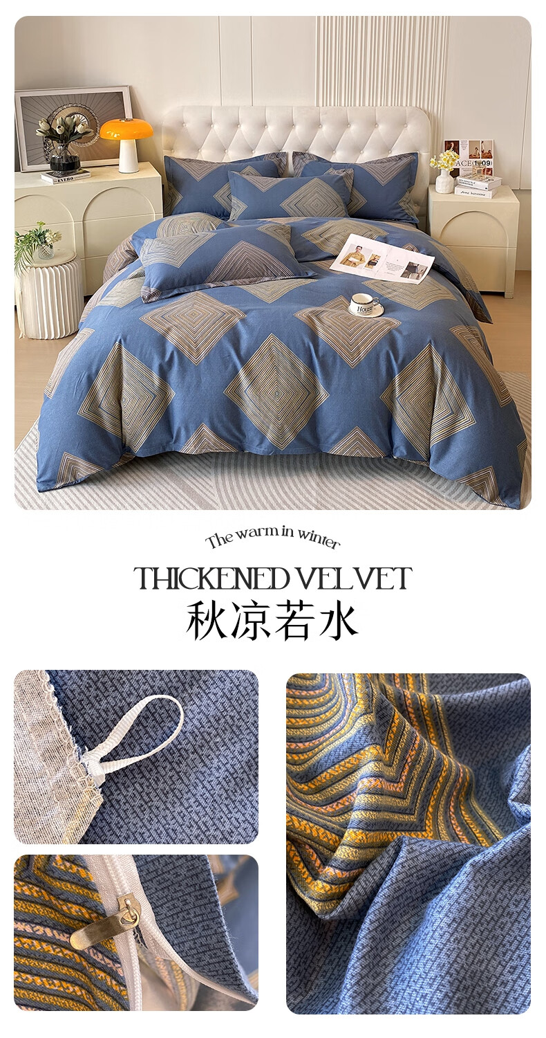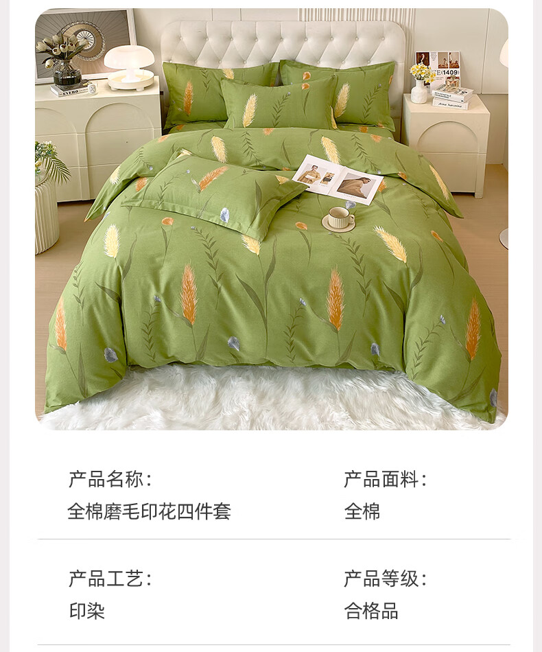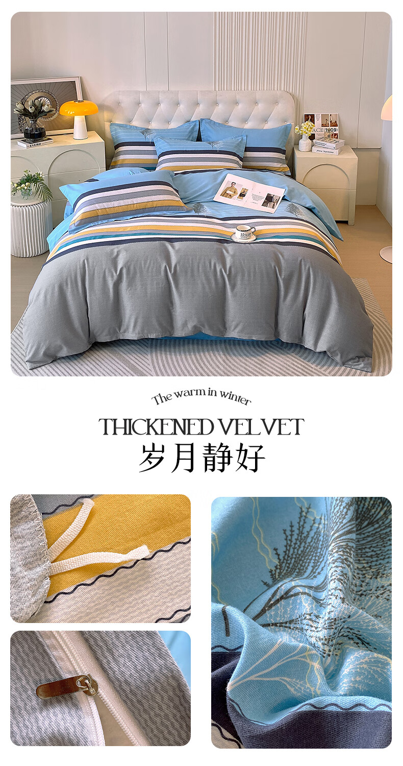 Mercury series home textiles thickened cotton brushed four-piece set printed soft 100S pure cotton quilt cover sheet fitted sheet non-pilling bedding Kahia 1.35m bed sheet four-piece set
