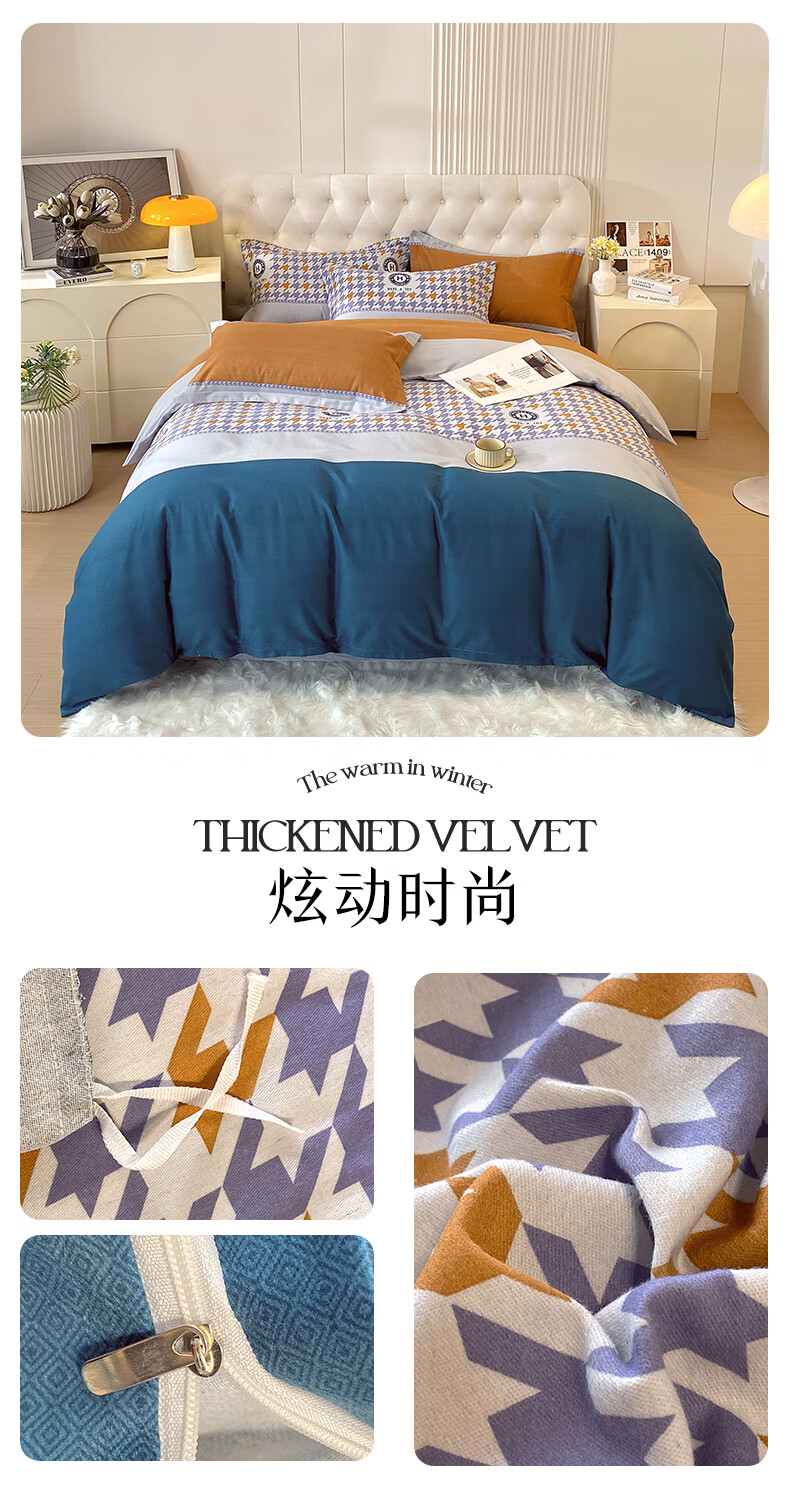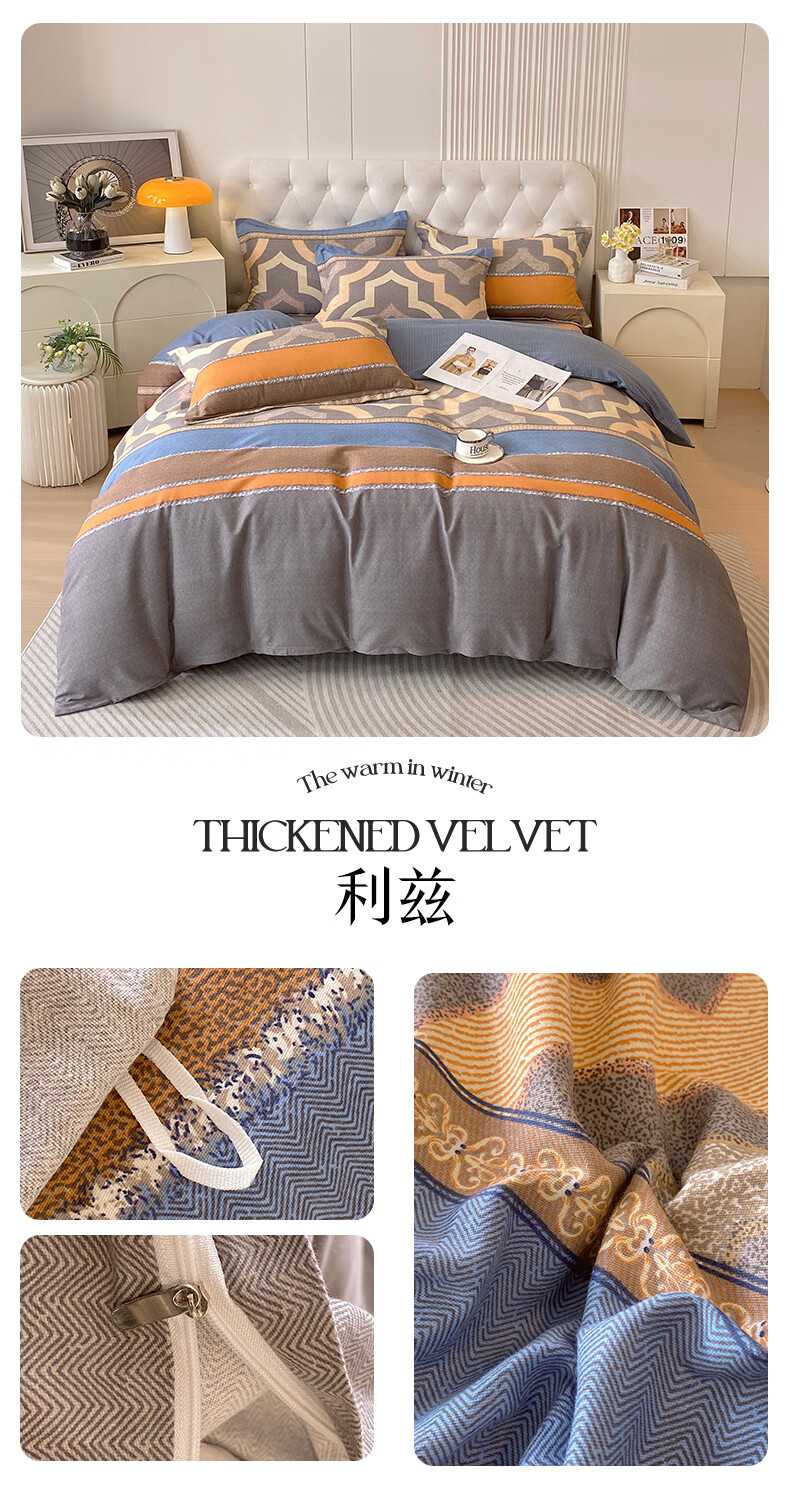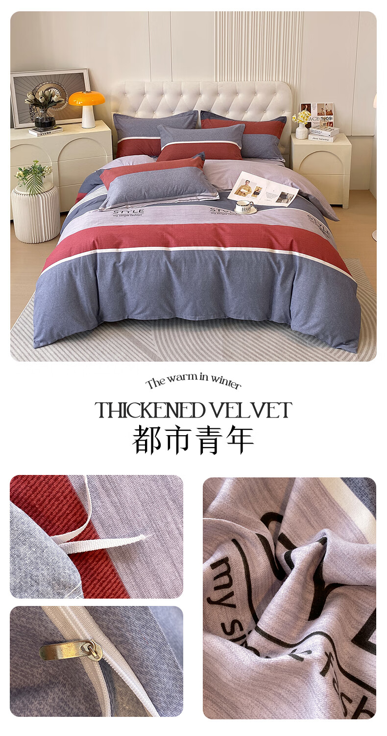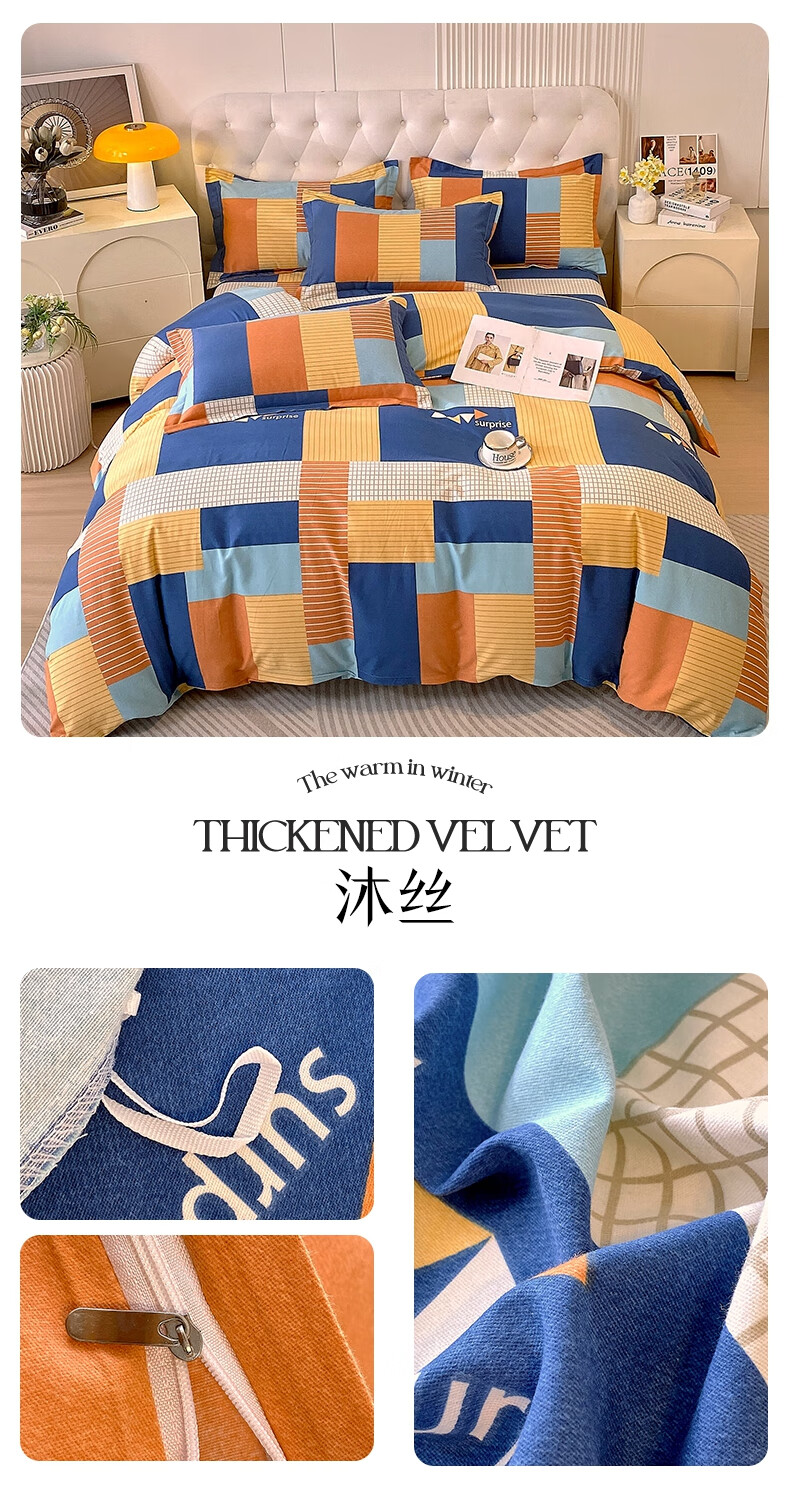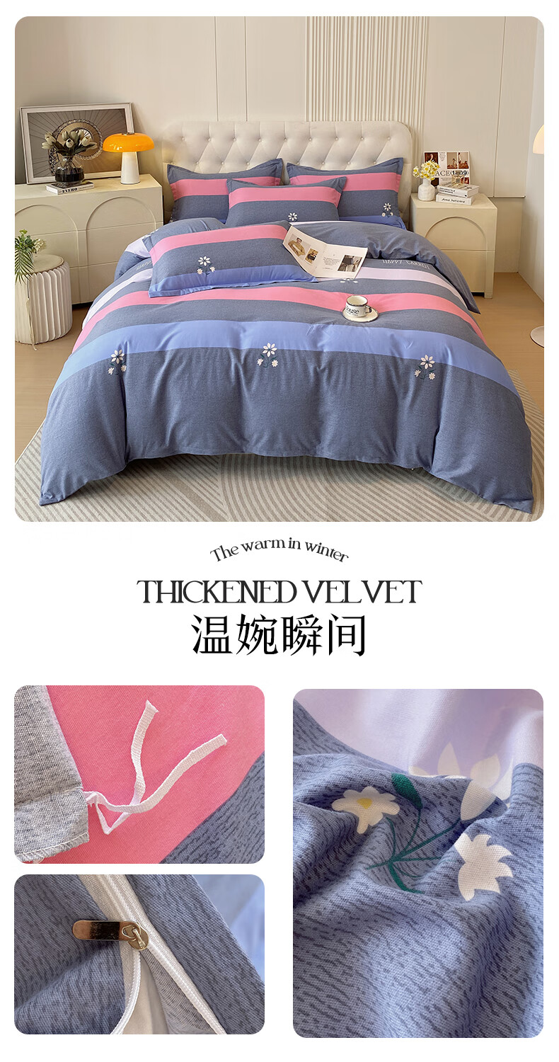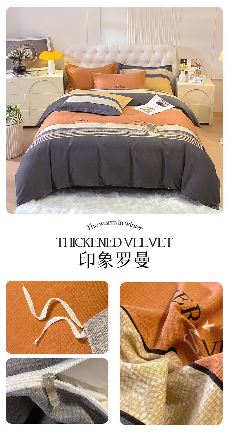 Mercury series home textiles thickened cotton brushed four-piece set printed soft 100S pure cotton quilt cover sheet fitted sheet non-pilling bedding Kahia 1.35m bed sheet four-piece set