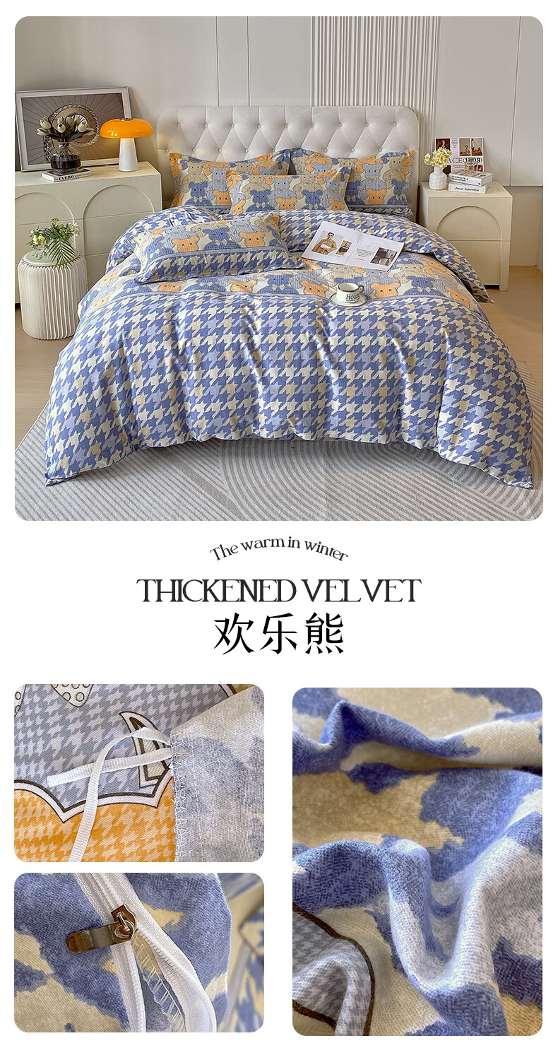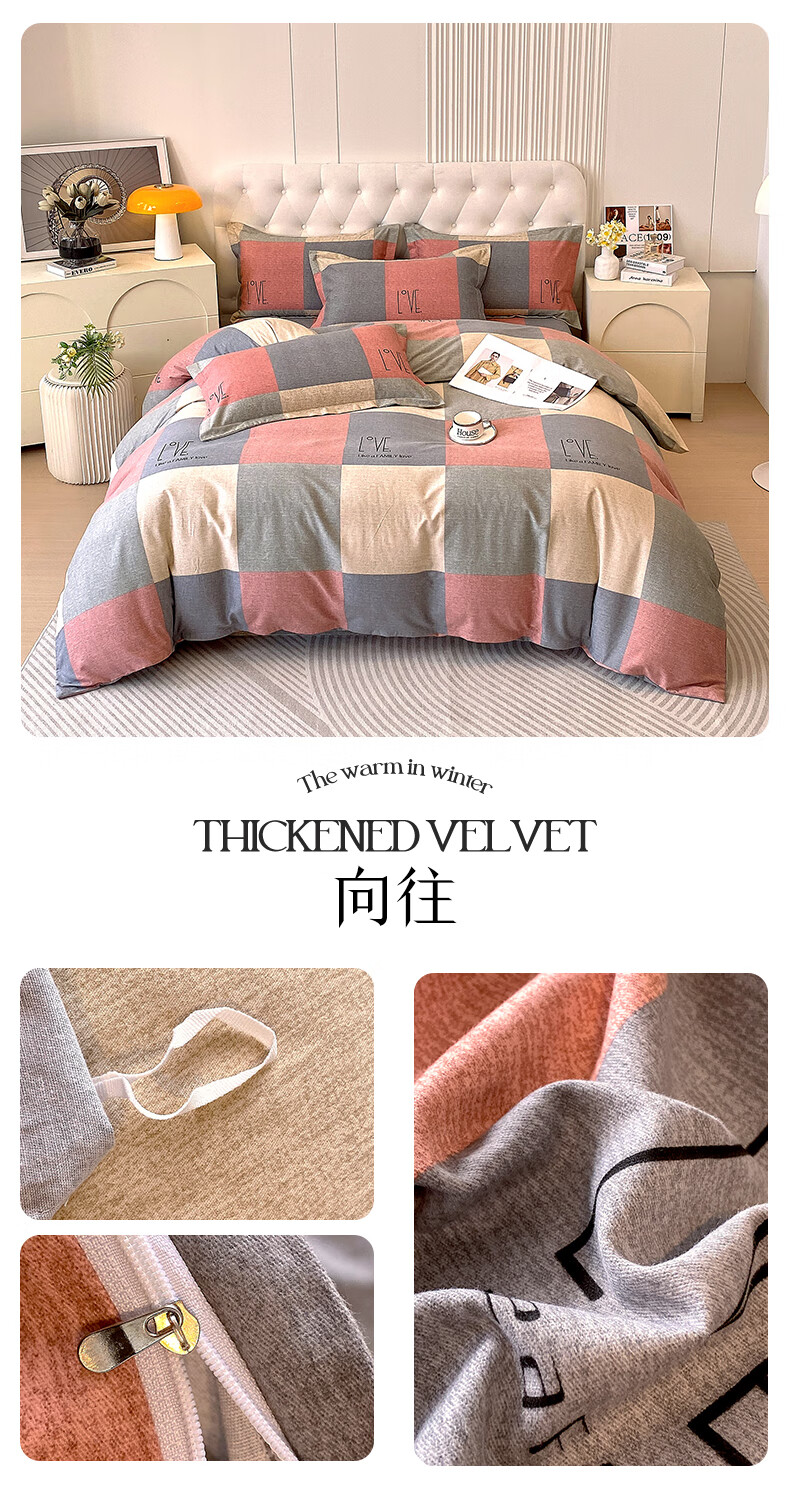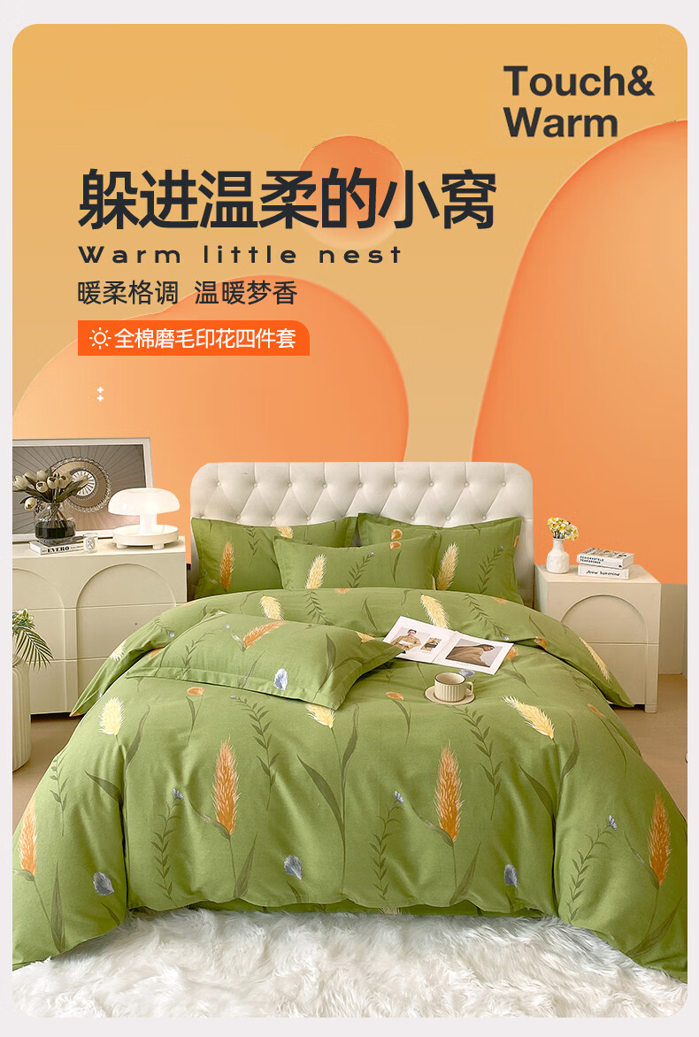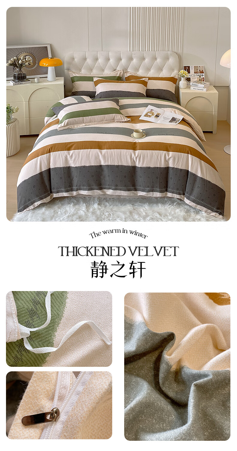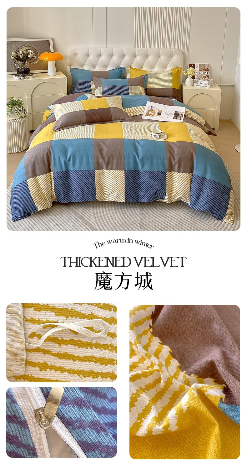 Mercury series home textiles thickened cotton brushed four-piece set printed soft 100S pure cotton quilt cover sheet fitted sheet non-pilling bedding Kahia 1.35m bed sheet four-piece set