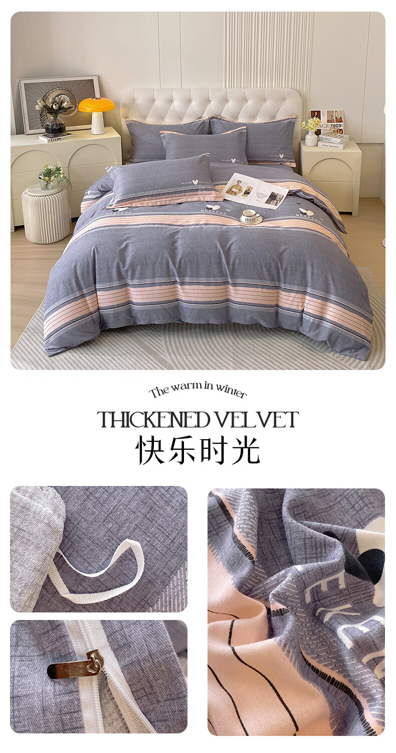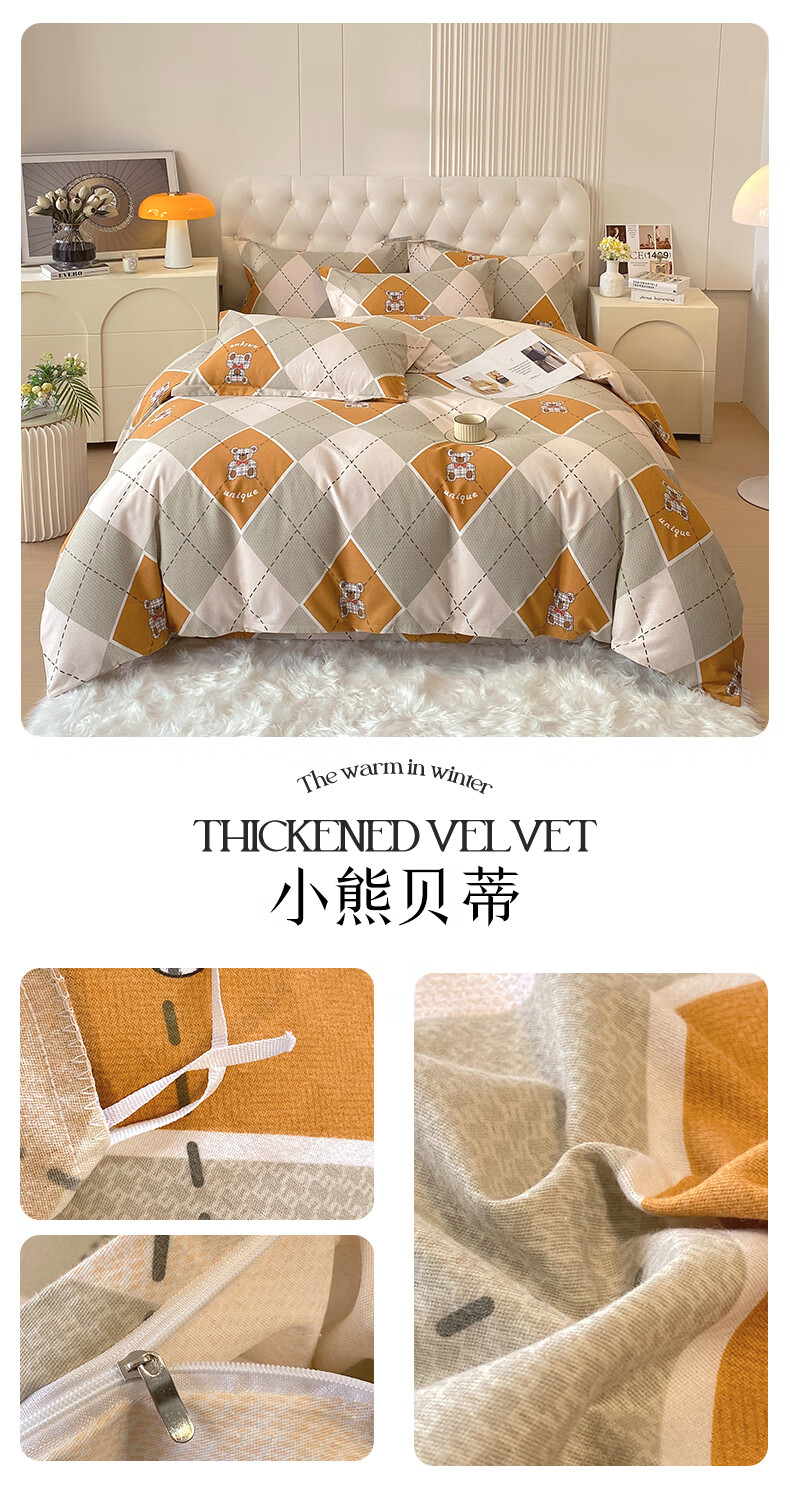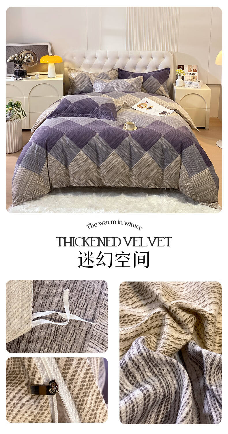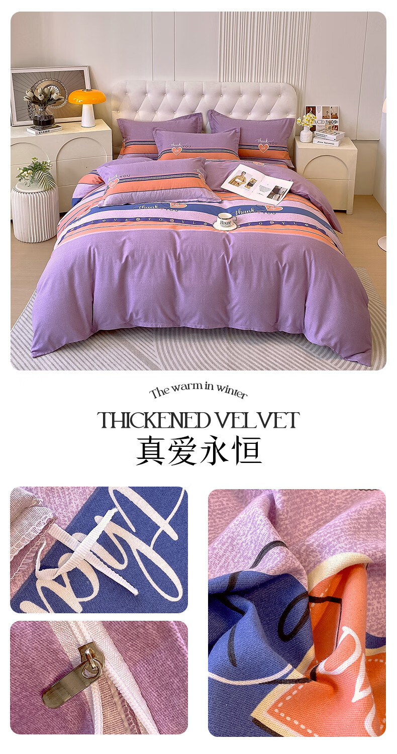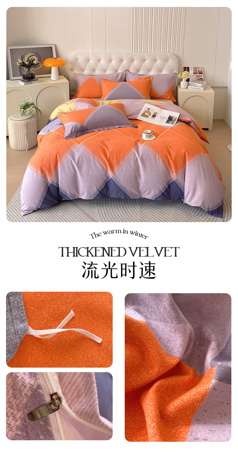 Mercury series home textiles thickened cotton brushed four-piece set printed soft 100S pure cotton quilt cover sheet fitted sheet non-pilling bedding Kahia 1.35m bed sheet four-piece set