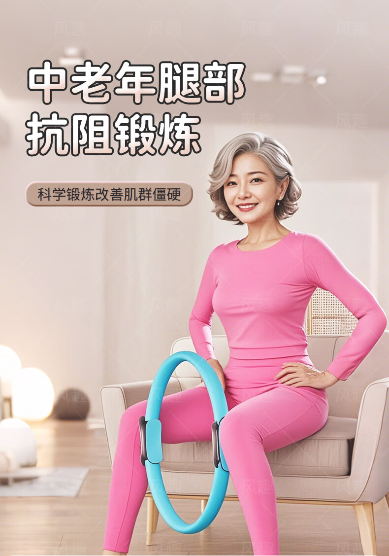 Qingchen German Pilates resistance circle, middle-aged and elderly special leg muscle training device for the elderly, thigh-assisted resistance circle yoga, basic blue, resistance about 6KG