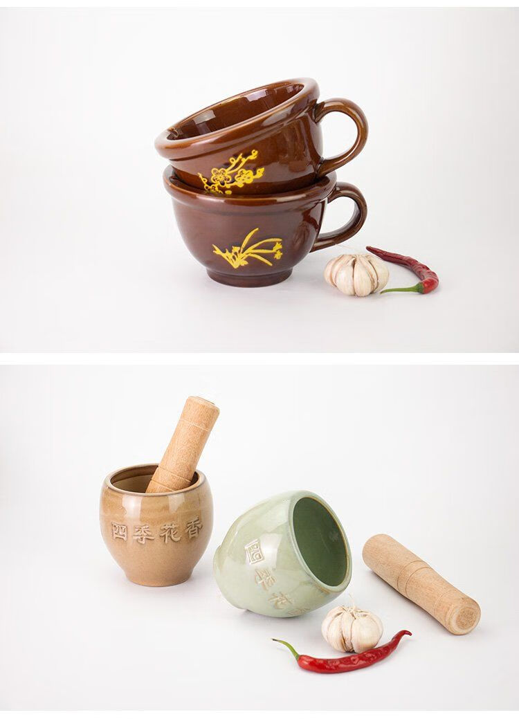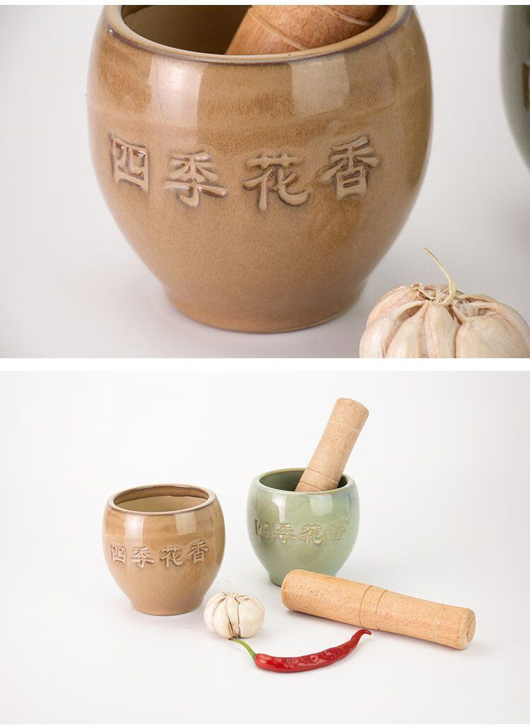 Household chili pepper, eggplant, preserved egg, garlic, stone mortar grinder, minced garlic, old-fashioned garlic mortar, jar, garlic mortar, jar