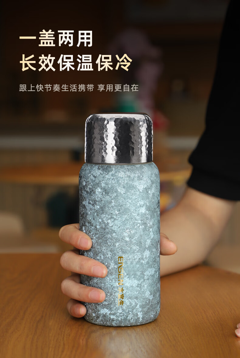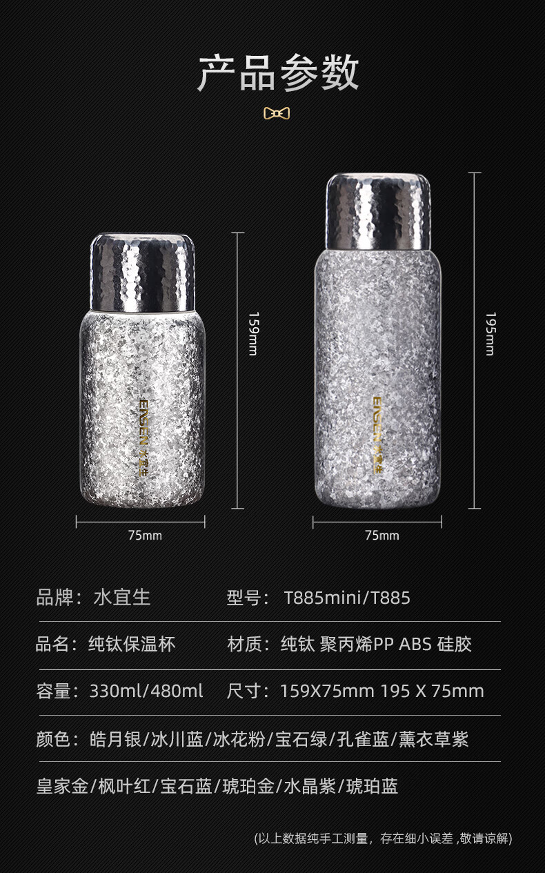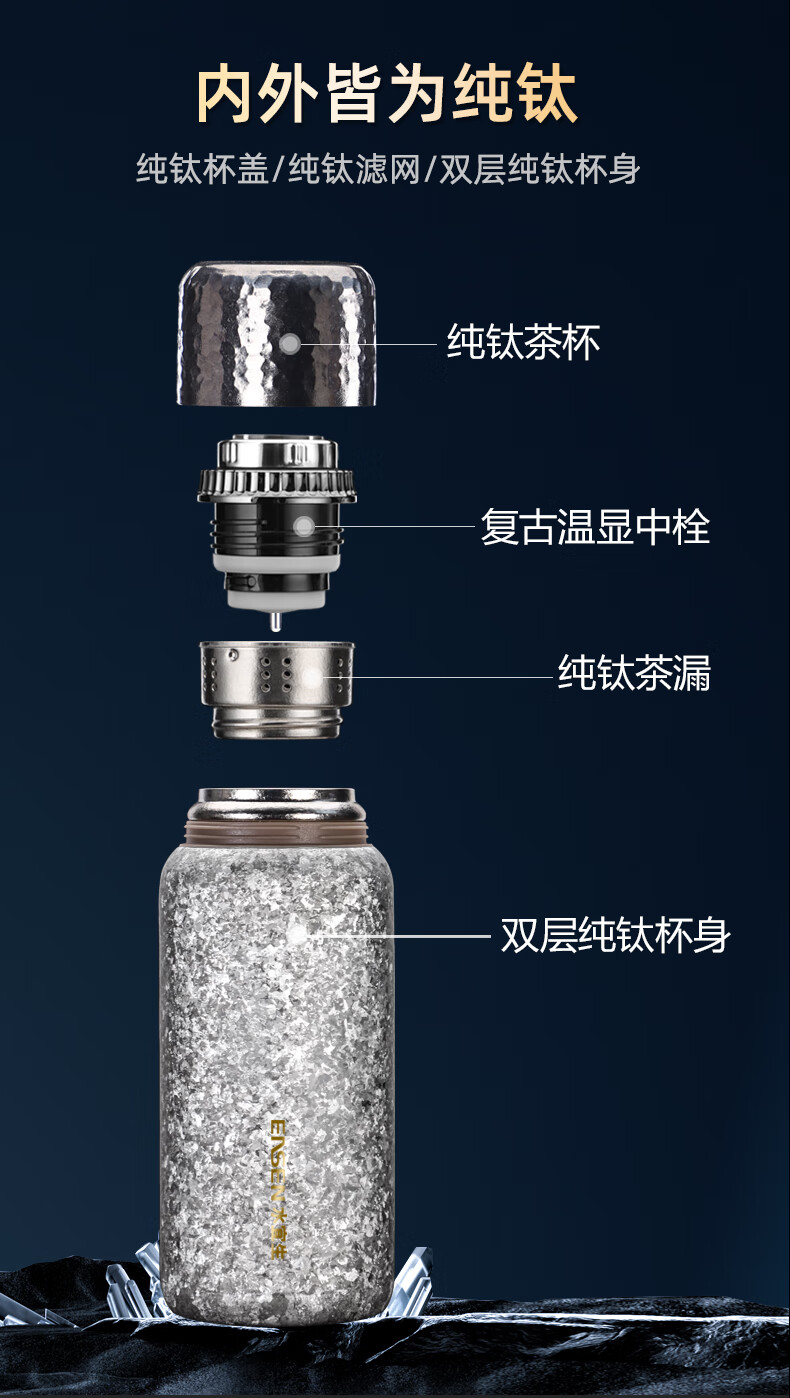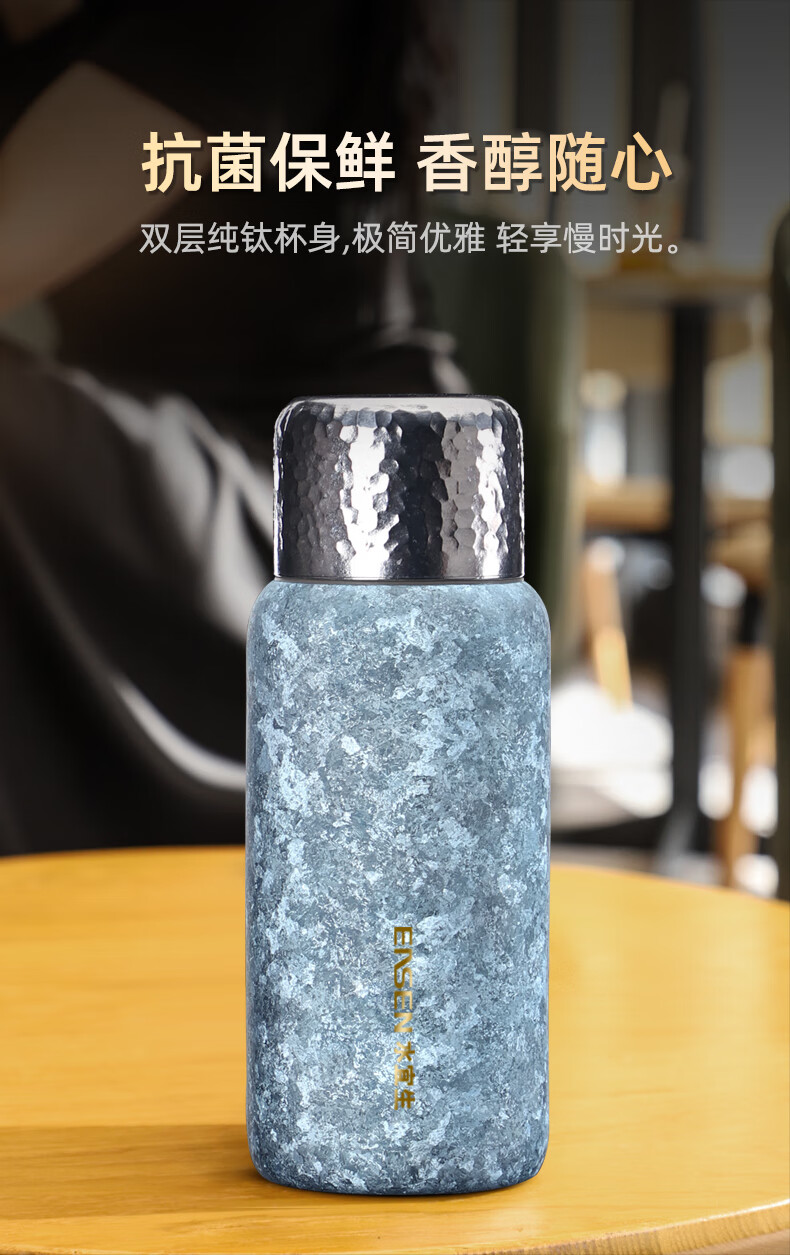 Shuiyisheng pure titanium thermos cup titanium cup fresh-keeping double-layer travel pot stuffy tea cup temperature display accompanying water cup T885 glacier blue 480ml