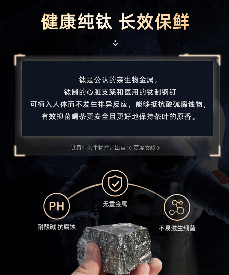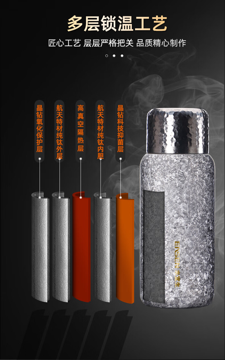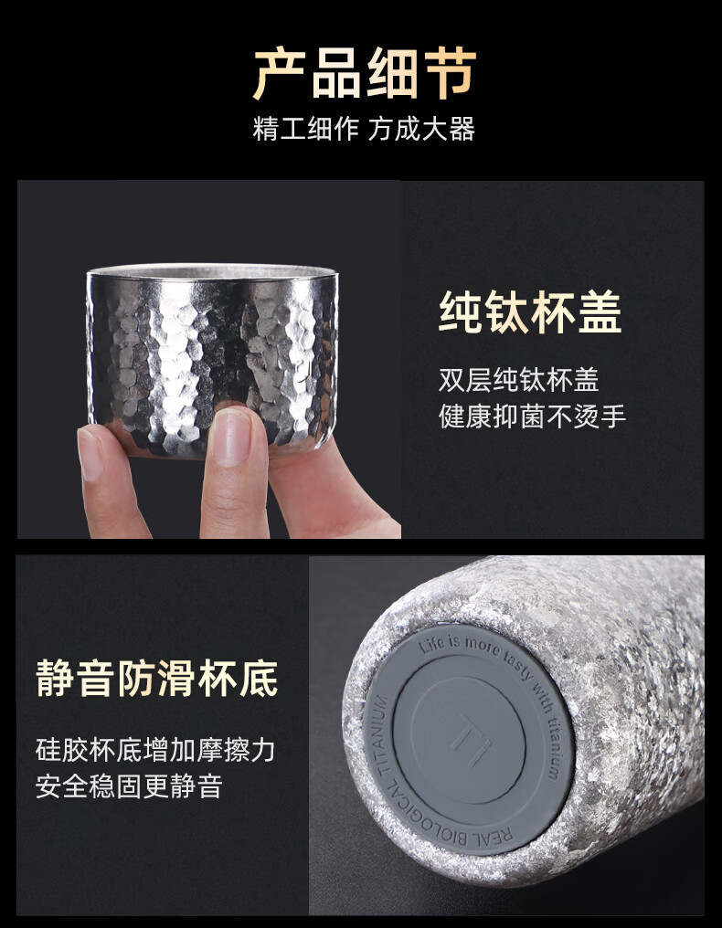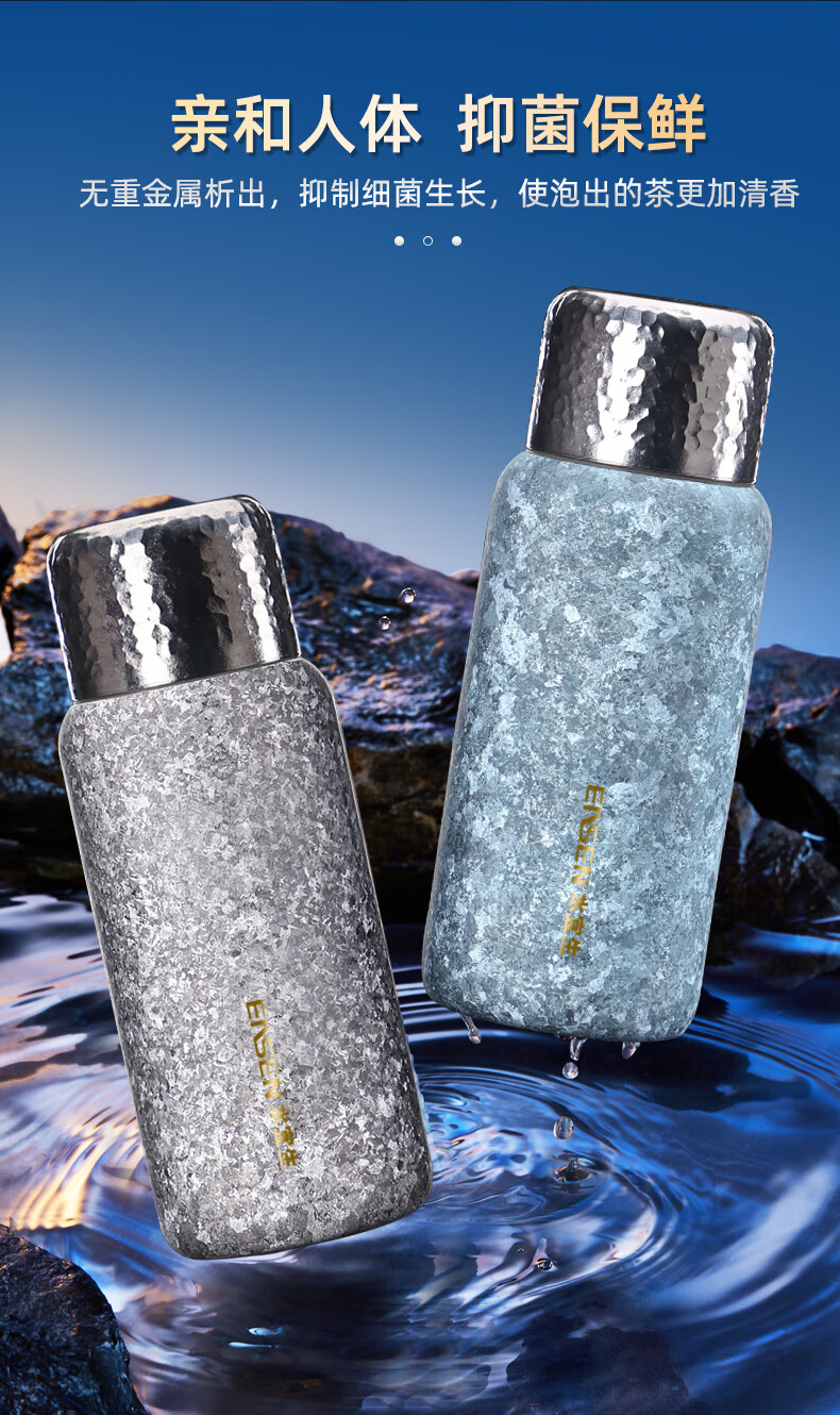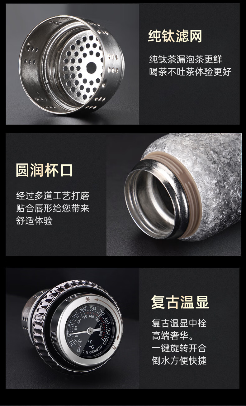 Shuiyisheng pure titanium thermos cup titanium cup fresh-keeping double-layer travel pot stuffy tea cup temperature display accompanying water cup T885 glacier blue 480ml