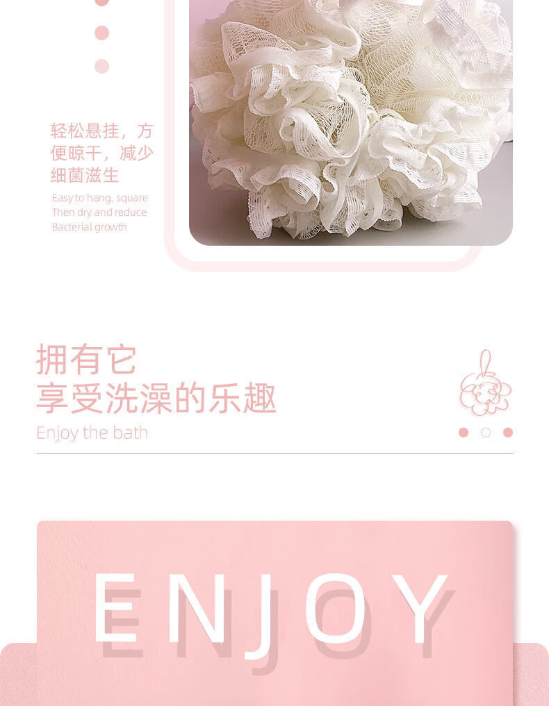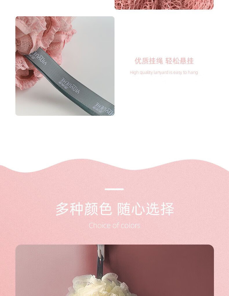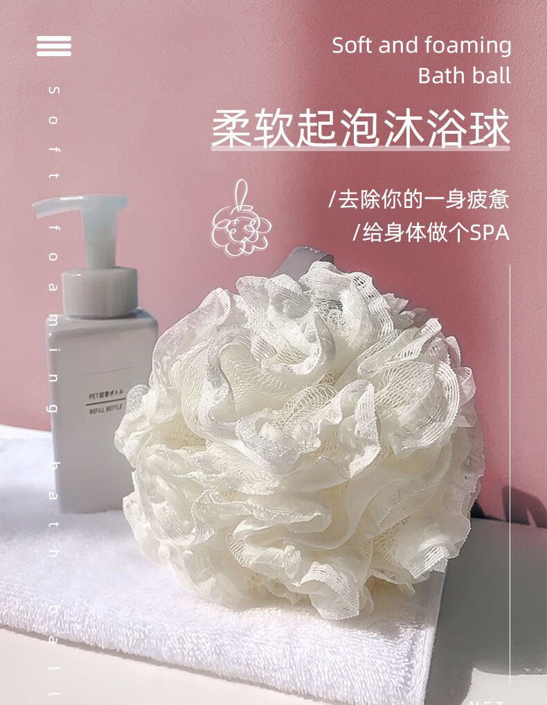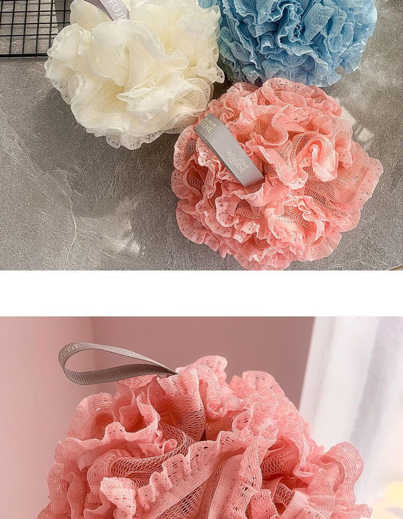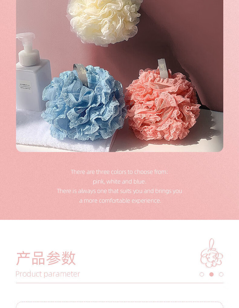 Large bath ball that does not fall apart. Cute girl's bath bubble ball. Back rub and bath artifact. 3 pieces. Girly pink + sky blue + milk white. Extra large lace upgrade.