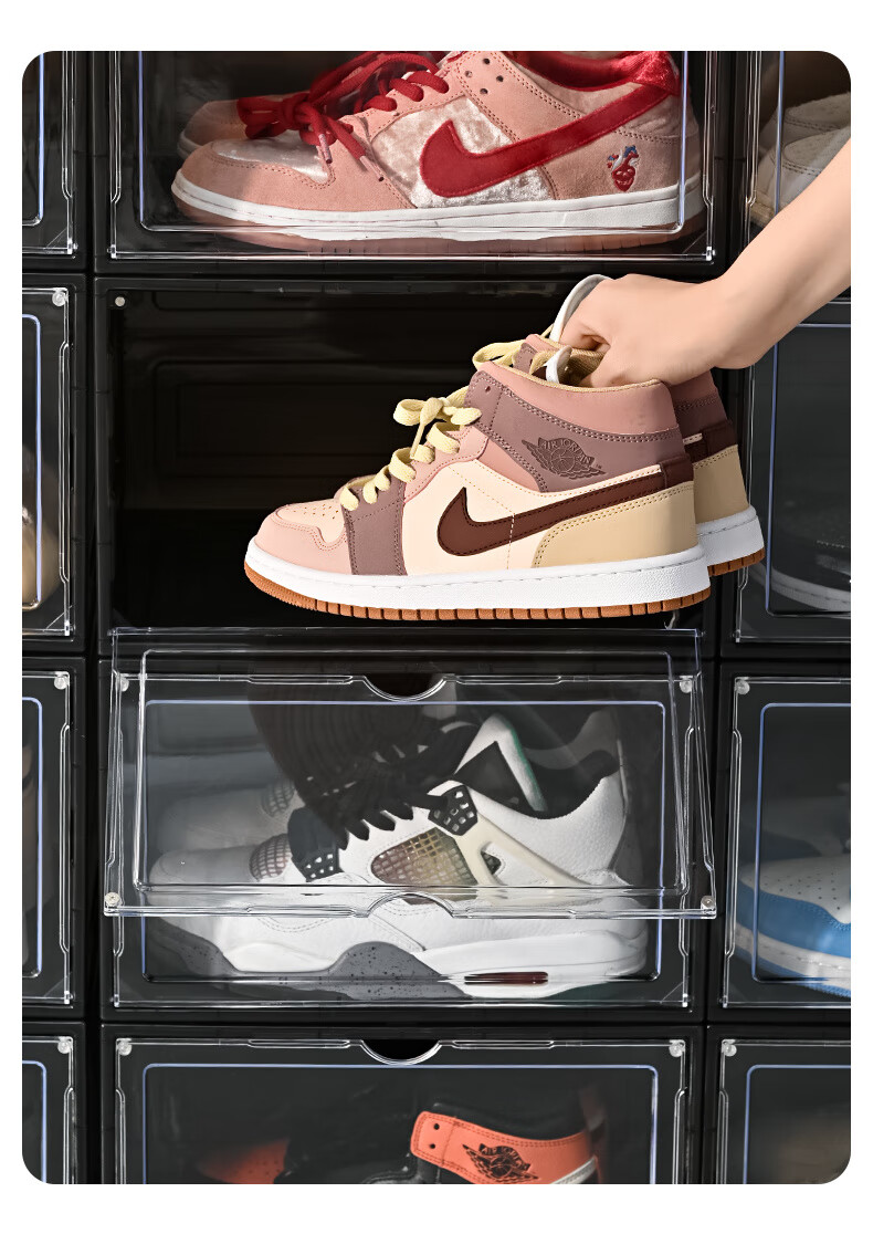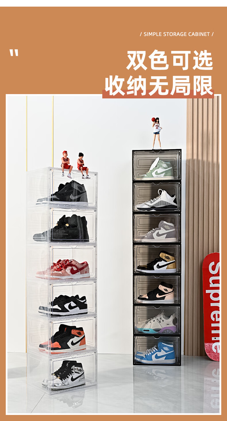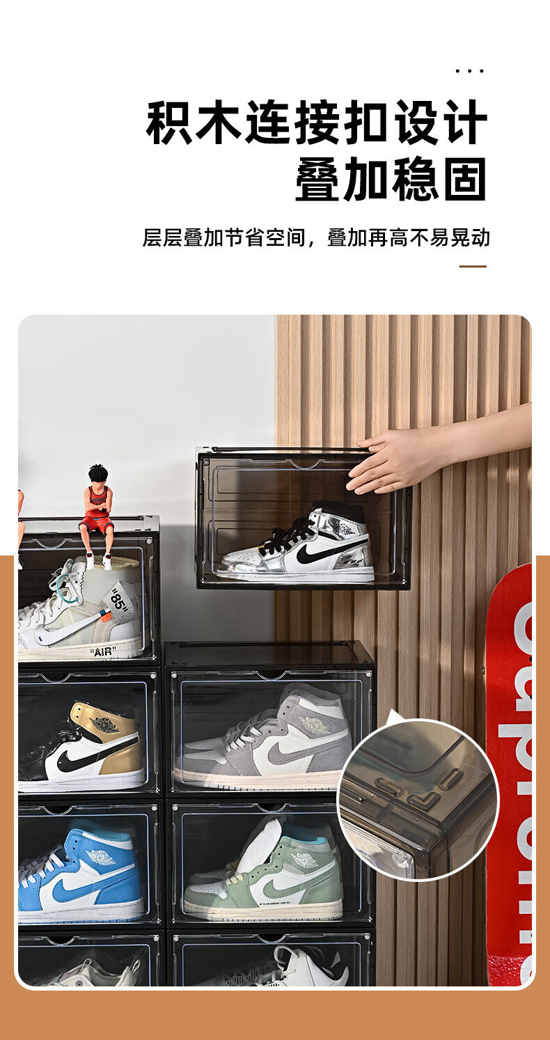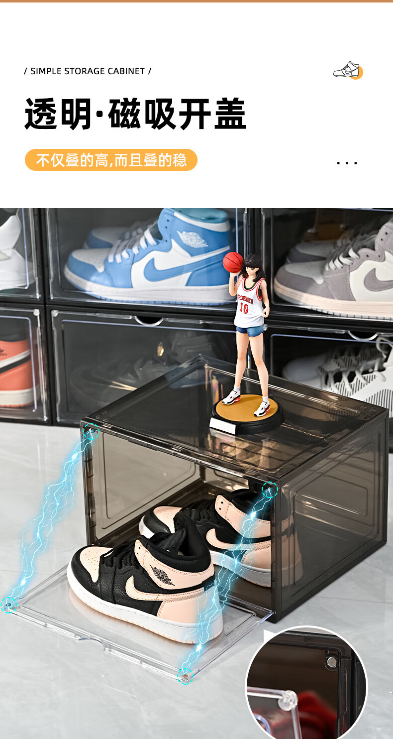 Magnetic hard plastic transparent shoe box side-opening high-top aj shoe cabinet storage box anti-oxidation large-capacity moisture-proof shoe rack side-opening transparent white large thickened 1 piece