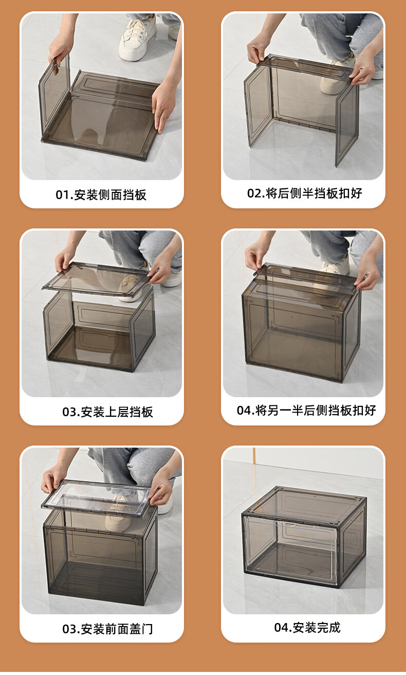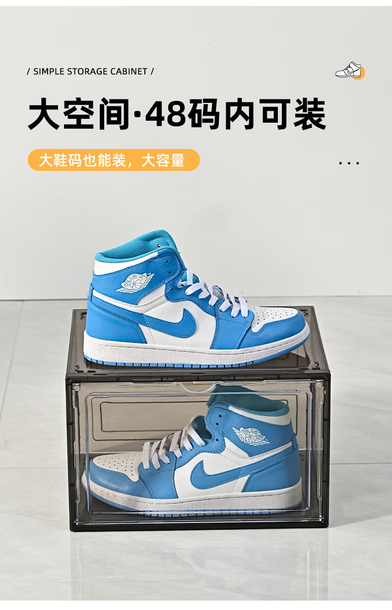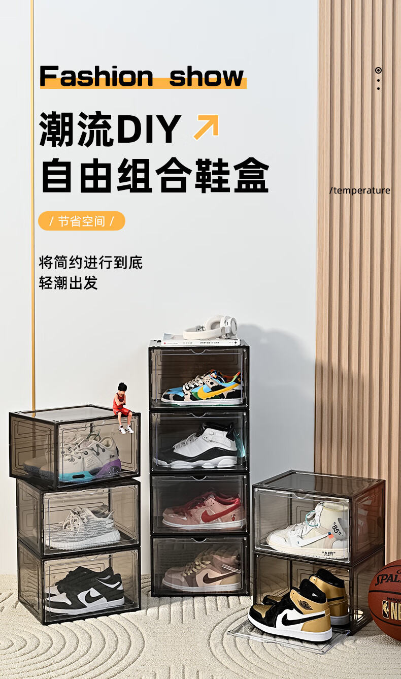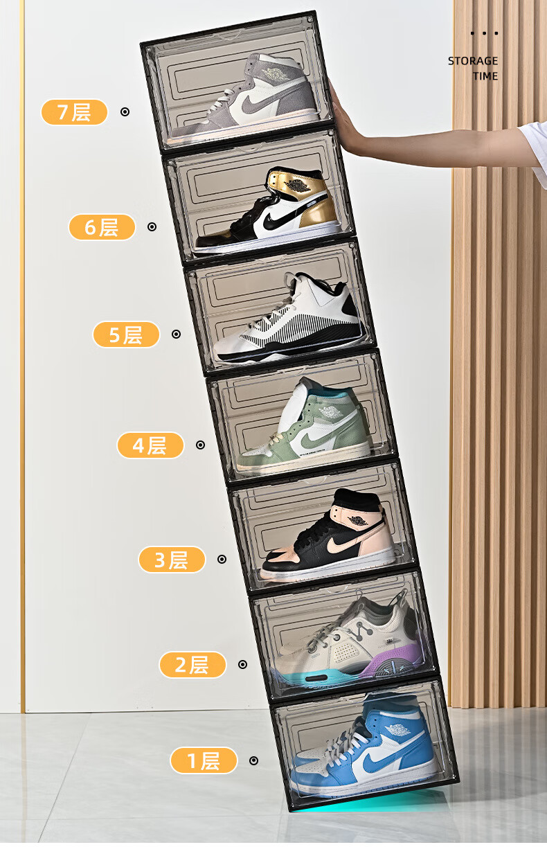 Magnetic hard plastic transparent shoe box side-opening high-top aj shoe cabinet storage box anti-oxidation large-capacity moisture-proof shoe rack side-opening transparent white large thickened 1 piece