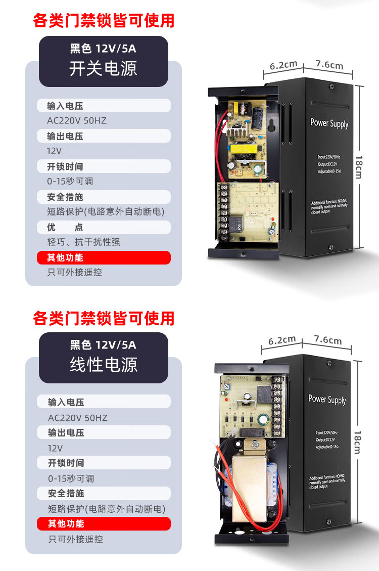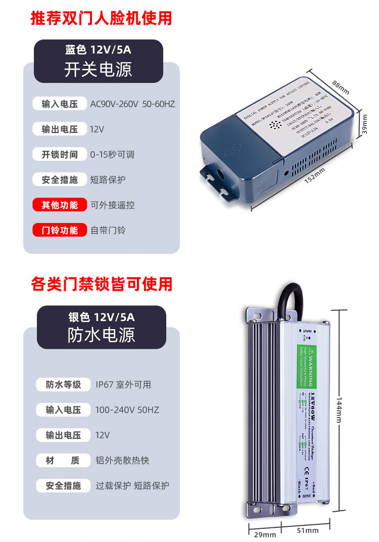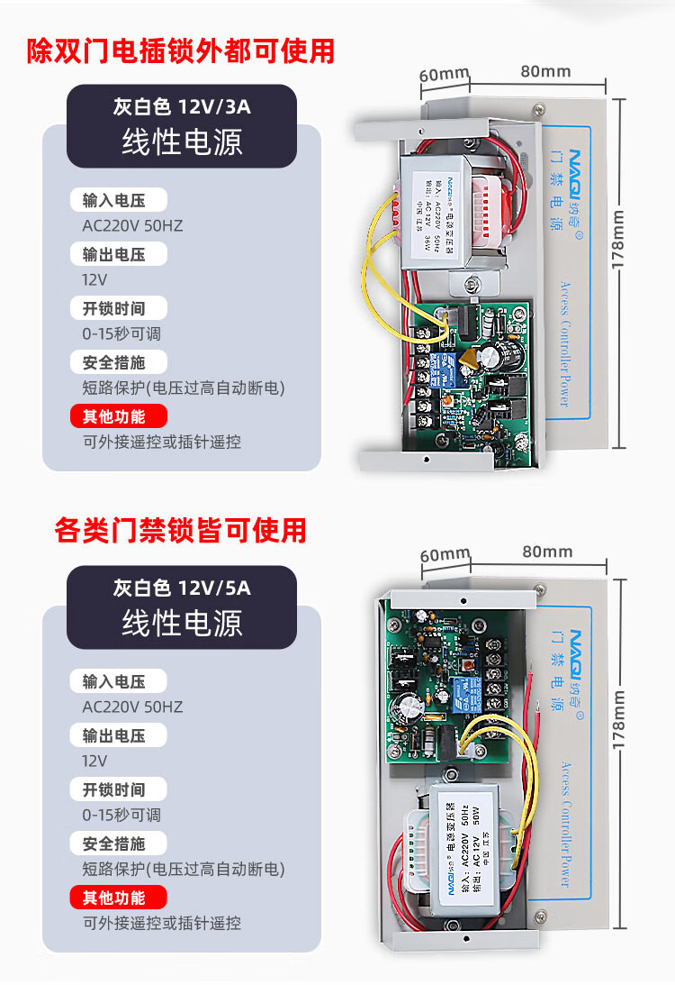 Naqi 12V5A access control power box 3A controller transformer building intercom door lock UPS backup power supply 5A switching power supply