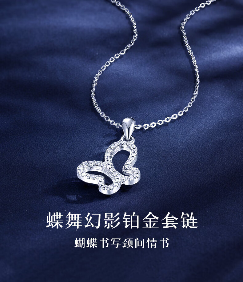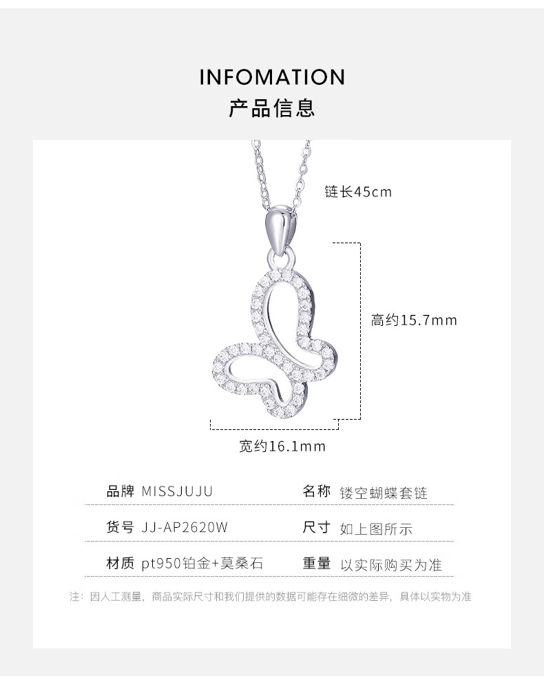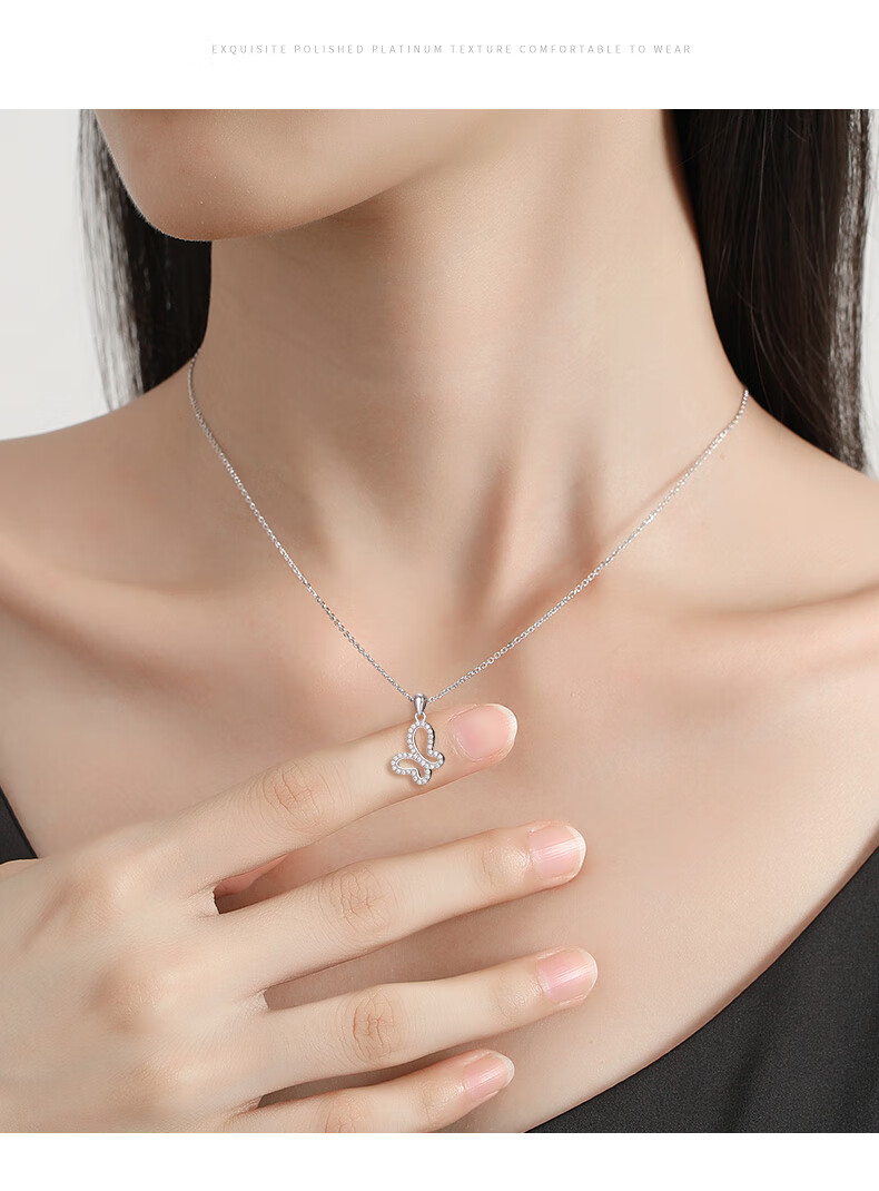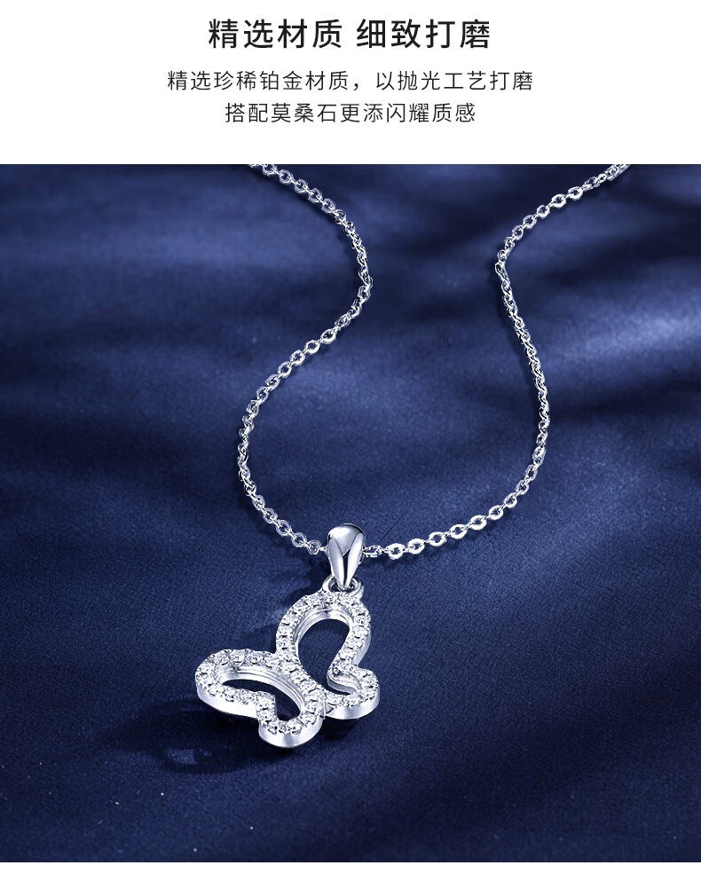 Miss JuJu pt950 Butterfly Phantom Necklace Women's Fashion Light Luxury Platinum Moissanite Diamond Set Chain for Wife Butterfly Phantom Platinum Necklace (Inlaid with Moissanite Diamonds) + Certificate