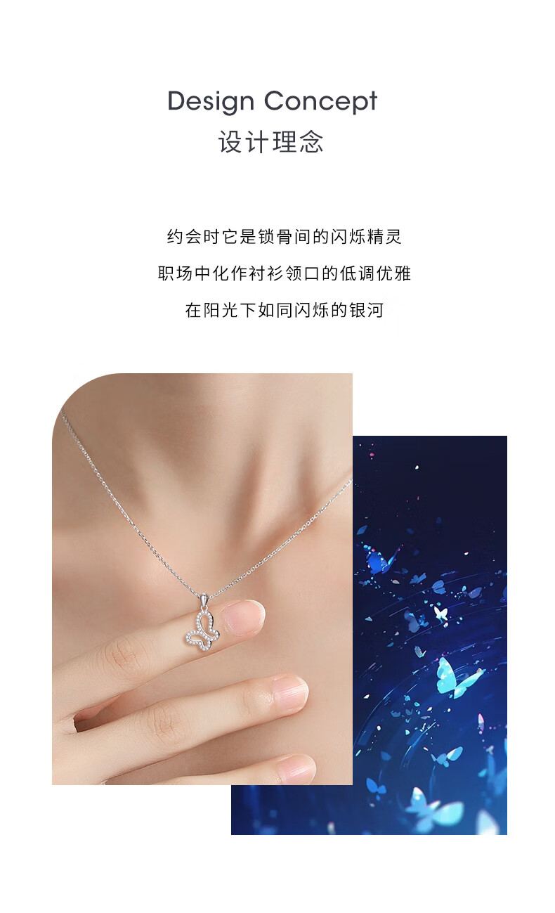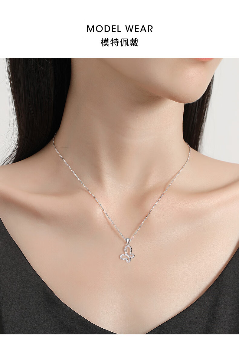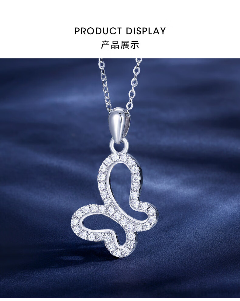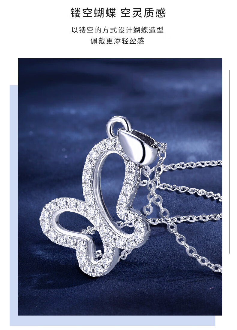 Miss JuJu pt950 Butterfly Phantom Necklace Women's Fashion Light Luxury Platinum Moissanite Diamond Set Chain for Wife Butterfly Phantom Platinum Necklace (Inlaid with Moissanite Diamonds) + Certificate