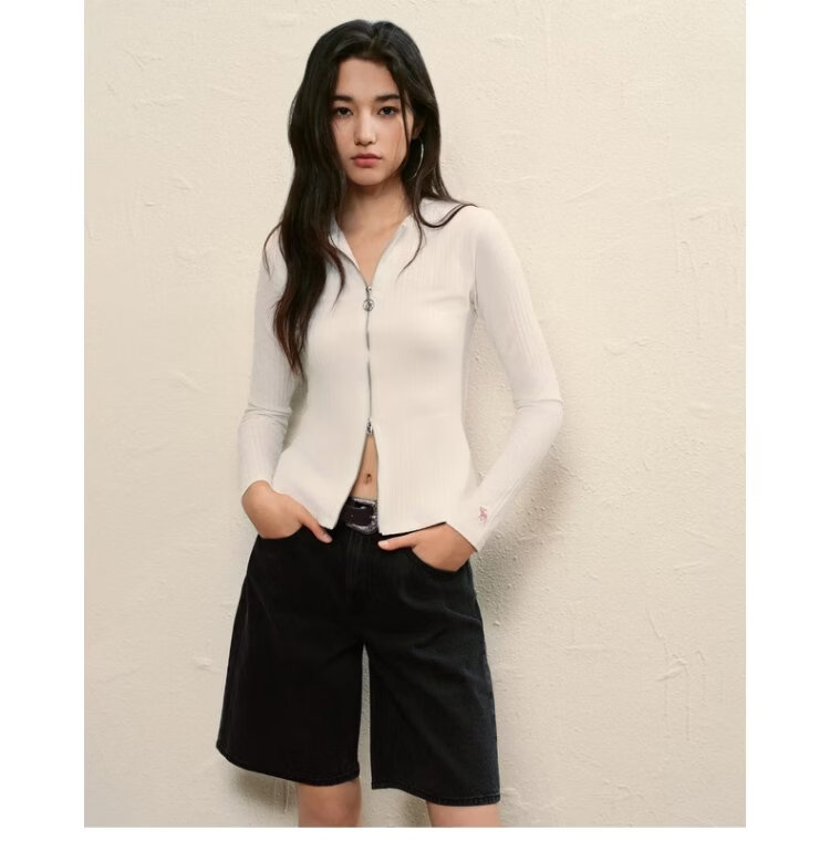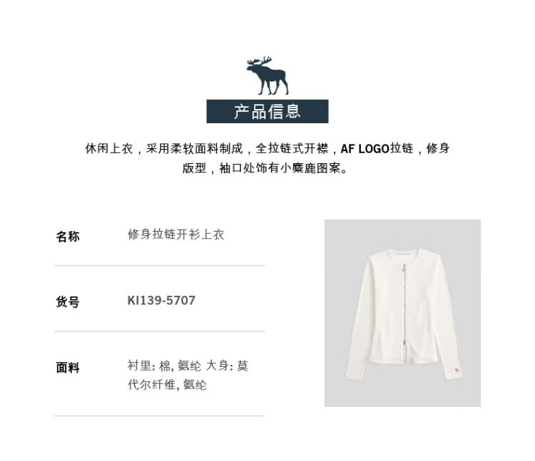 Abercrombie & Fitch Slimming Elk Pattern Bottoming Cardigan Top 25 Autumn and Winter Women's 139-5707 Milky White M (165/96A)