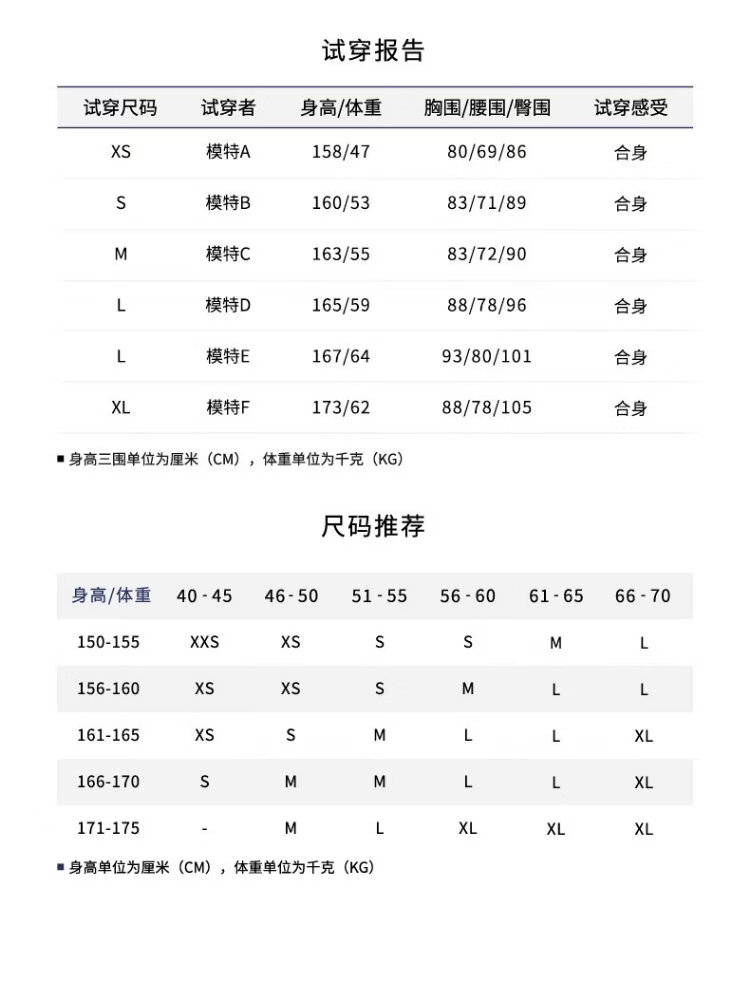 China (cm) 160-165/84-86 165-170 / 88-90 167-172 / 92-96 168-173 / 98-102 170-176 / 106-110