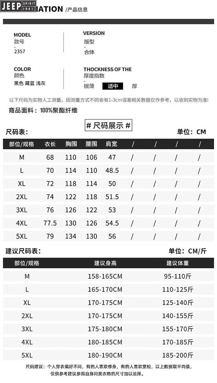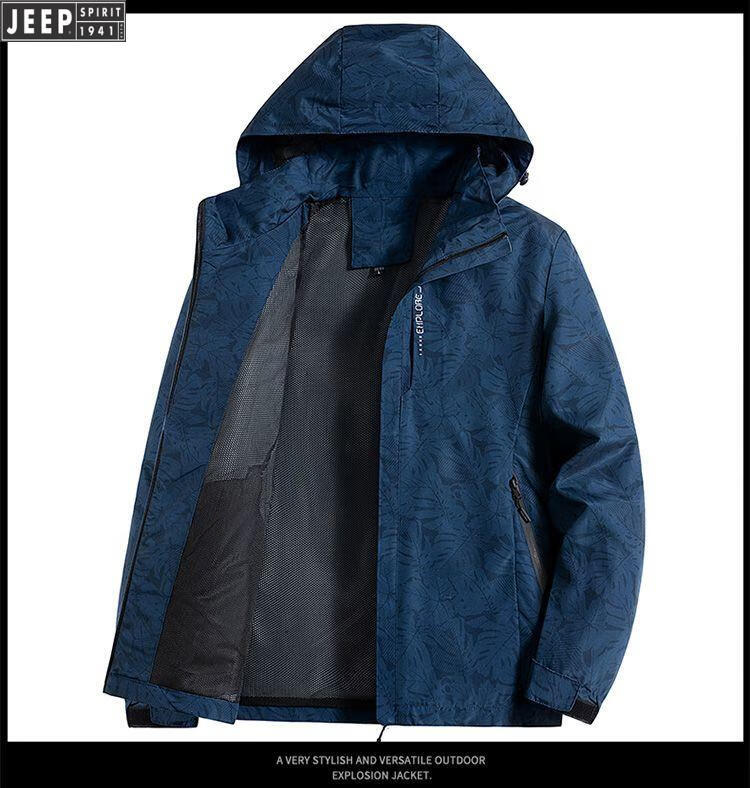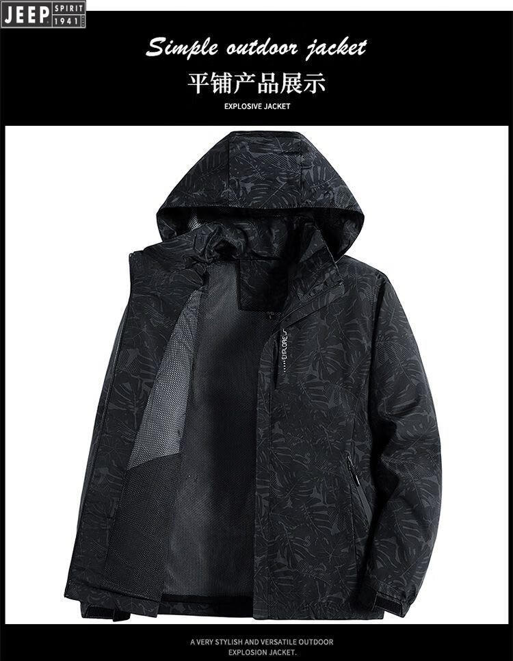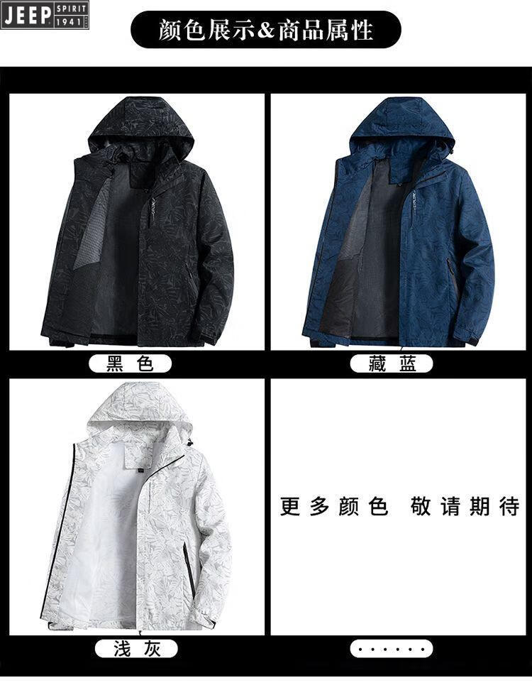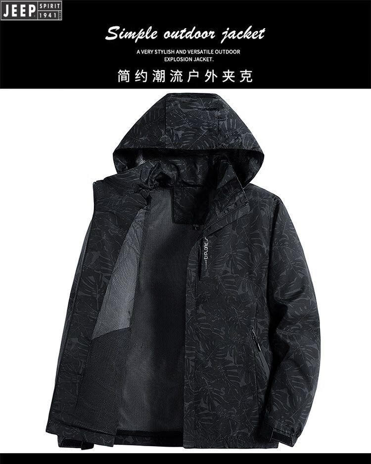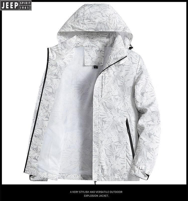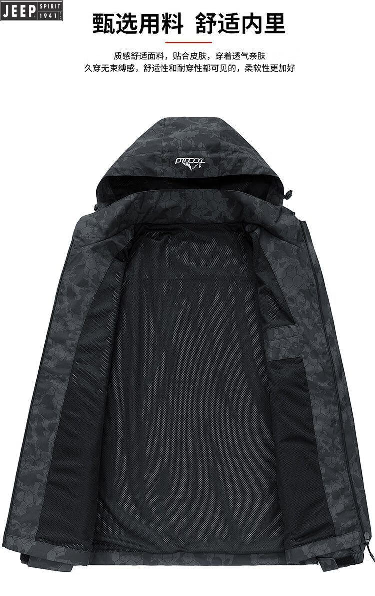 JEEP SPIRIT Jeep International Brand Jacket 2025 Autumn and Winter New Men's Outdoor Sports Hiking and Cycling Clothing Mountaineering Clothing Light Gray EDCO/High-end 3XL 155-170Jin Jin equals 0.5 kg